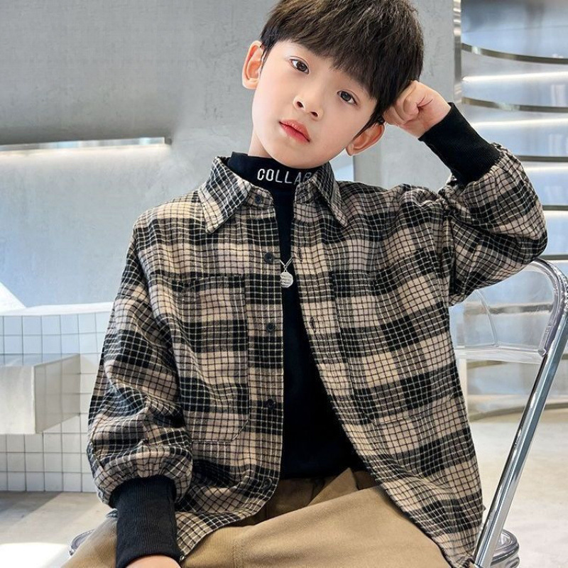 소년 셔츠 2025 봄 새 느슨한 어린이 긴 소매 셔츠 재킷 큰 어린이 봄과 가을