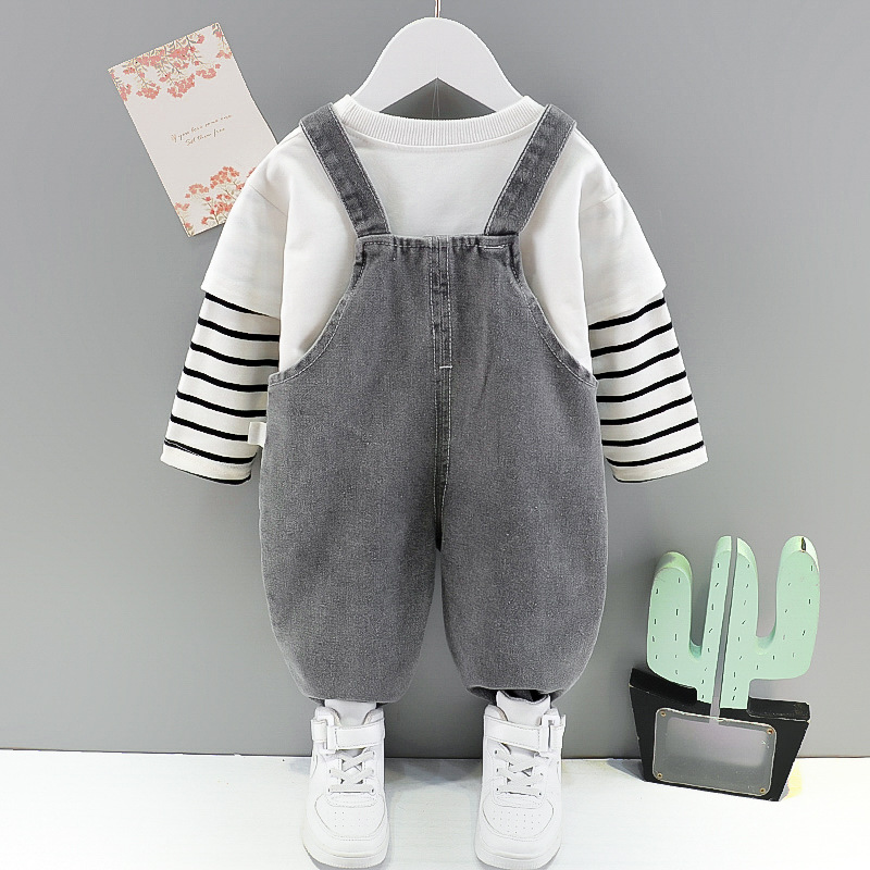 봄 세트 2025 봄과 가을 소년 어린이 새로운 어린이 서양식 큰 귀 스트랩 긴 소매 투피스 유행 세트스토어 가기
