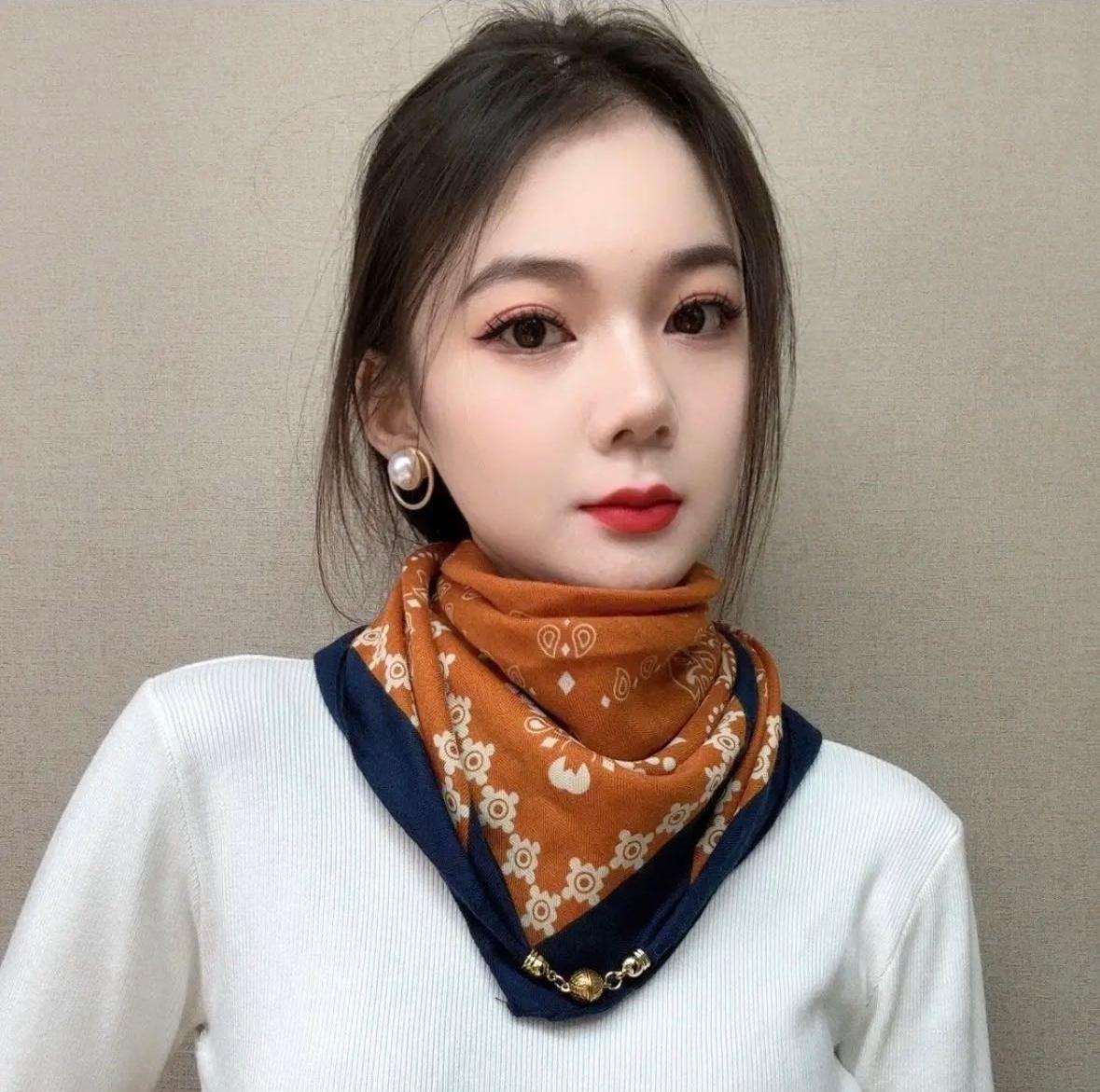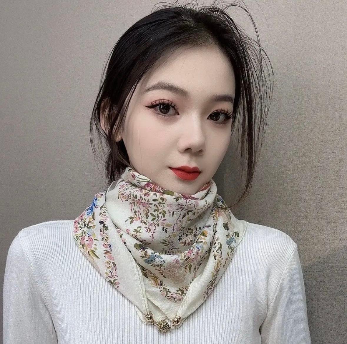 새로운 패션 트렌드 여성용 레트로 프린트 자석 버클 스카프 목 보호 따뜻한 레이지 스카프 우아한 중국풍스토어 가기