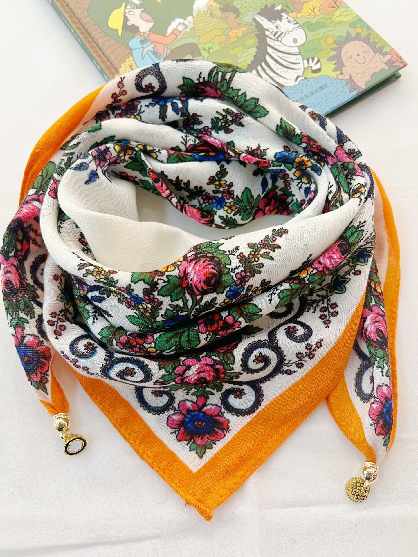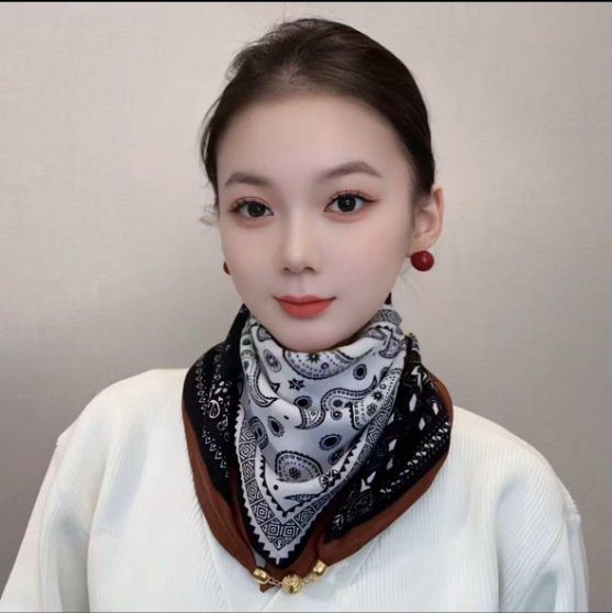 새로운 패션 트렌드 여성용 레트로 프린트 자석 버클 스카프 목 보호 따뜻한 레이지 스카프 우아한 중국풍