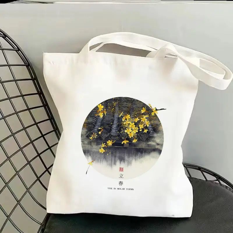 학생의 높은 어깨 휴대용 대용량 가방 중국 스타일 24-태양 스타일 캔버스 가방 외출 조명 럭셔리스토어 가기