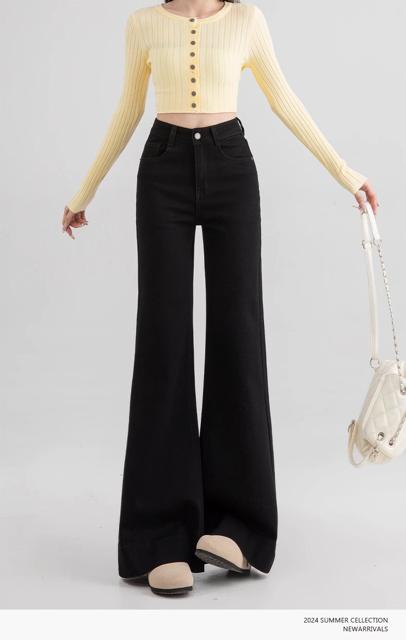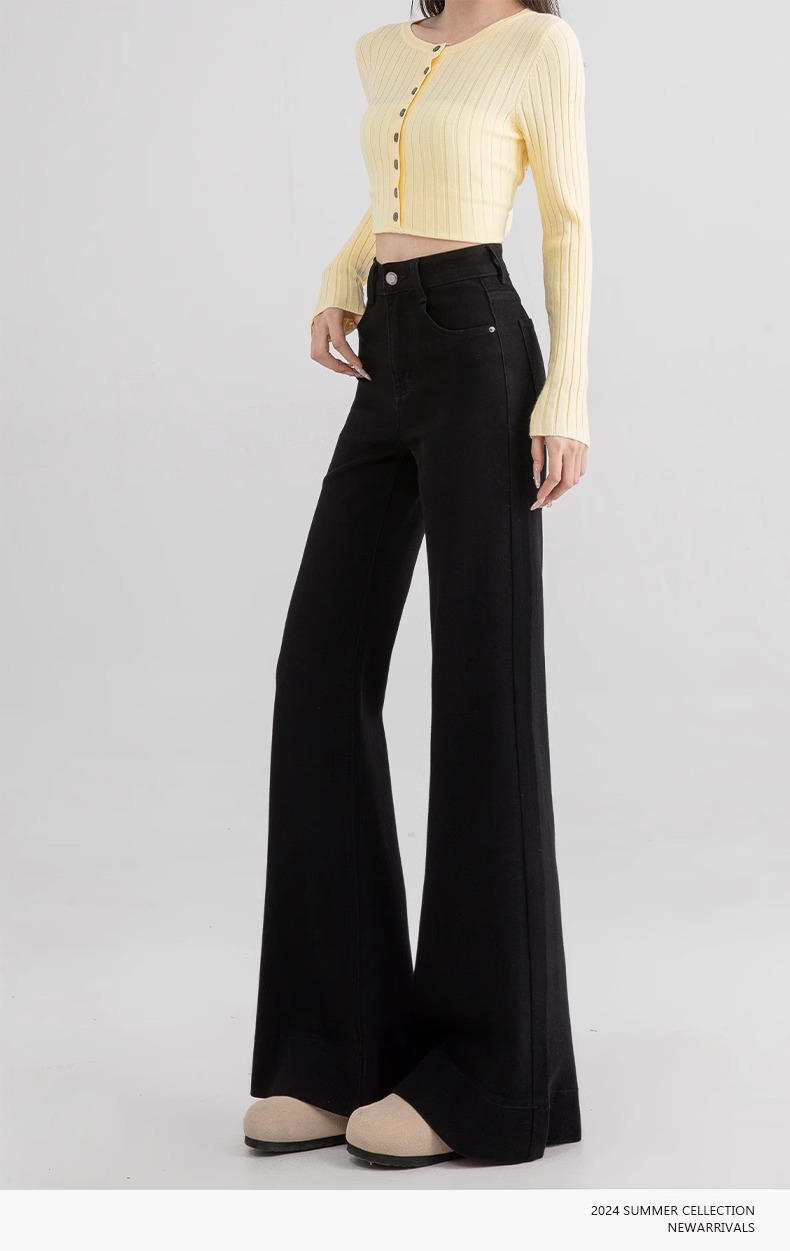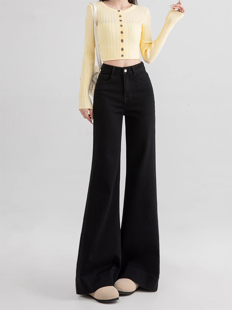 검은 다재다능한 다리가없는 Slair Jeans 여성의 2025 봄 새로운 미국 스타일 높은 허리 긴 바지 넓은 다리스토어 가기