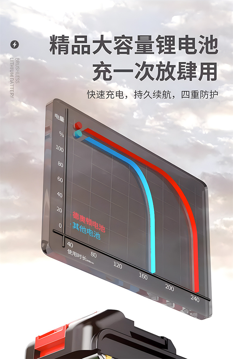 • 19500 산업용 배터리 수명 모델 [배터리 1개] - 순수 구리 브러시리스 [독일 품질 10년 보증]