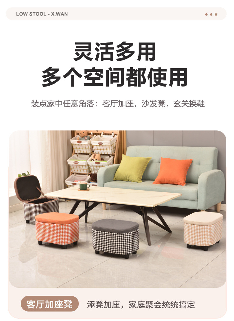 가정용 소형 의자 거실 다기능 보관 의자 사이버 인기 스토리지 견고하고 내구성있는 소파 의자 낮은 의자 벤치스토어 가기