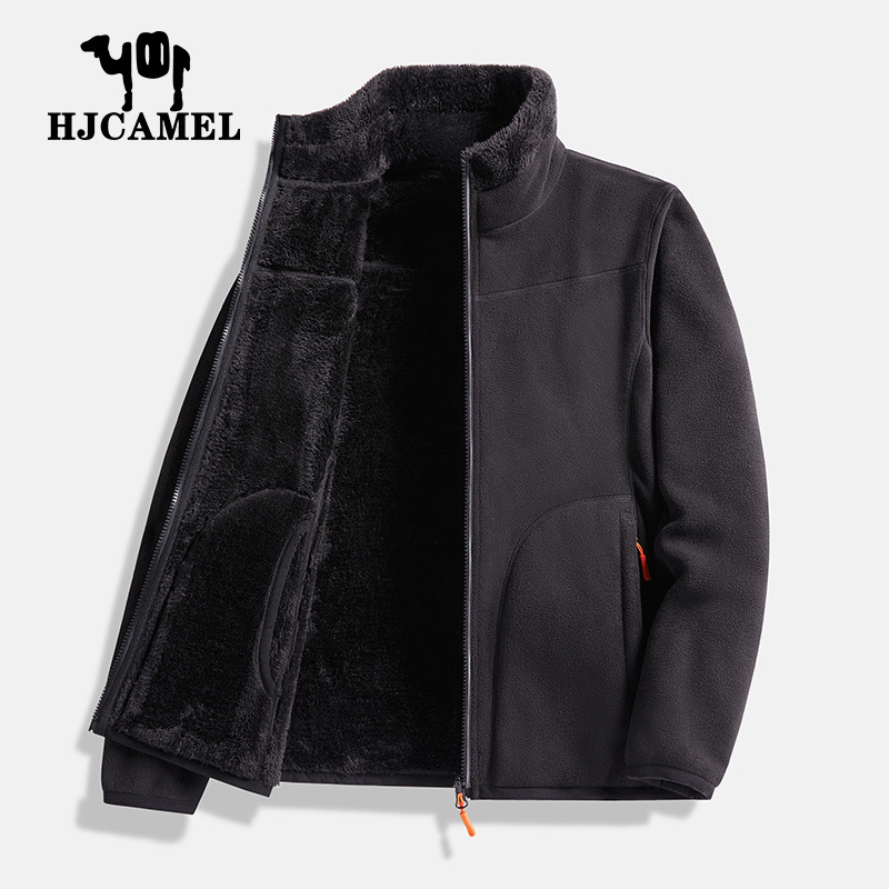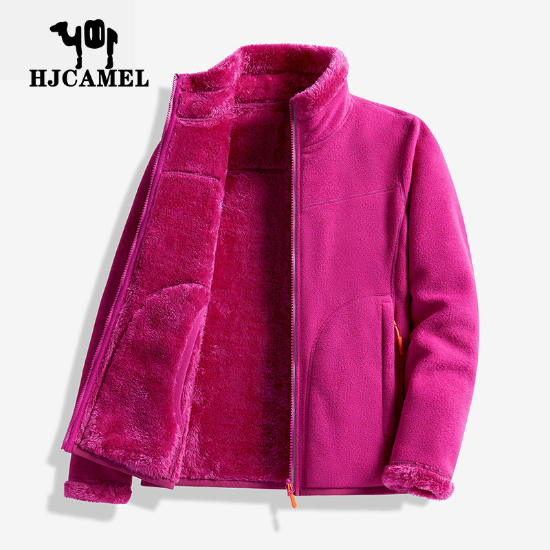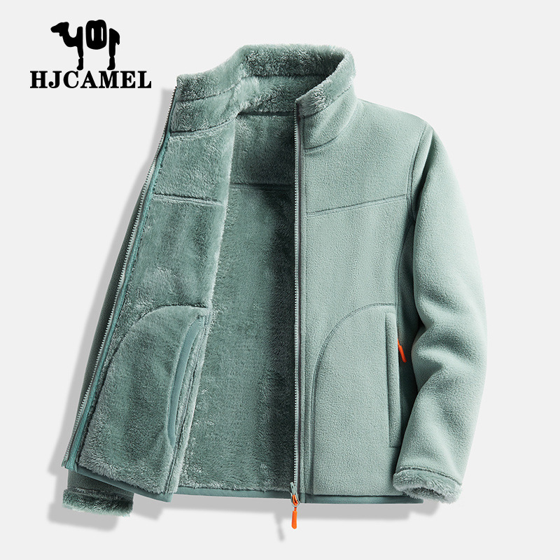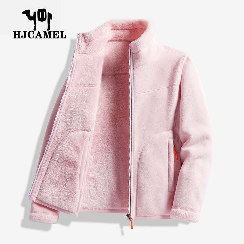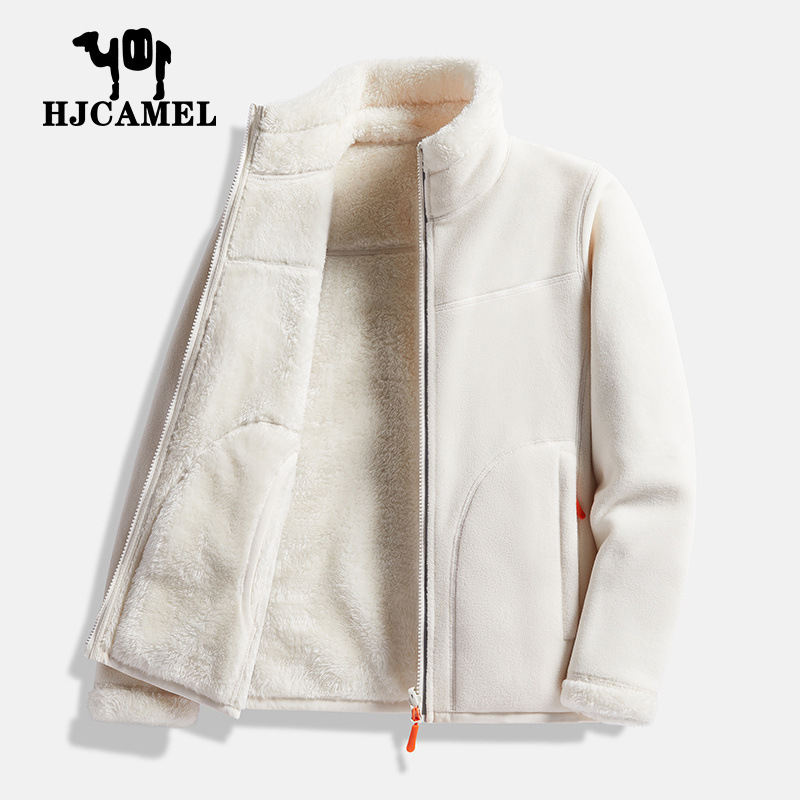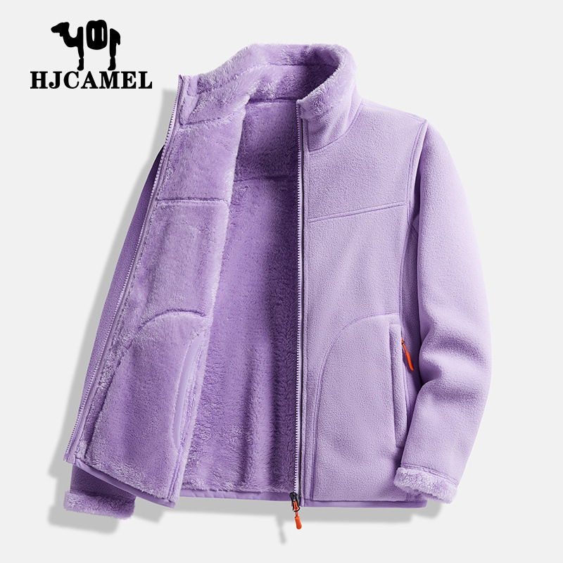 Huagang 카멜 양털 코트 여성용 코트 폴라 플리스 탑 가을과 겨울의 양면 두꺼운 산호 양털 스웨터 카디건
