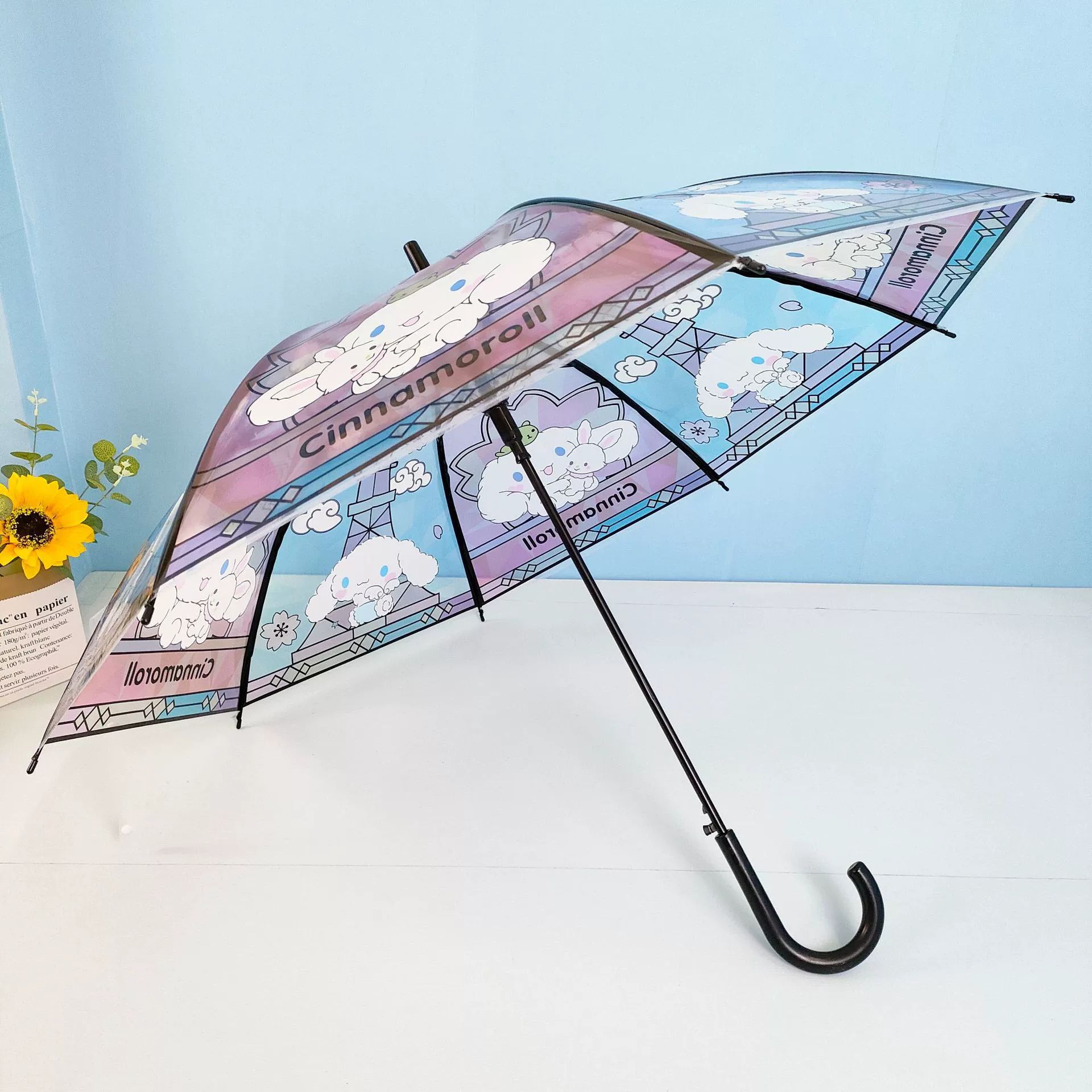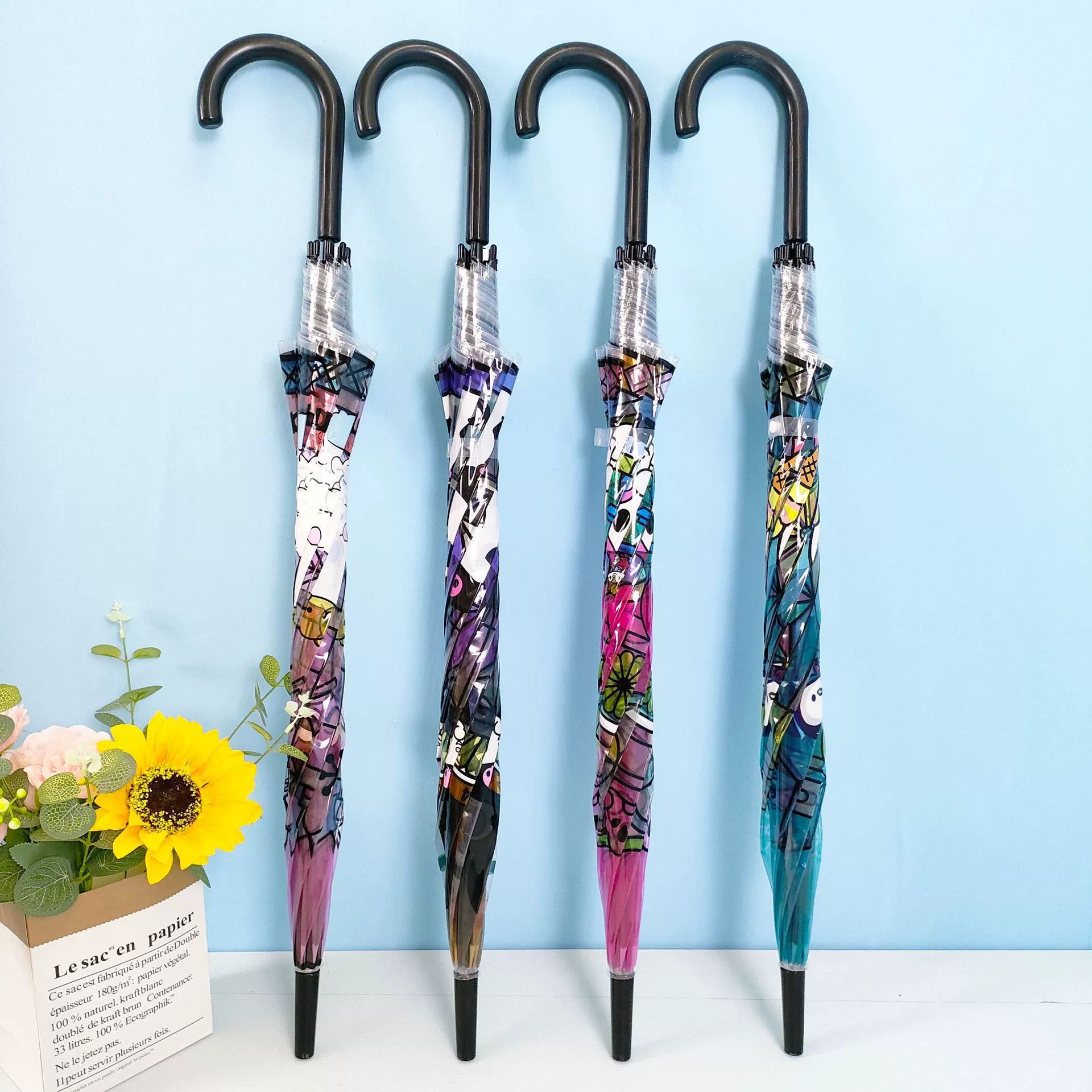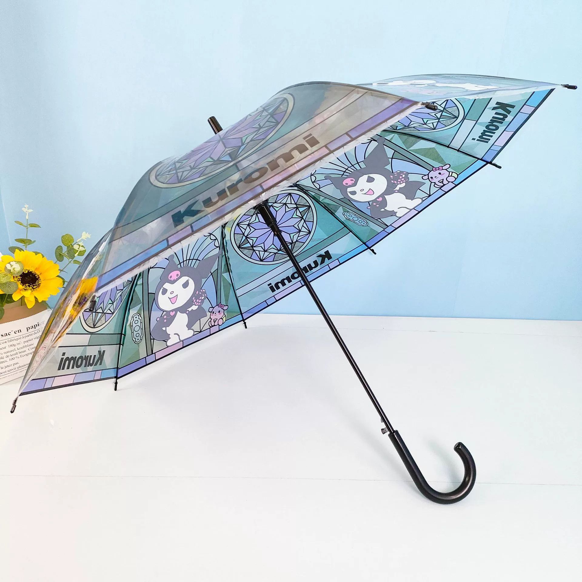 그린 투명 우산 긴 손잡이 어린이 성인 인터넷-유명한 소년과 소녀 만화 귀여운 빈티지 두꺼운 쿨리 미 우산스토어 가기