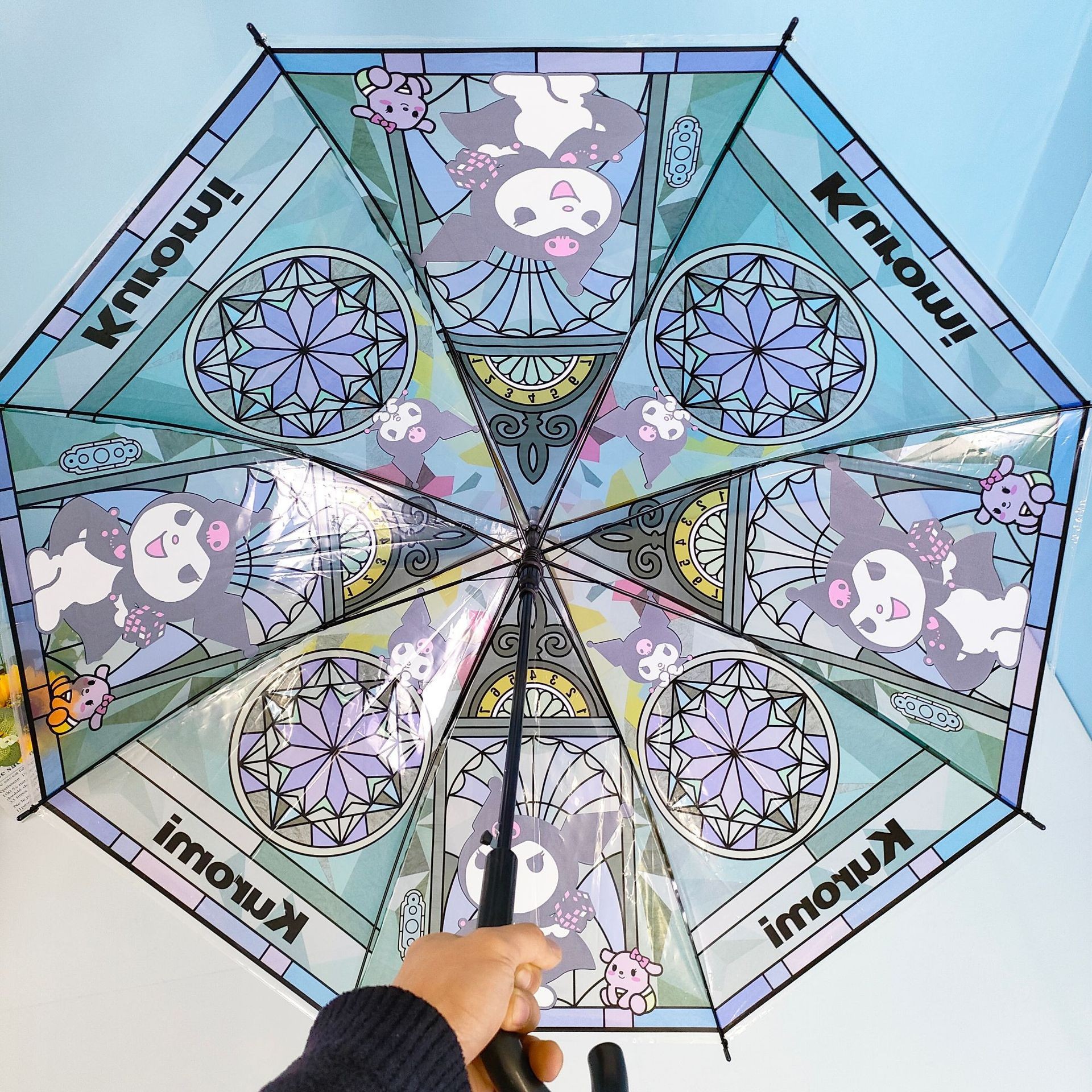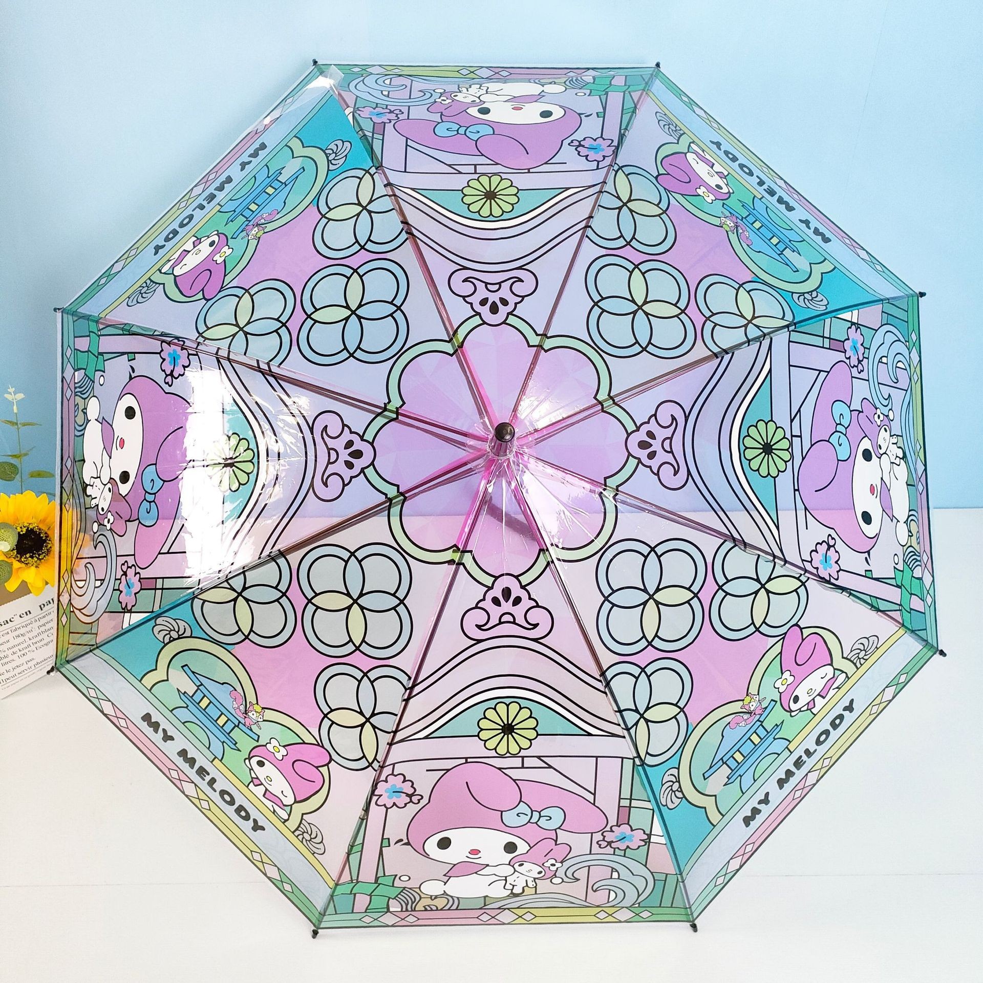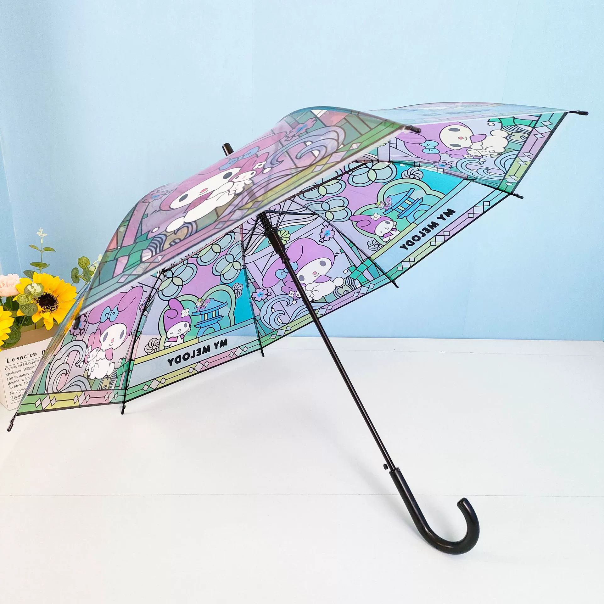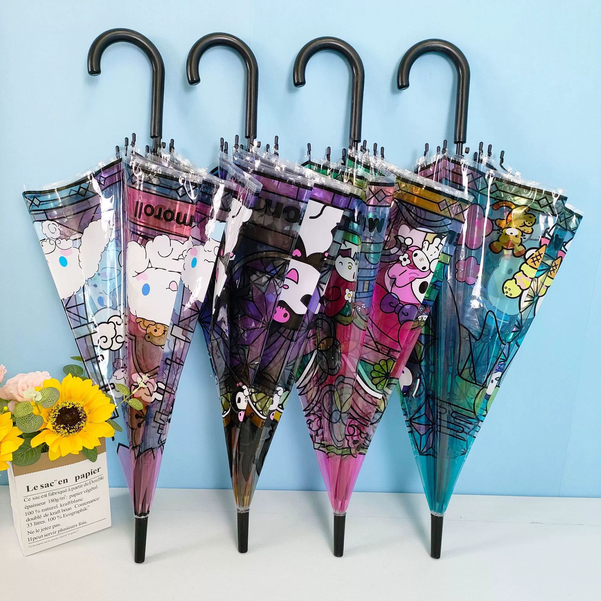 그린 투명 우산 긴 손잡이 어린이 성인 인터넷-유명한 소년과 소녀 만화 귀여운 빈티지 두꺼운 쿨리 미 우산스토어 가기