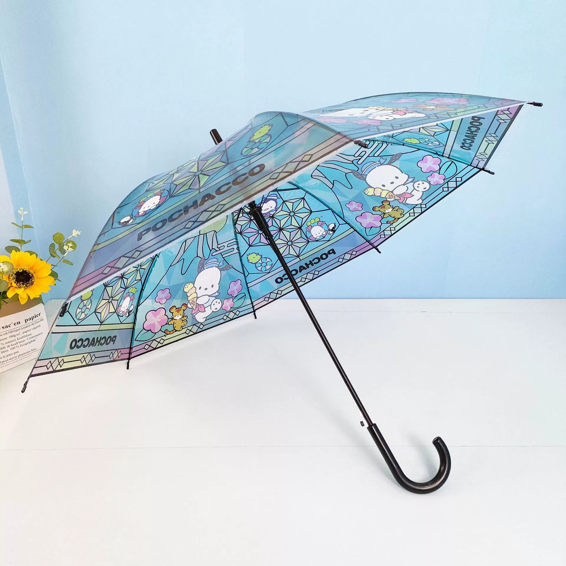 그린 투명 우산 긴 손잡이 어린이 성인 인터넷-유명한 소년과 소녀 만화 귀여운 빈티지 두꺼운 쿨리 미 우산