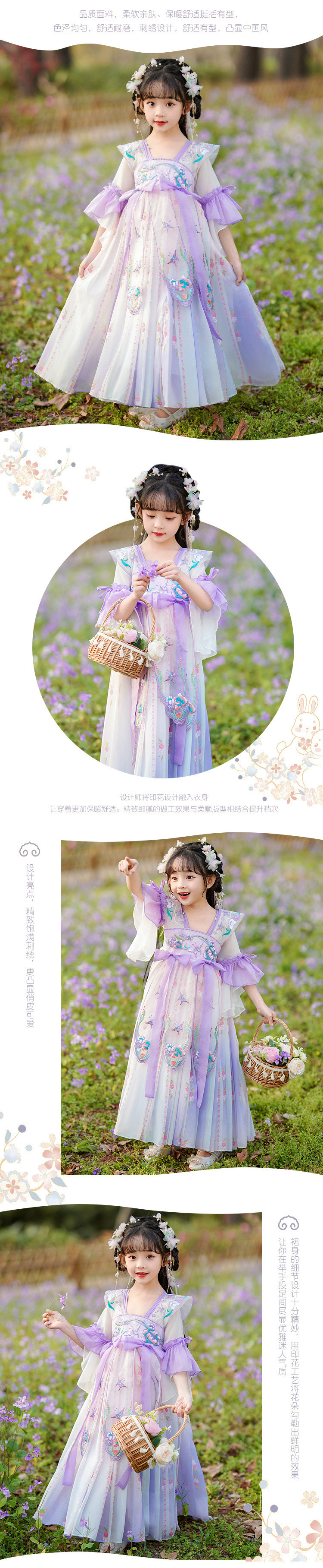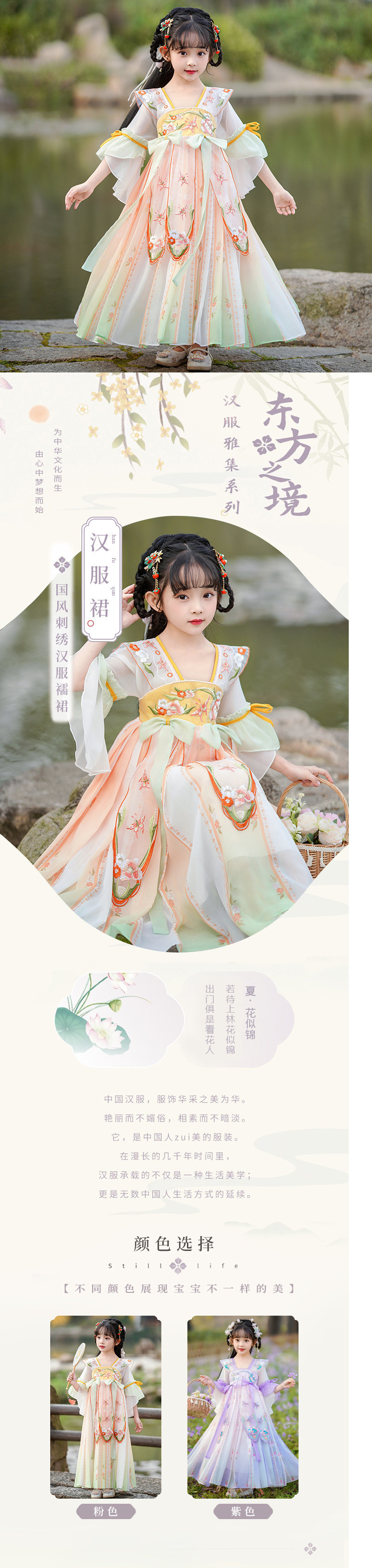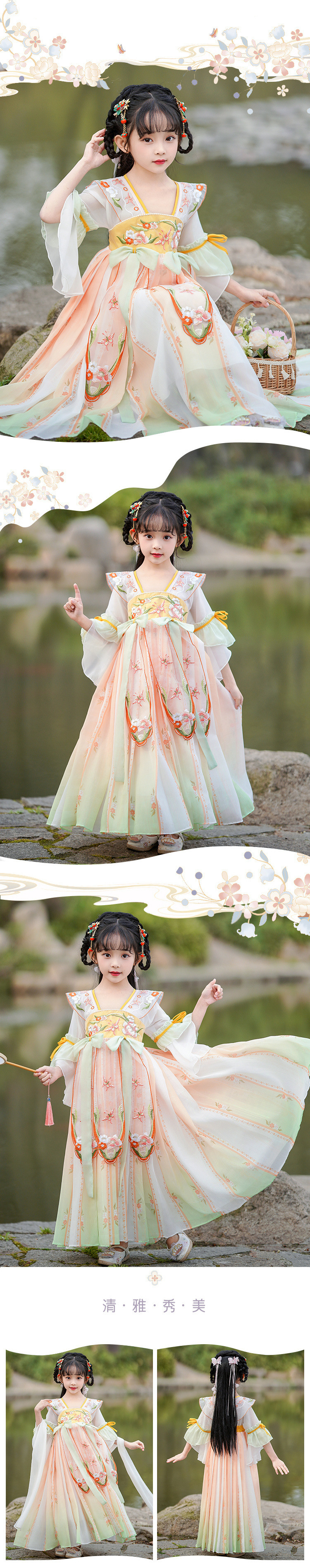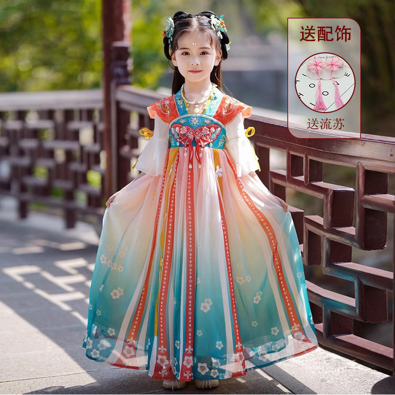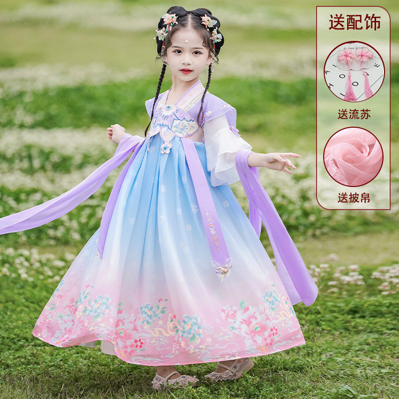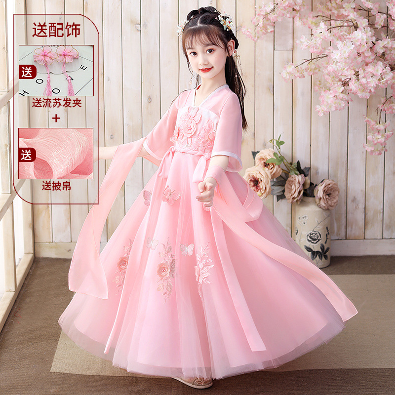 한푸 소녀 여름 중국 스타일 어린이 고대 스타일 슈퍼 불멸의 소녀 원피스 여름 당나라 세트 여성의 고대 원피스