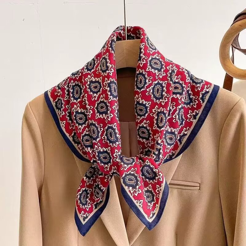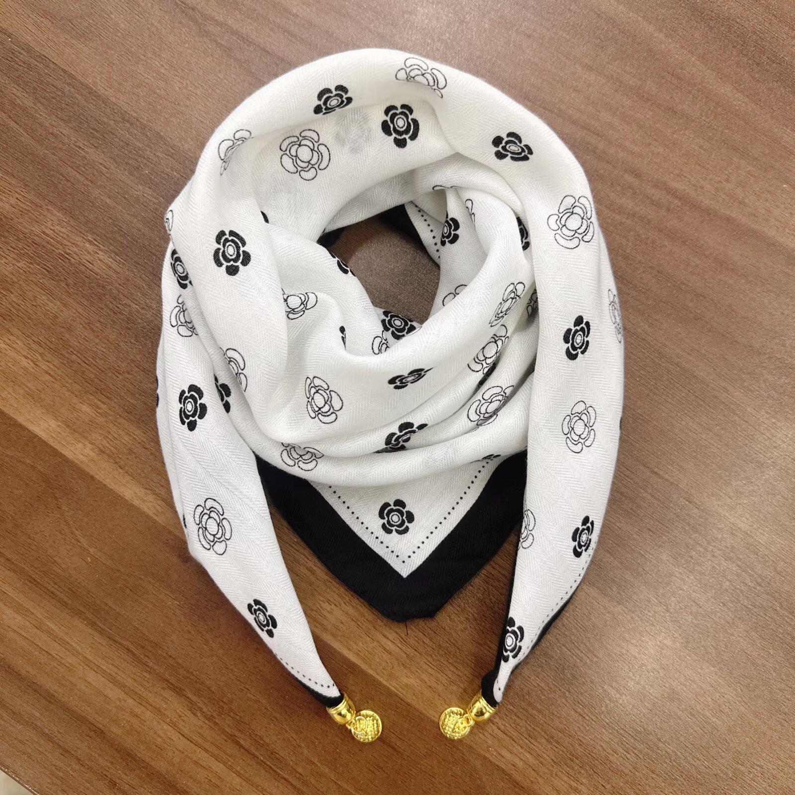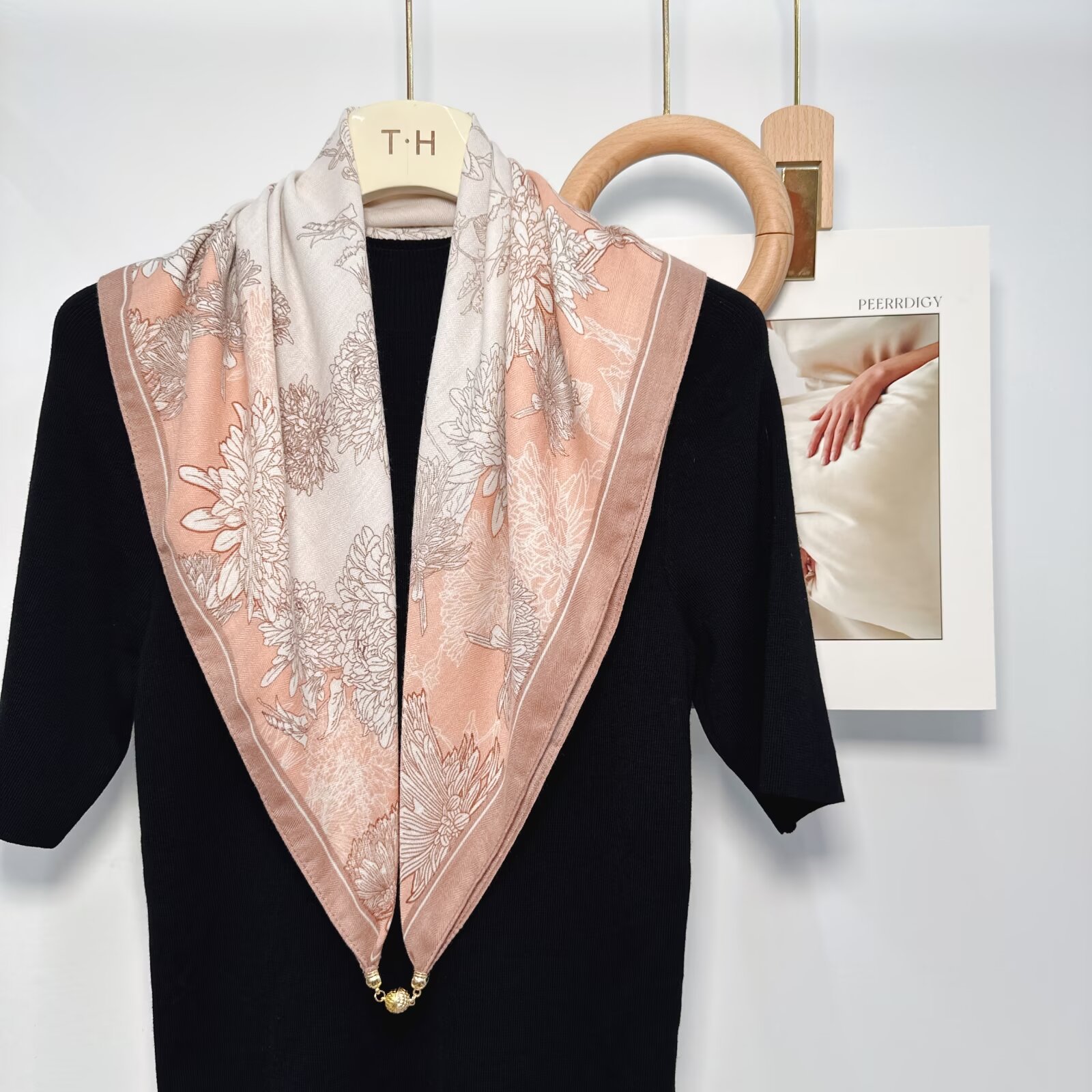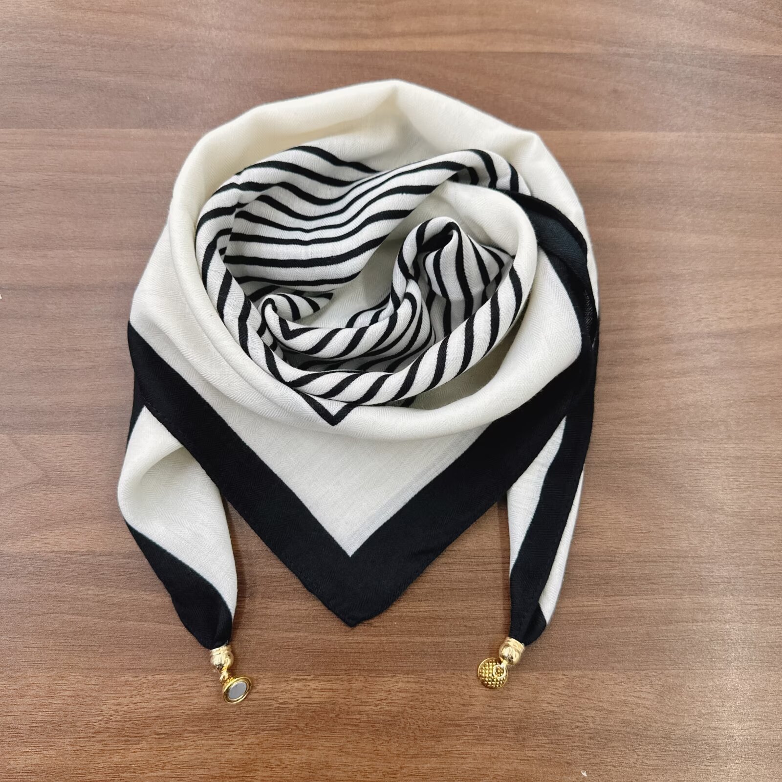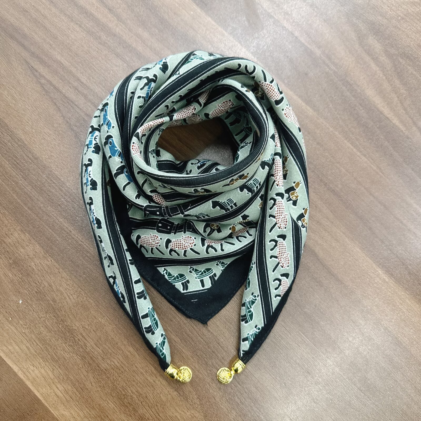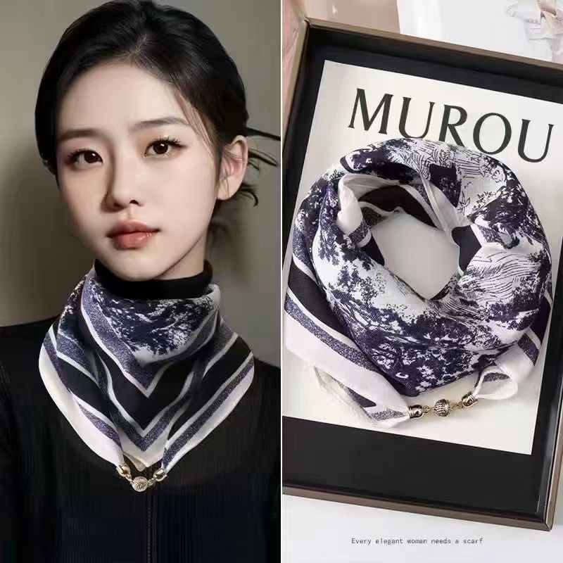 새로운 하이 엔드 헤링본 인쇄 마그네틱 버클 실크 스카프 기질 봄과 여름 외국 스타일 올 매치 여성의 작은 스퀘어 스카프