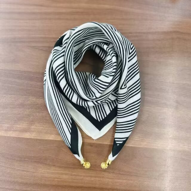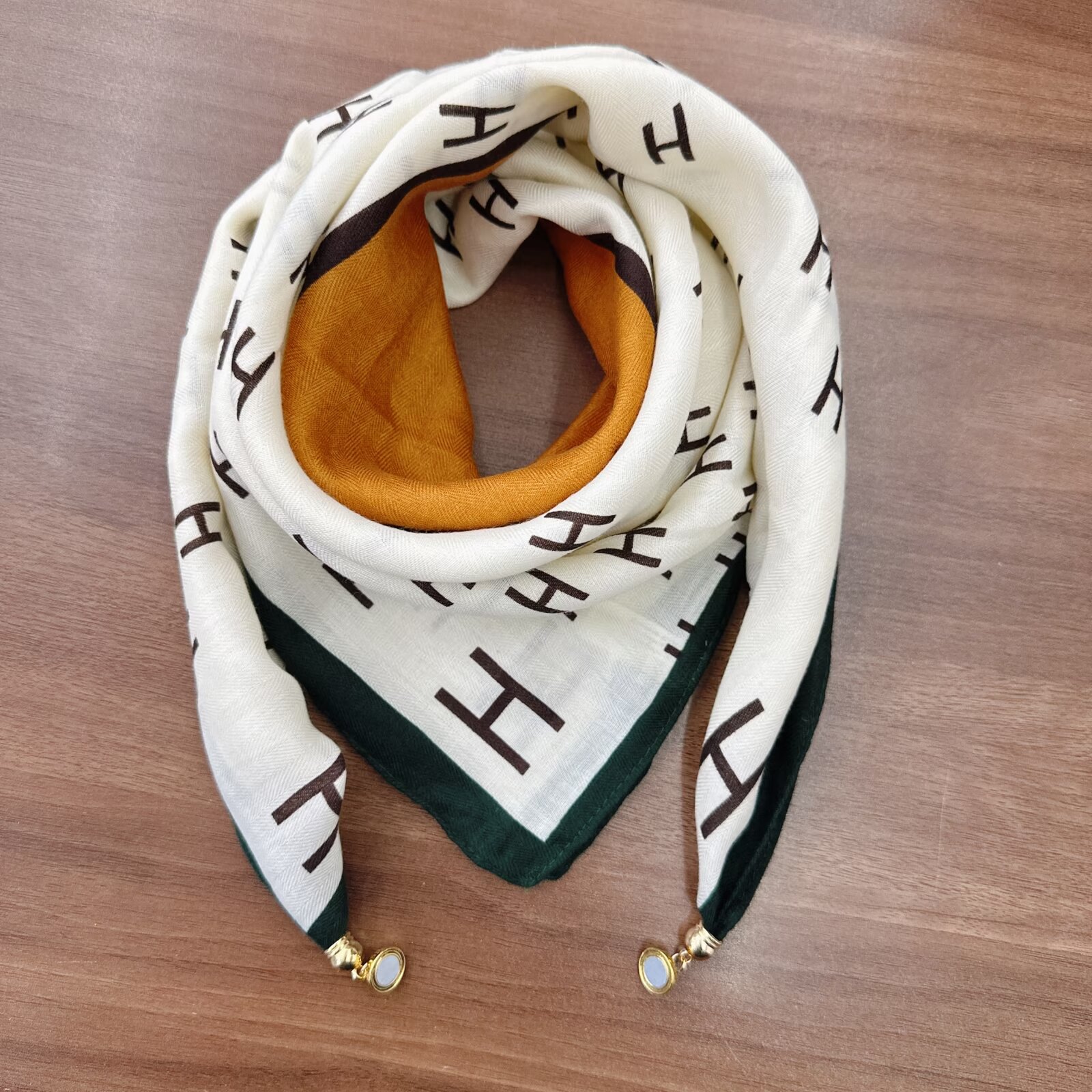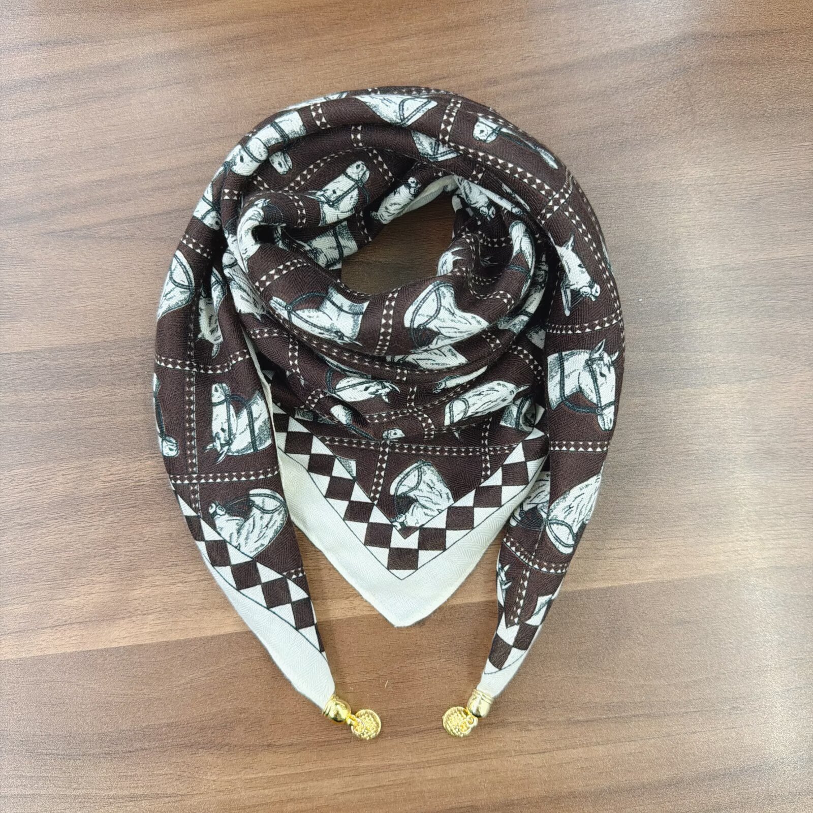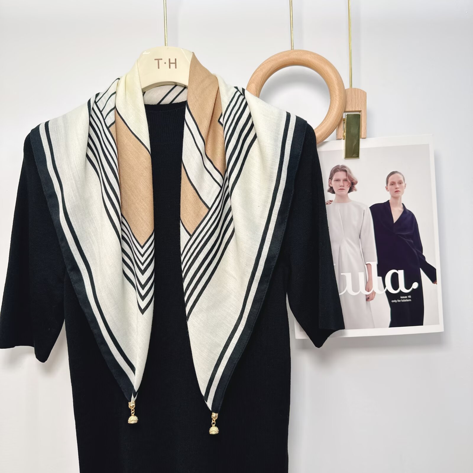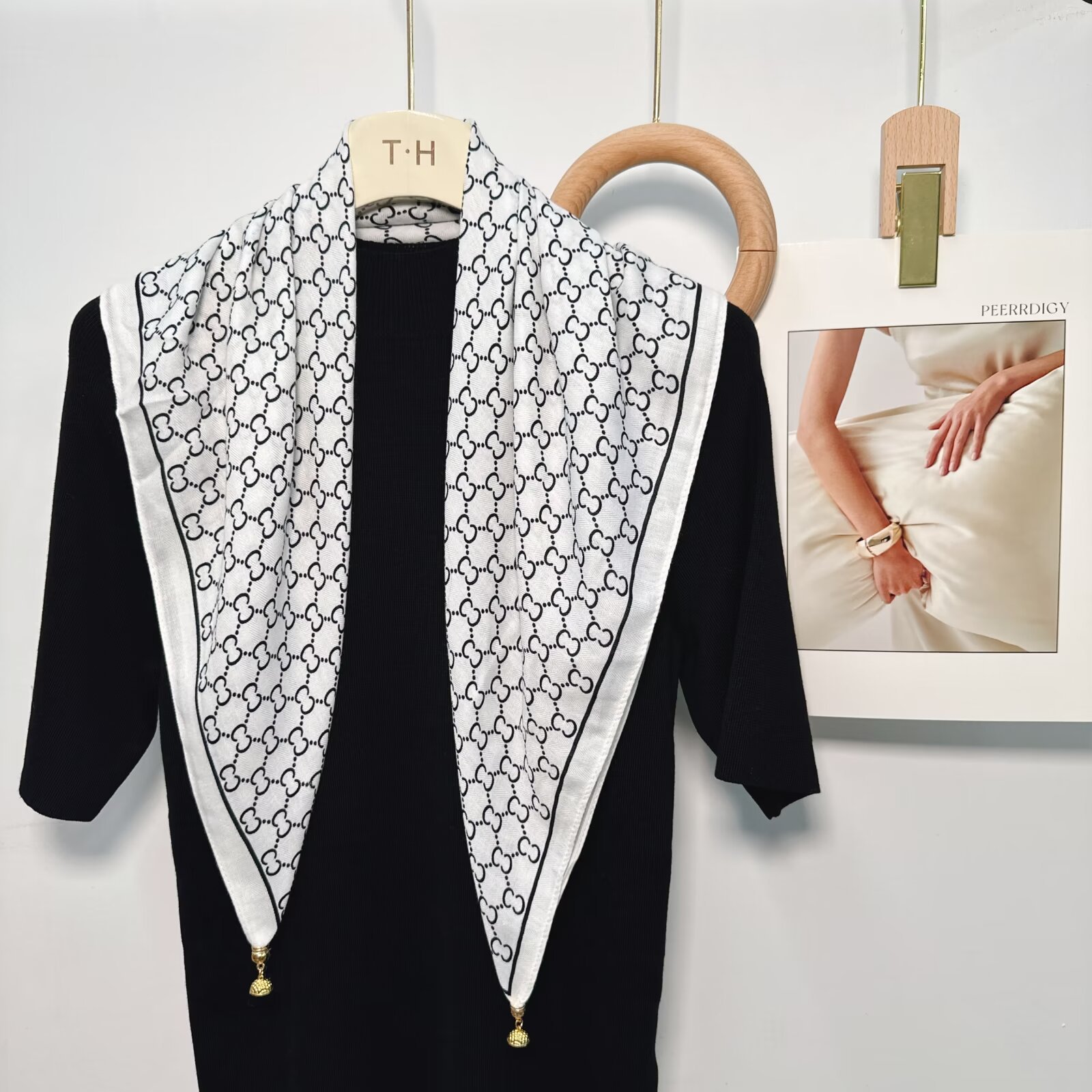 새로운 하이 엔드 헤링본 인쇄 마그네틱 버클 실크 스카프 기질 봄과 여름 외국 스타일 올 매치 여성의 작은 스퀘어 스카프