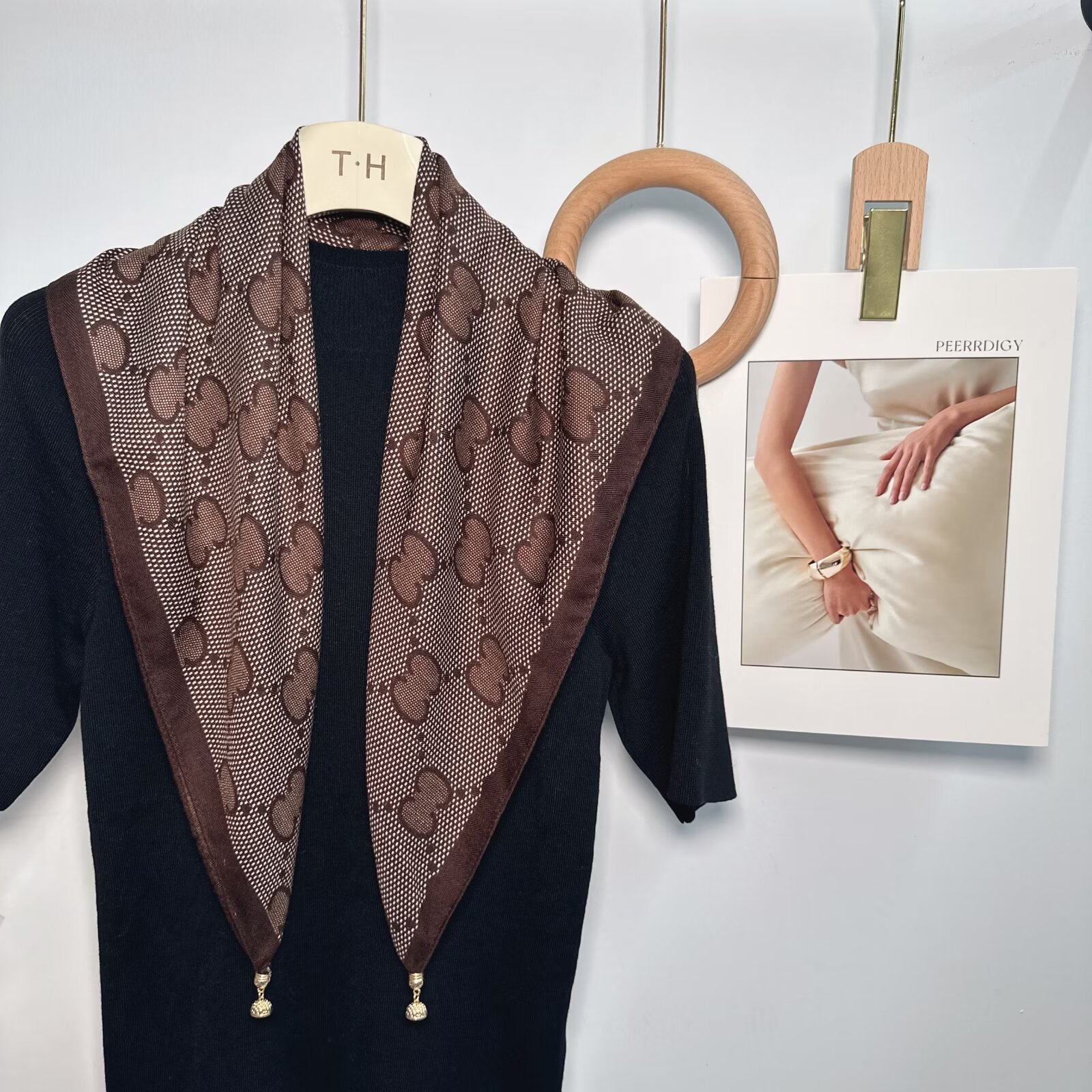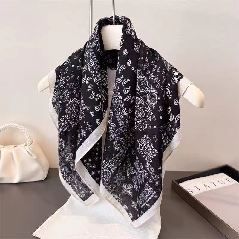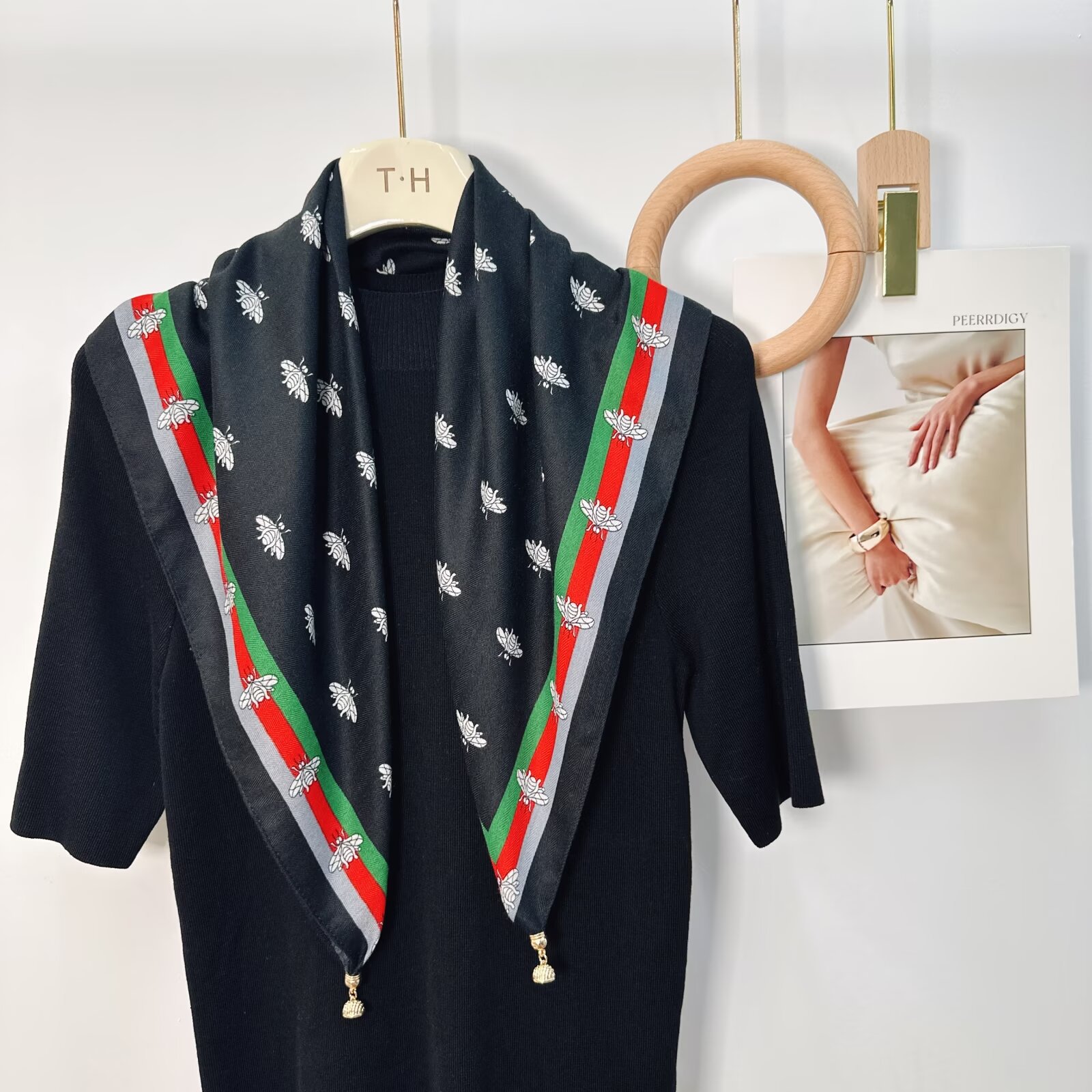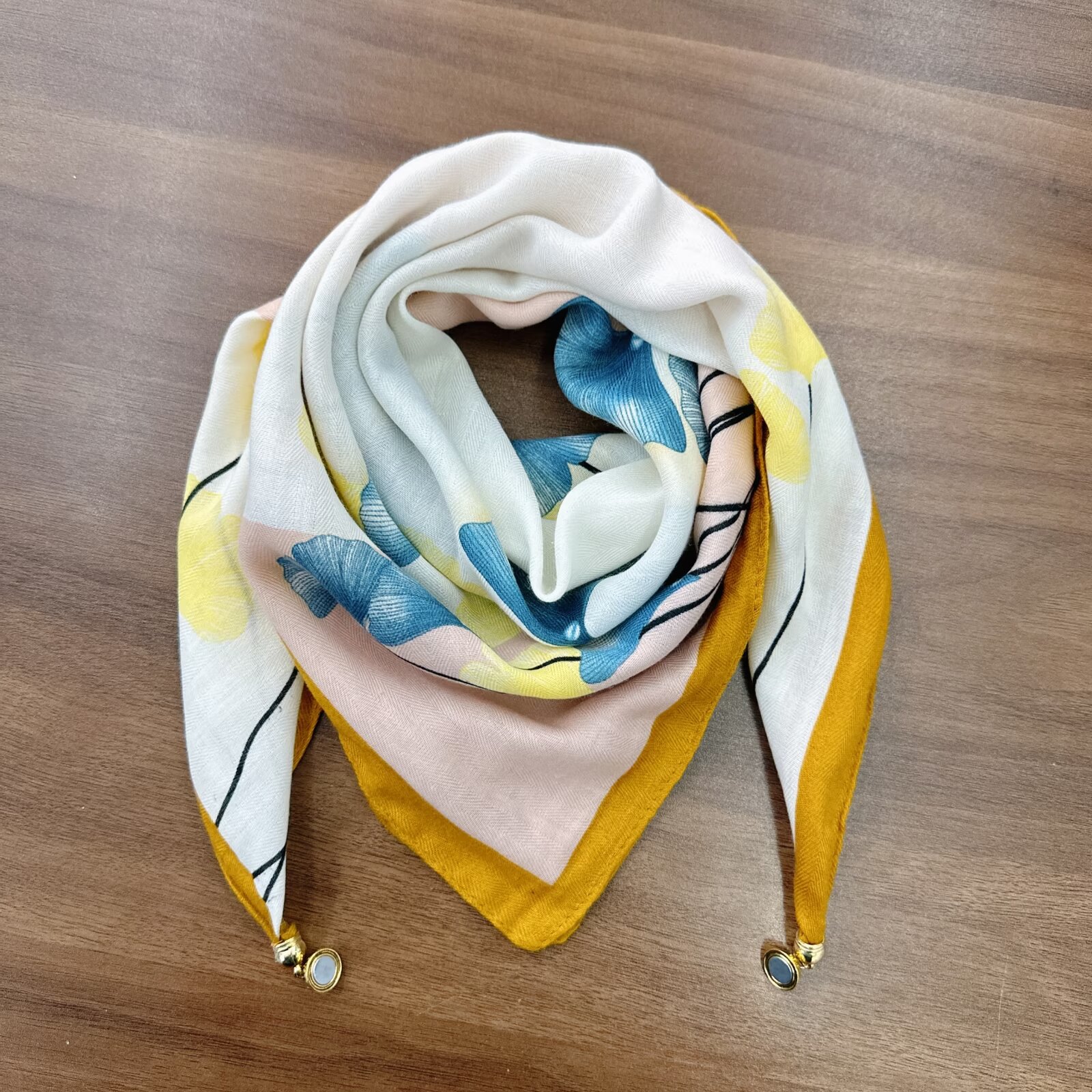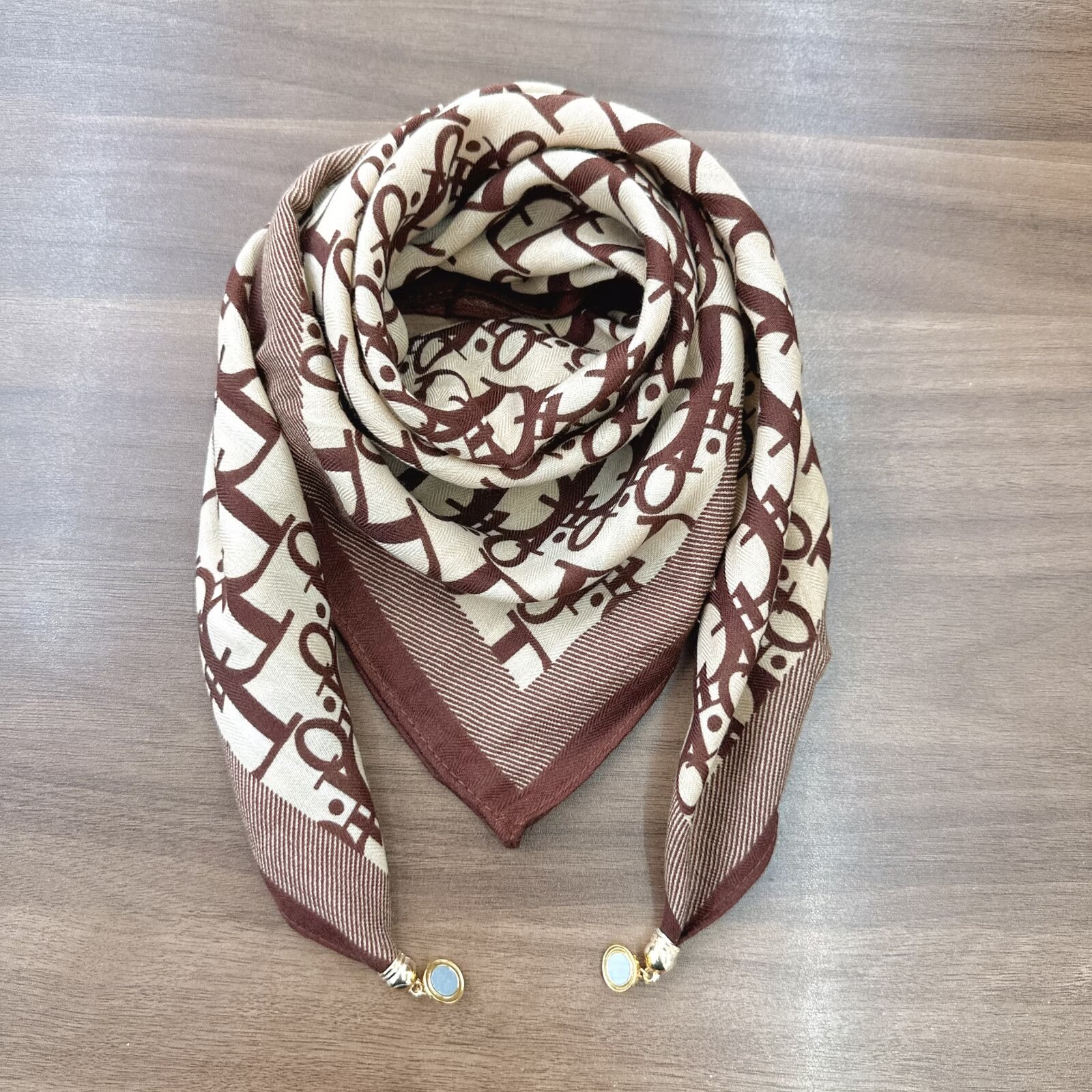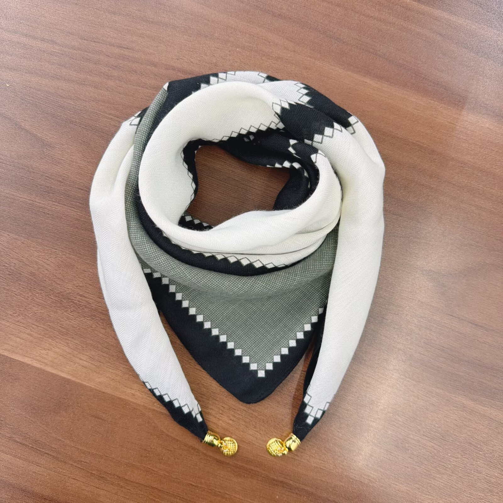 새로운 하이 엔드 헤링본 인쇄 마그네틱 버클 실크 스카프 기질 봄과 여름 외국 스타일 올 매치 여성의 작은 스퀘어 스카프