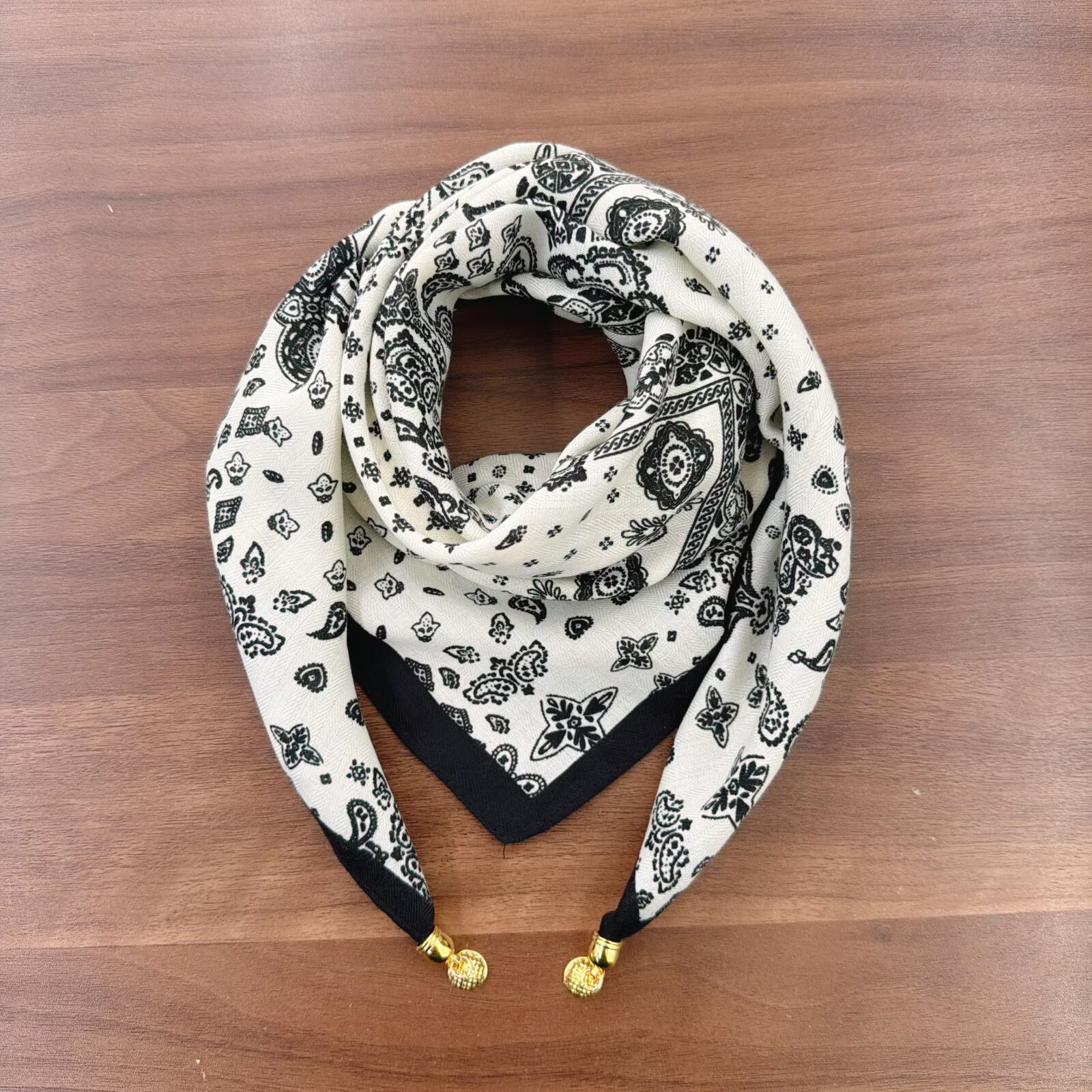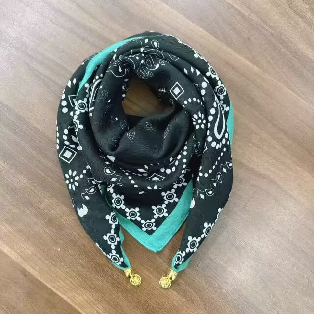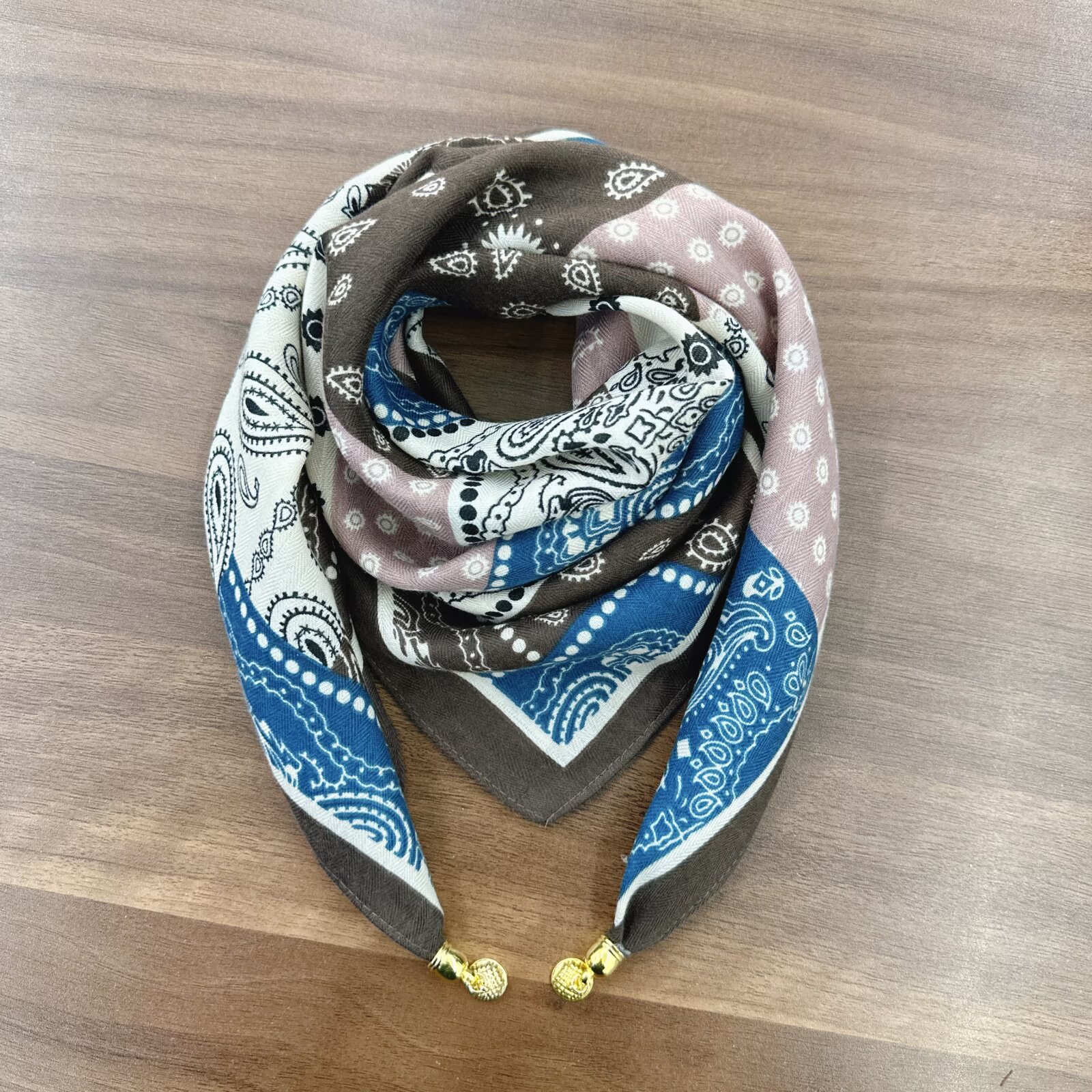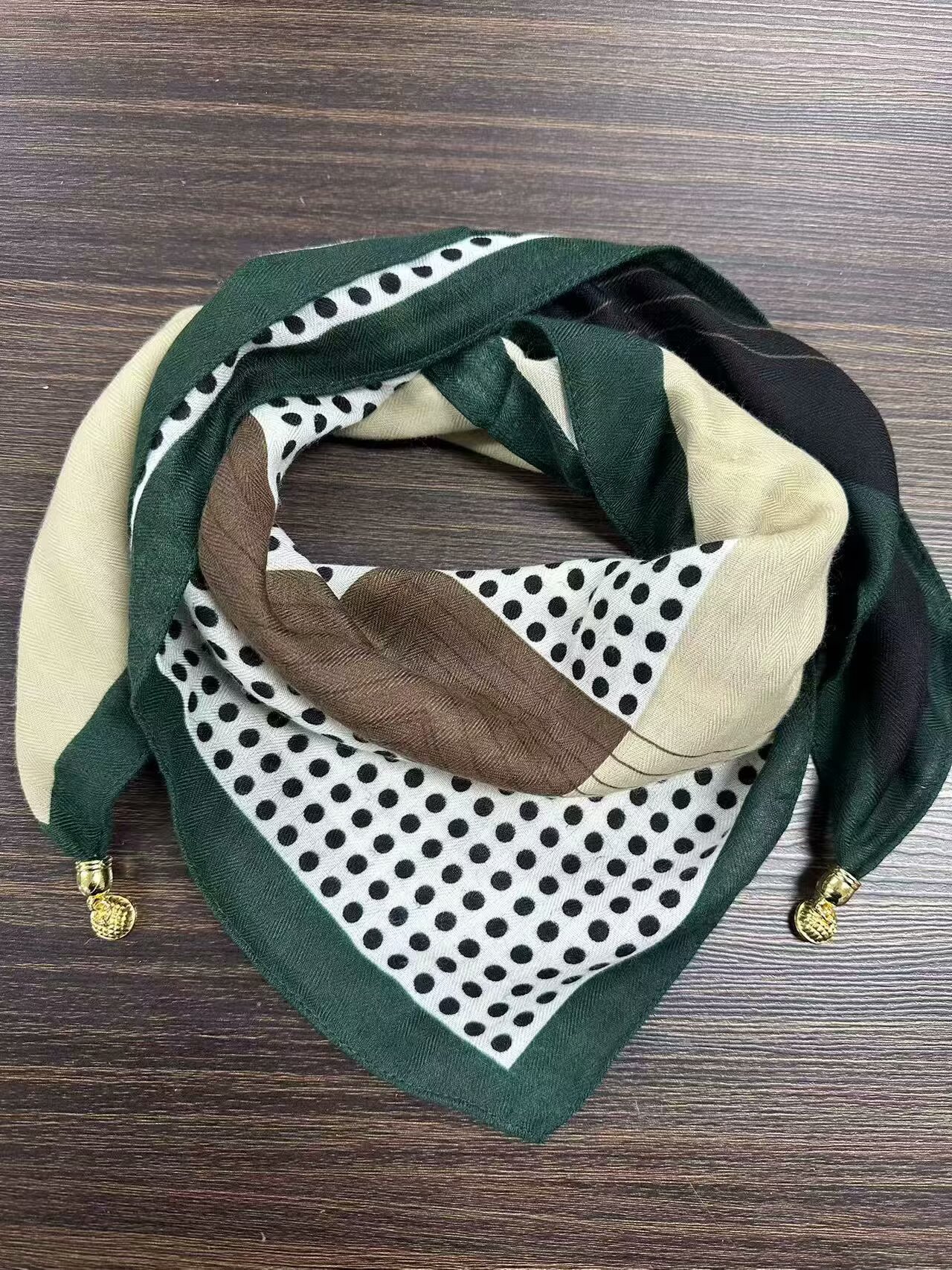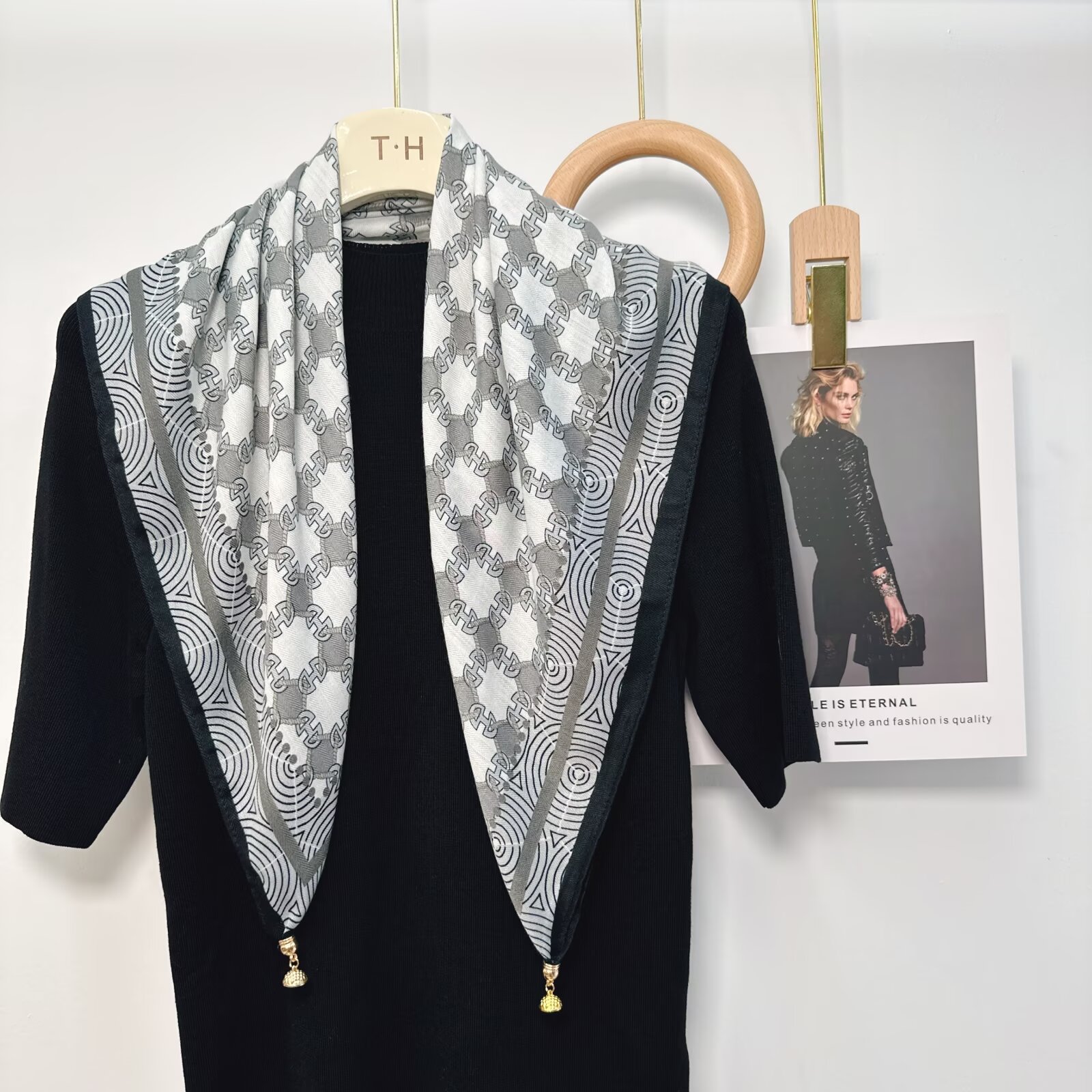 새로운 하이 엔드 헤링본 인쇄 마그네틱 버클 실크 스카프 기질 봄과 여름 외국 스타일 올 매치 여성의 작은 스퀘어 스카프