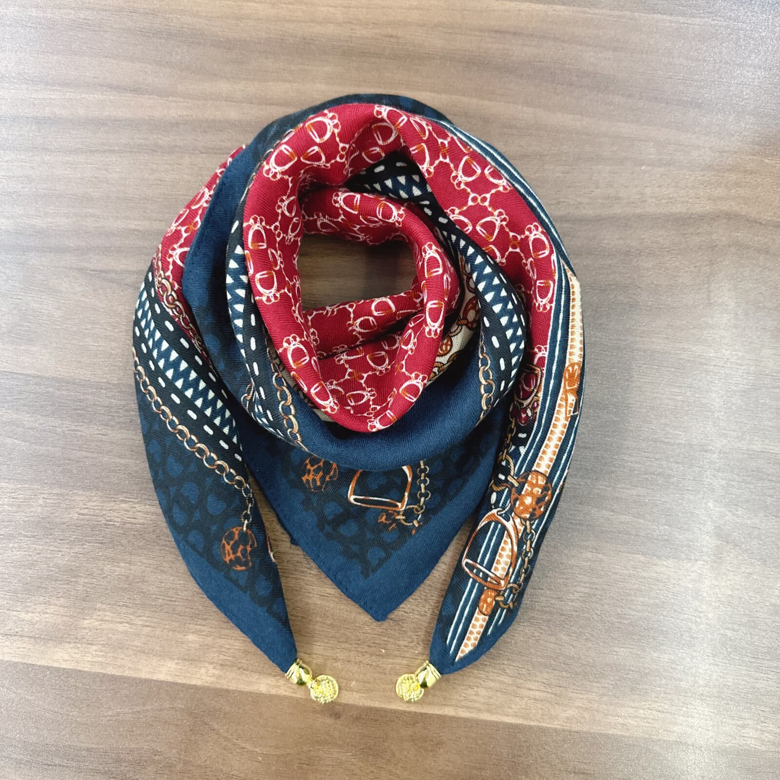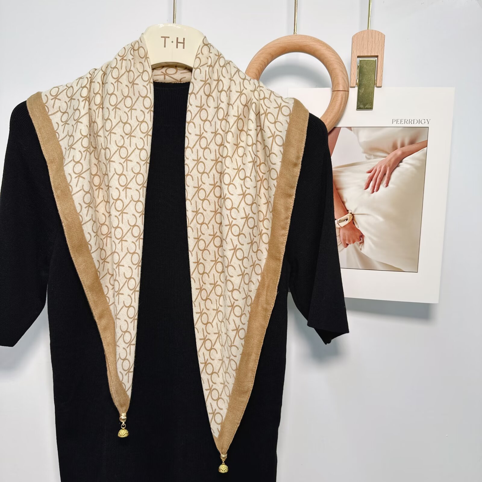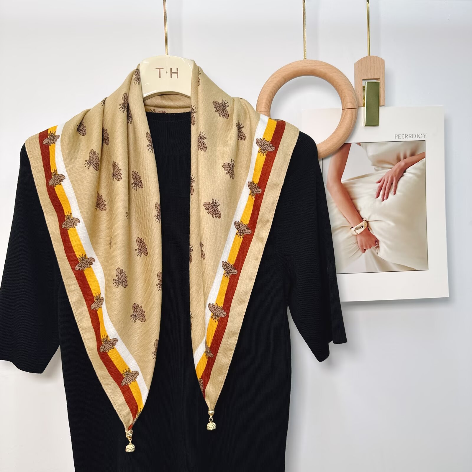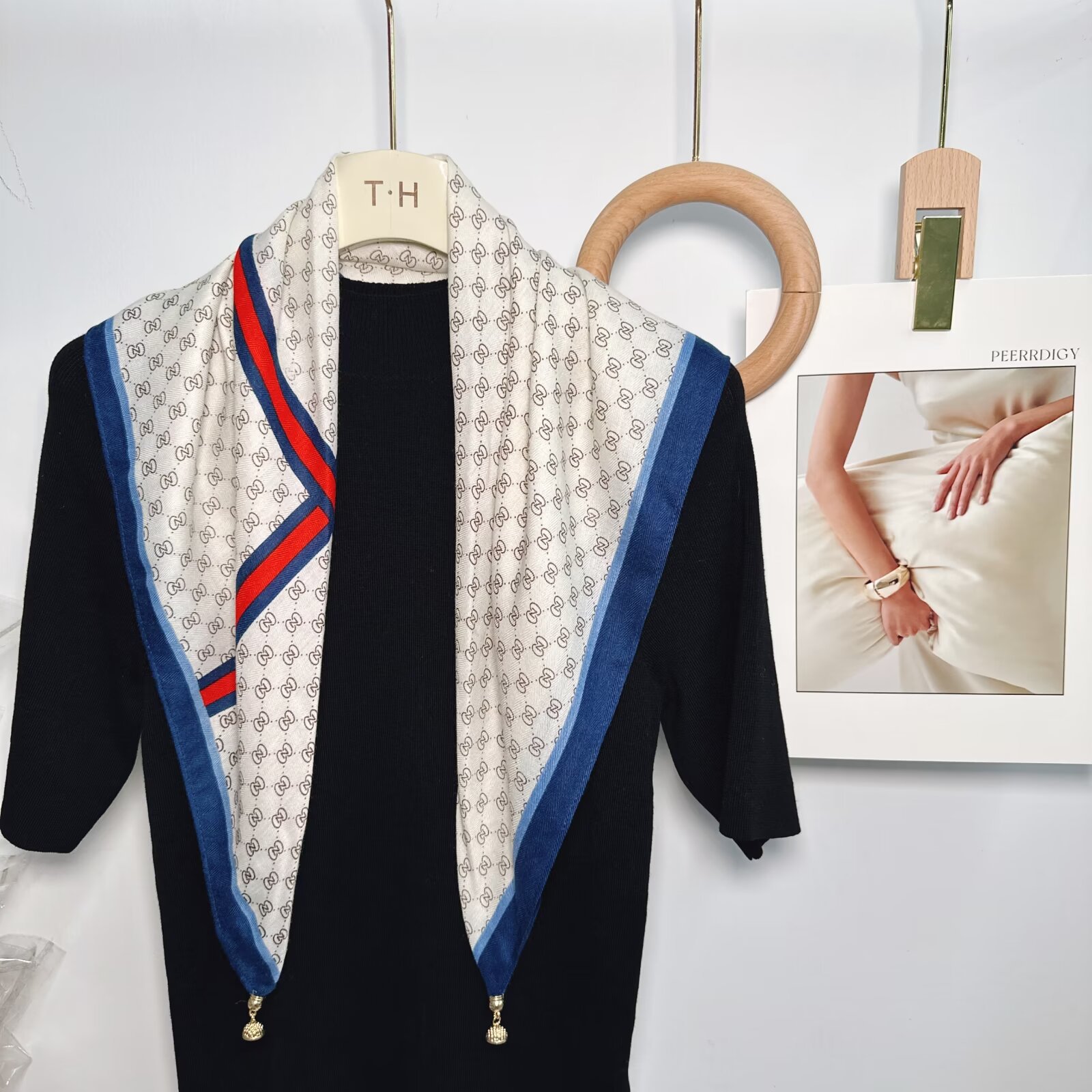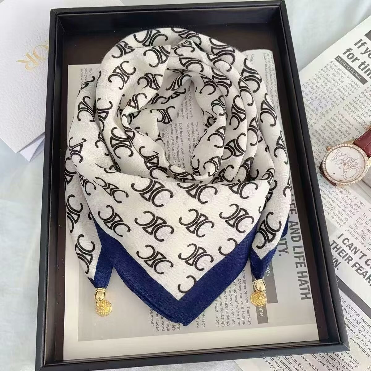 새로운 하이 엔드 헤링본 인쇄 마그네틱 버클 실크 스카프 기질 봄과 여름 외국 스타일 올 매치 여성의 작은 스퀘어 스카프