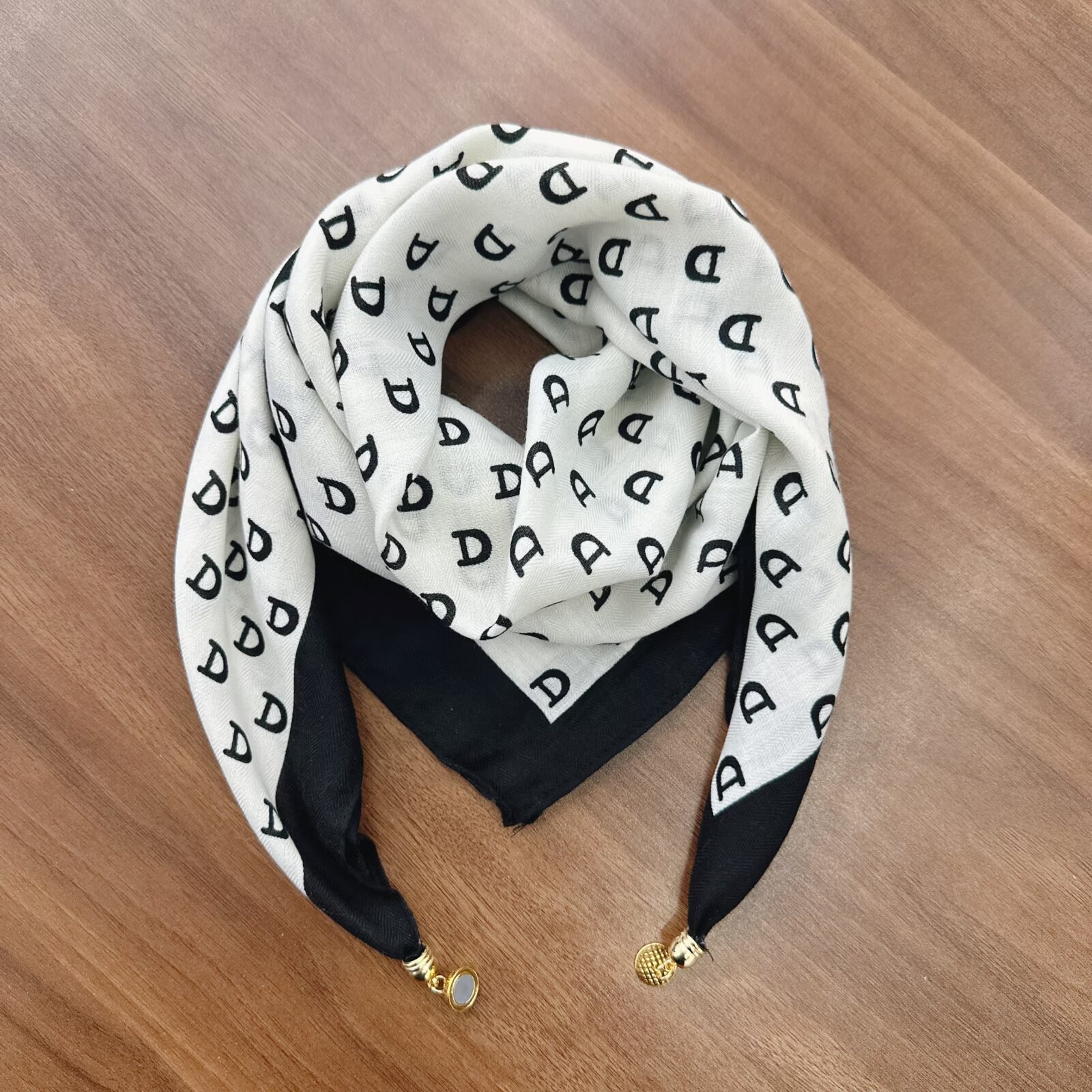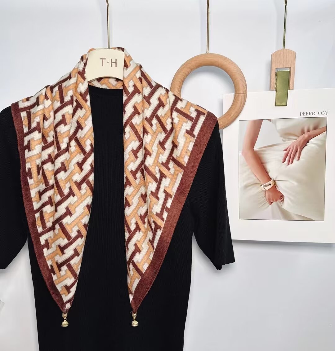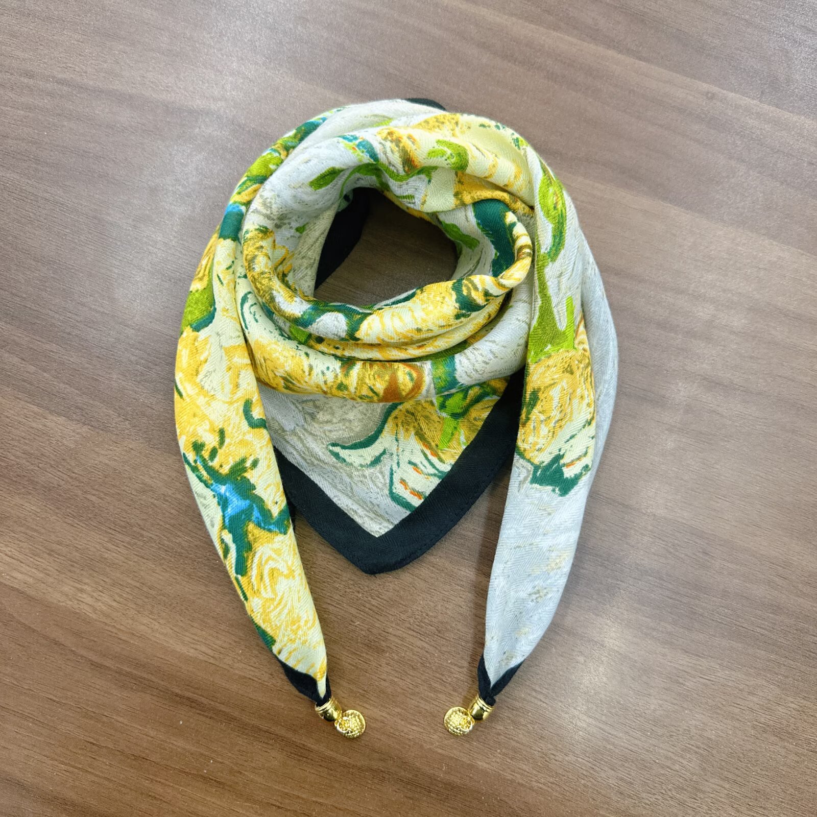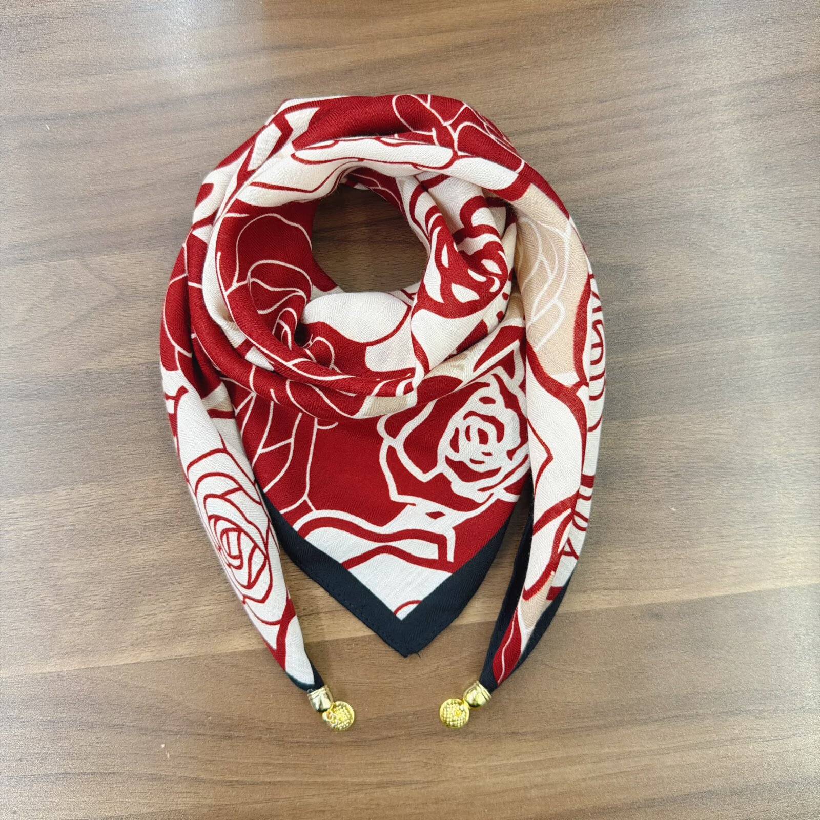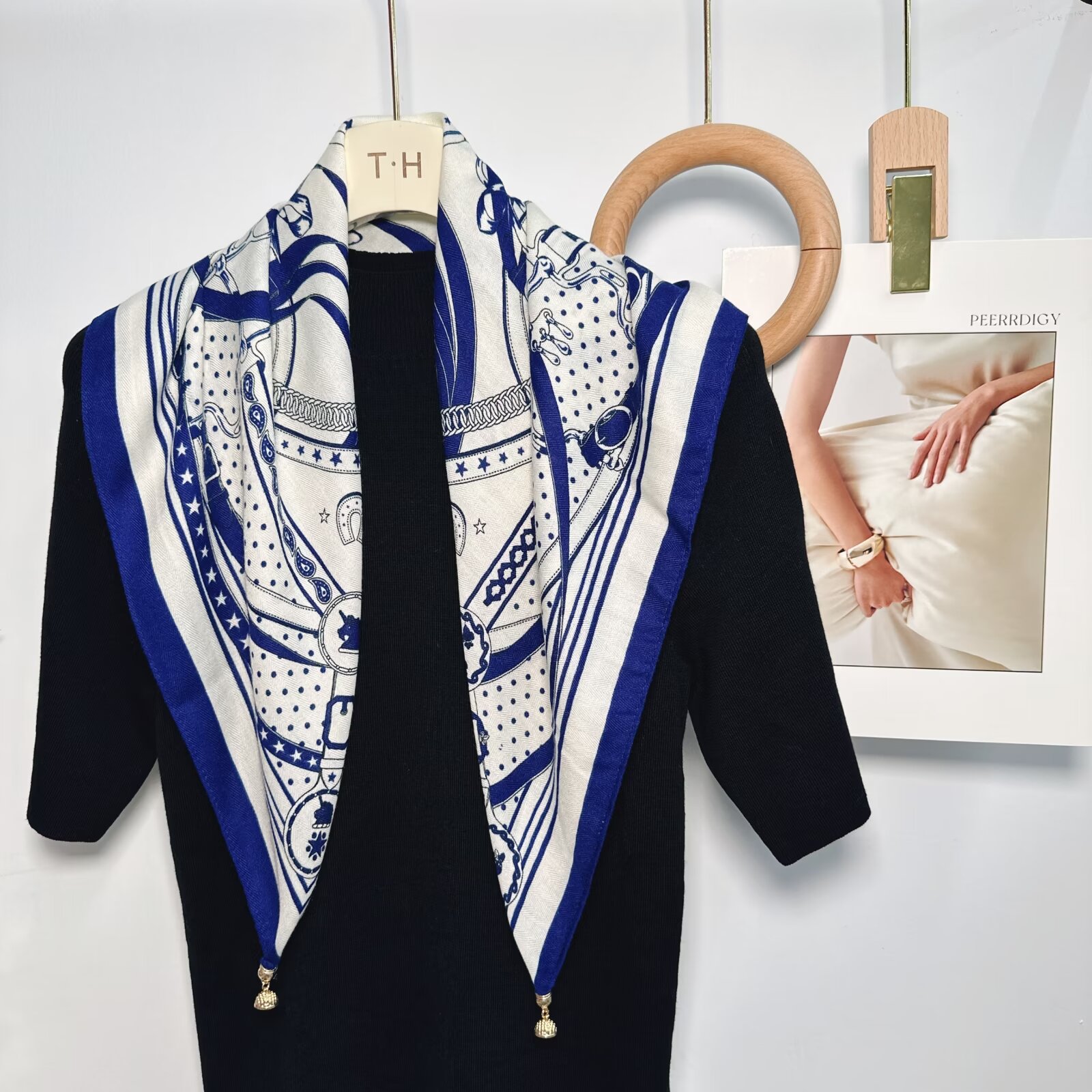 새로운 하이 엔드 헤링본 인쇄 마그네틱 버클 실크 스카프 기질 봄과 여름 외국 스타일 올 매치 여성의 작은 스퀘어 스카프