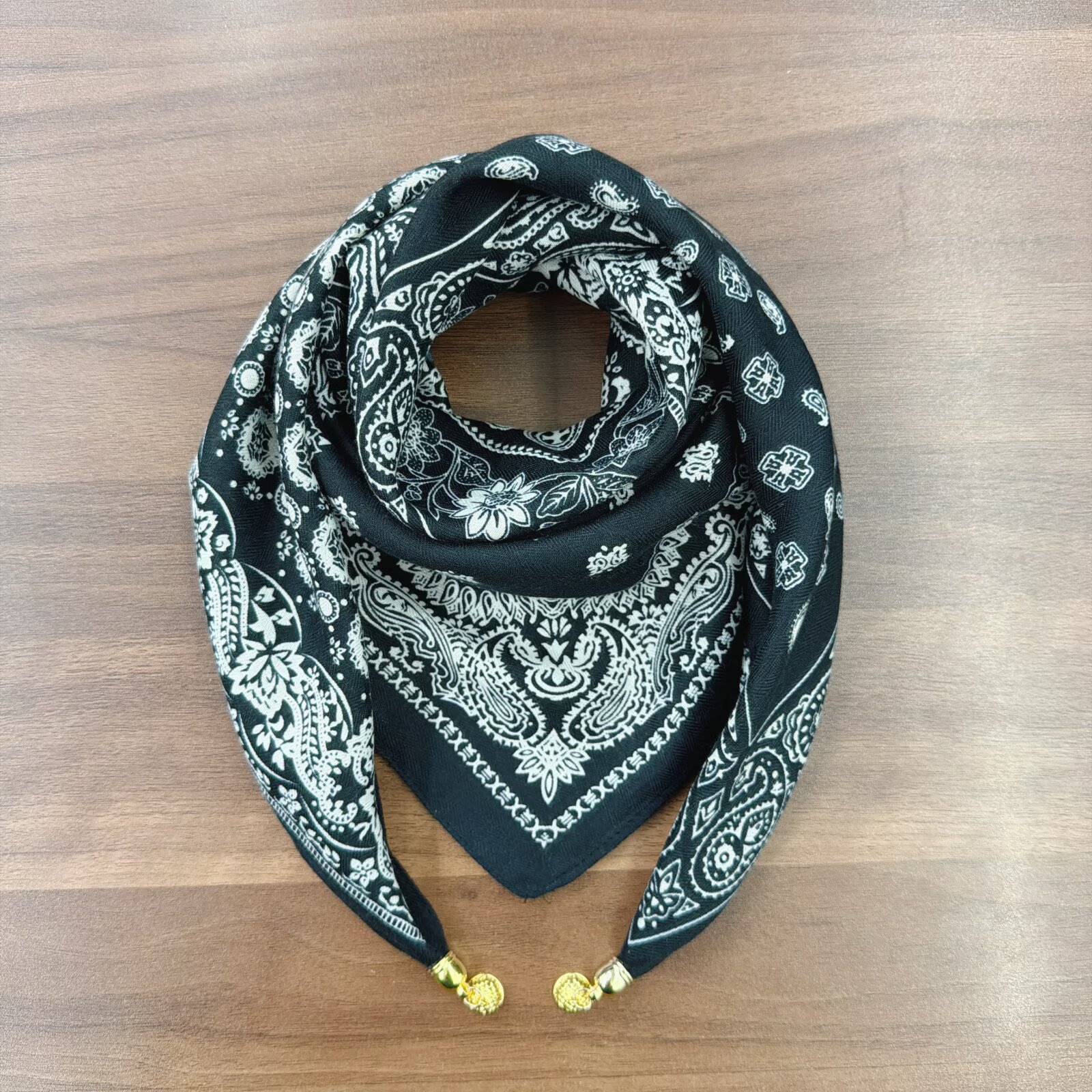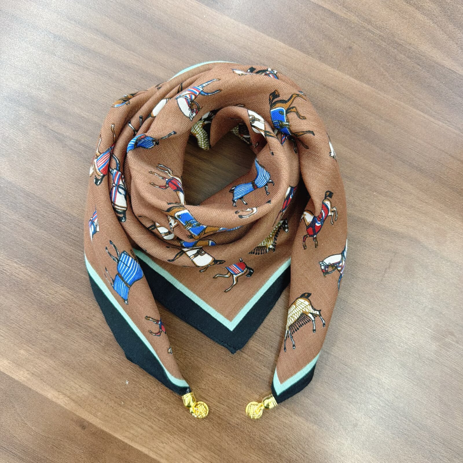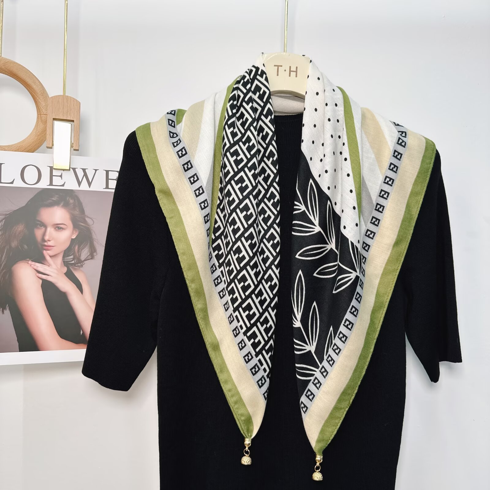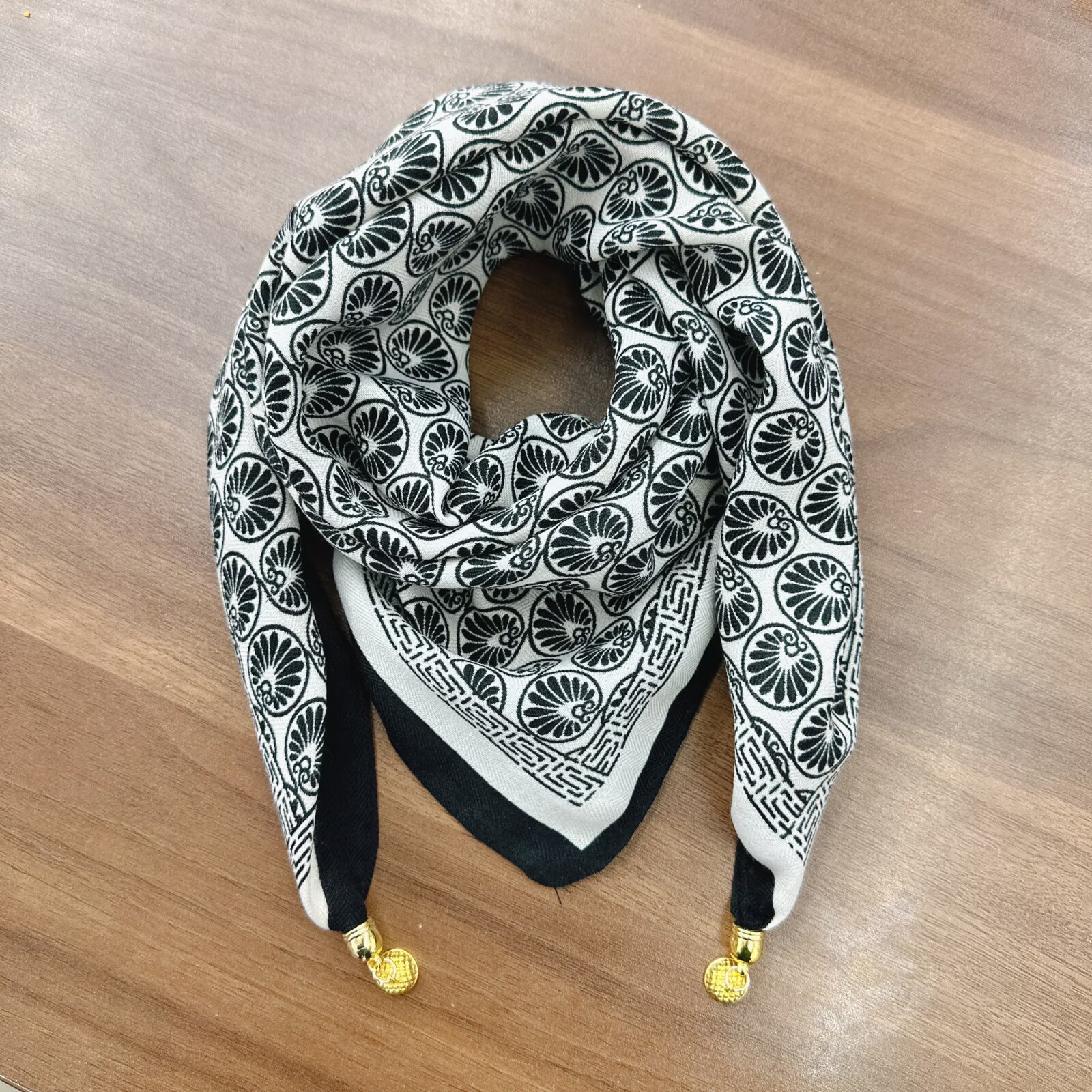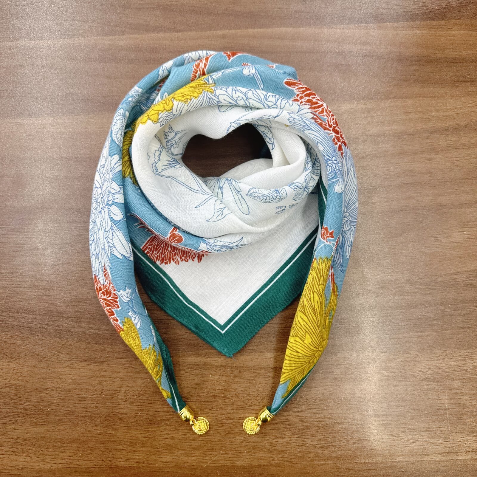 새로운 하이 엔드 헤링본 인쇄 마그네틱 버클 실크 스카프 기질 봄과 여름 외국 스타일 올 매치 여성의 작은 스퀘어 스카프