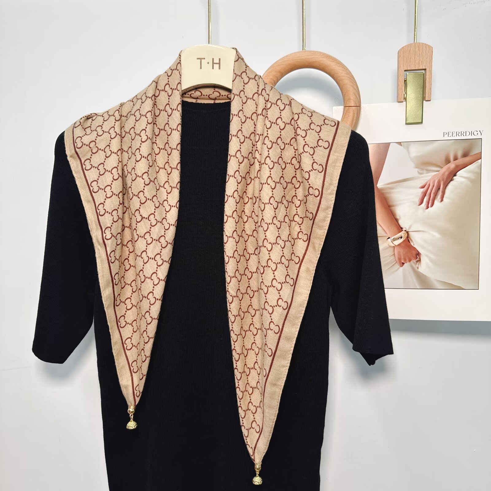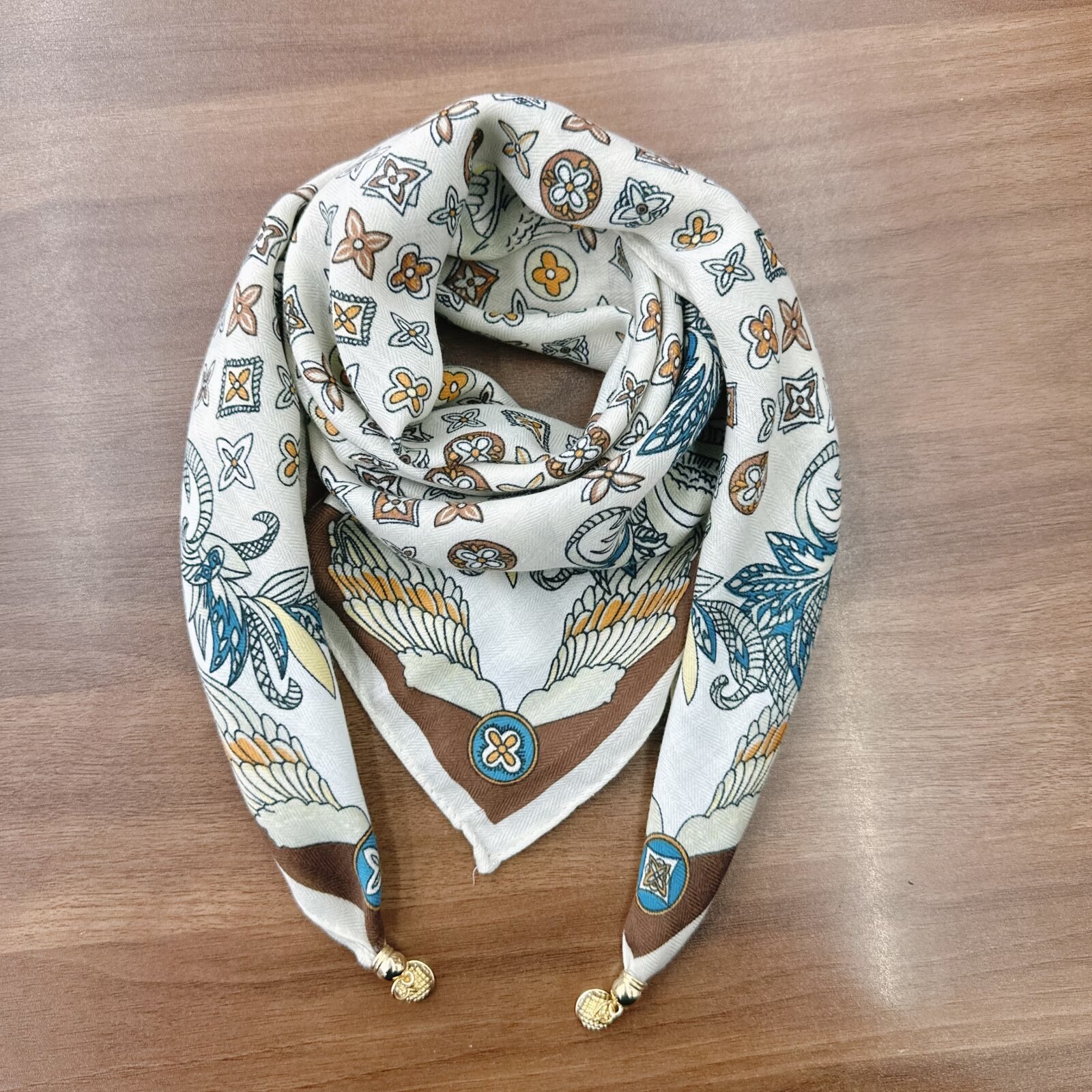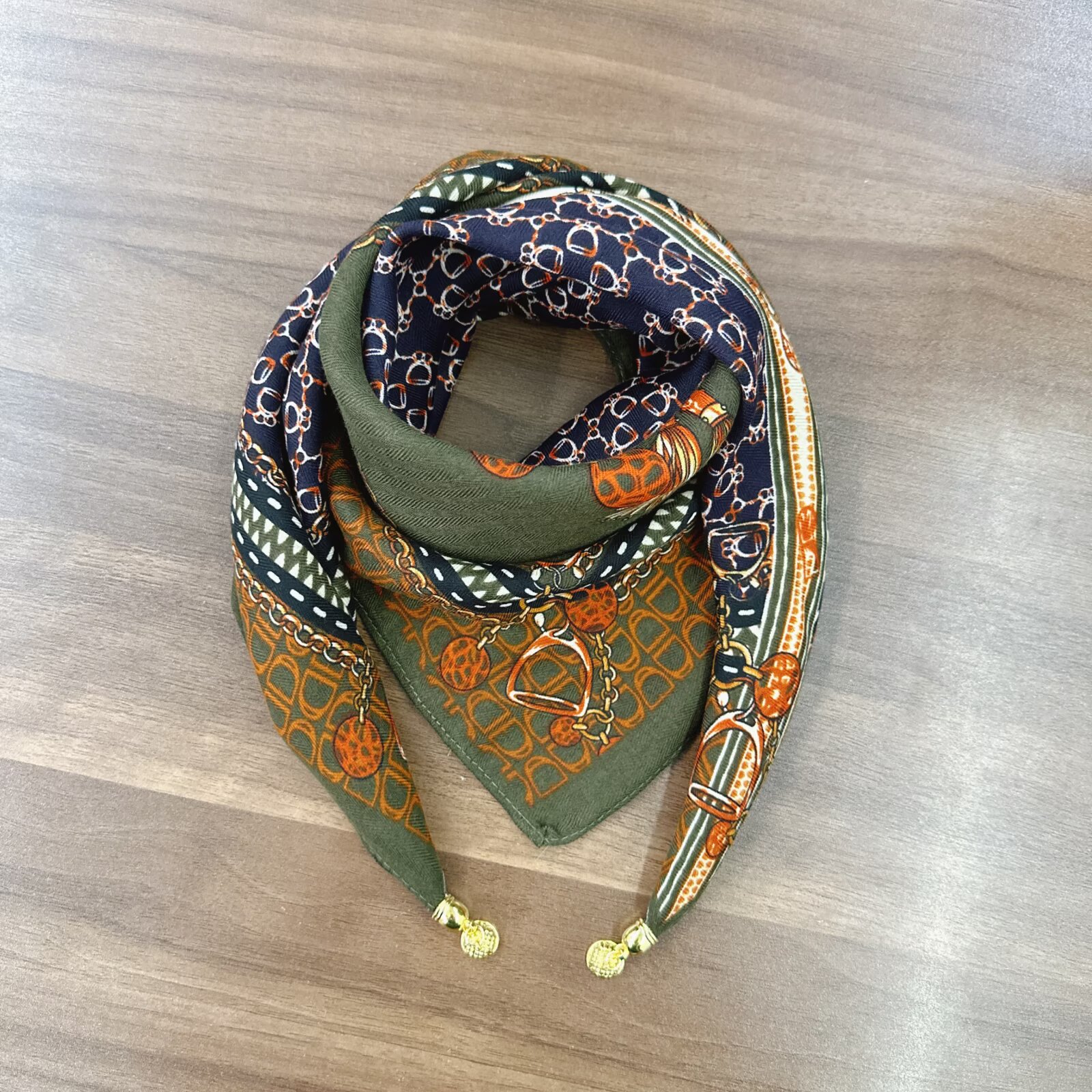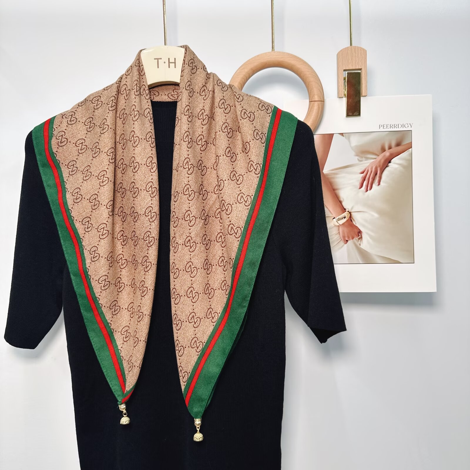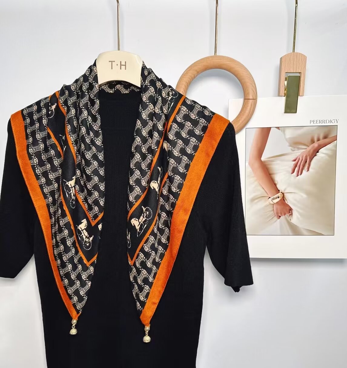 새로운 하이 엔드 헤링본 인쇄 마그네틱 버클 실크 스카프 기질 봄과 여름 외국 스타일 올 매치 여성의 작은 스퀘어 스카프
