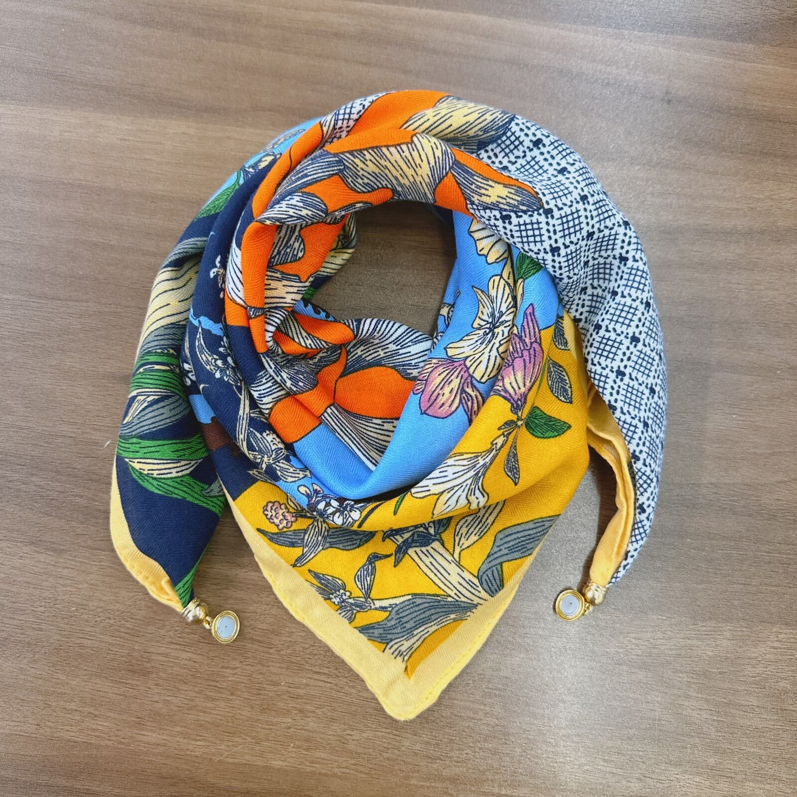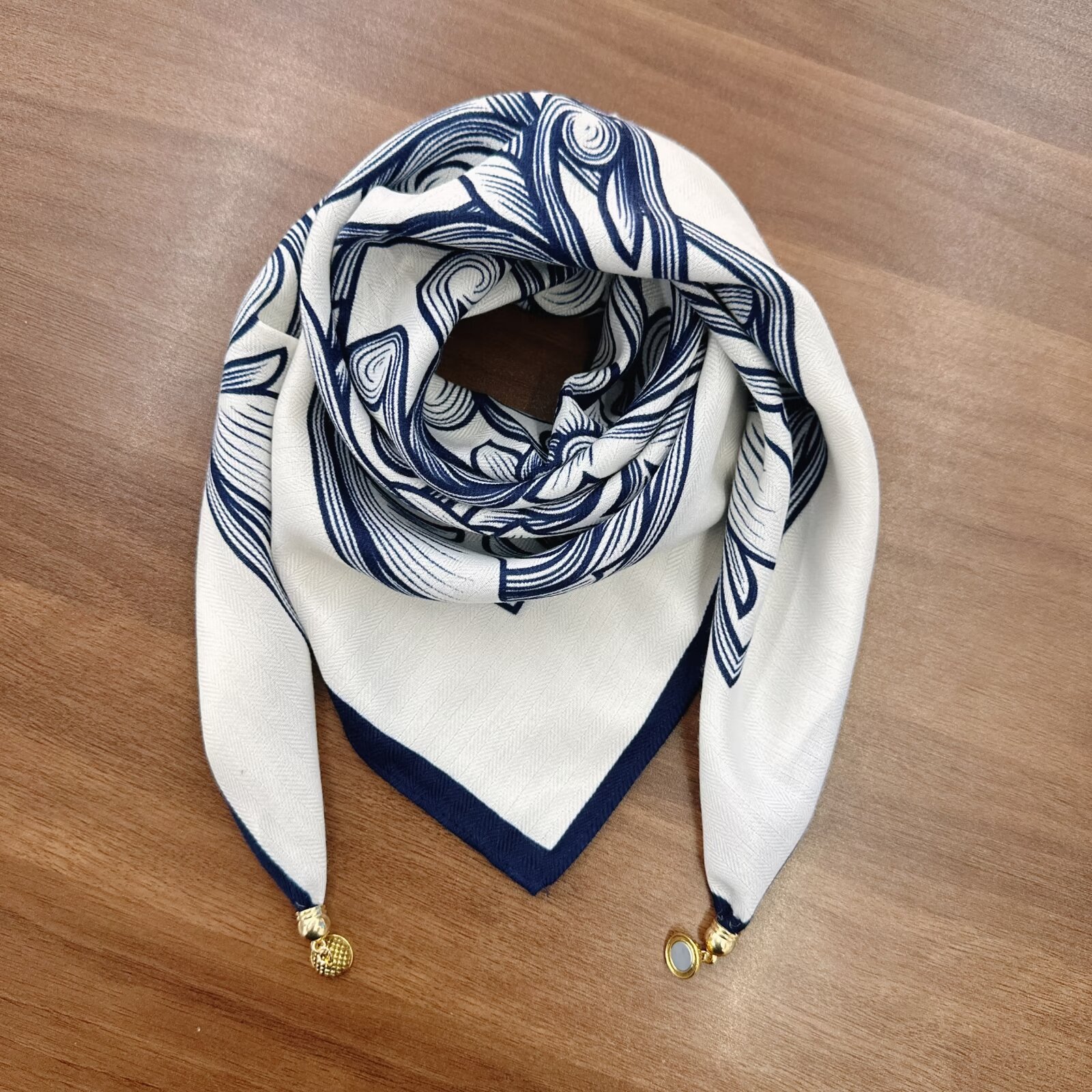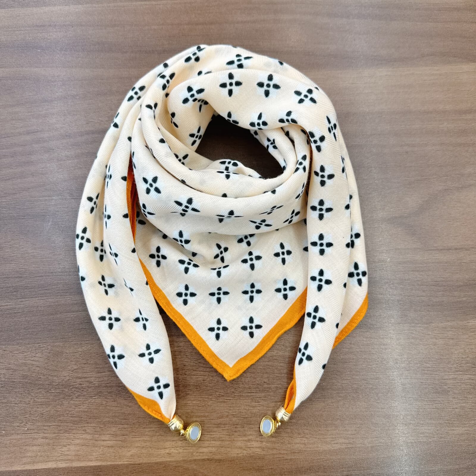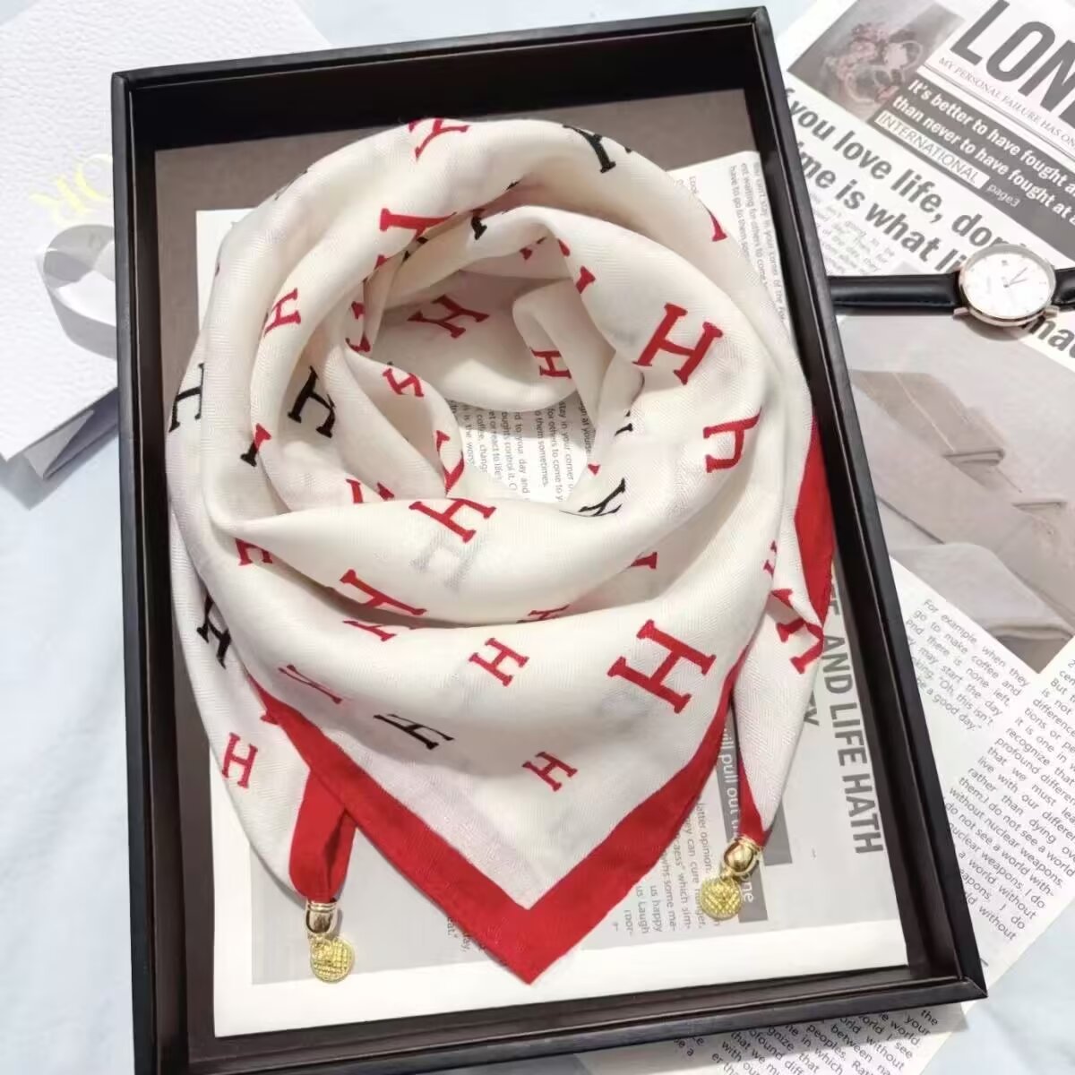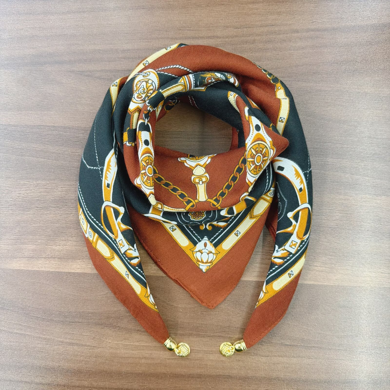 새로운 하이 엔드 헤링본 인쇄 마그네틱 버클 실크 스카프 기질 봄과 여름 외국 스타일 올 매치 여성의 작은 스퀘어 스카프