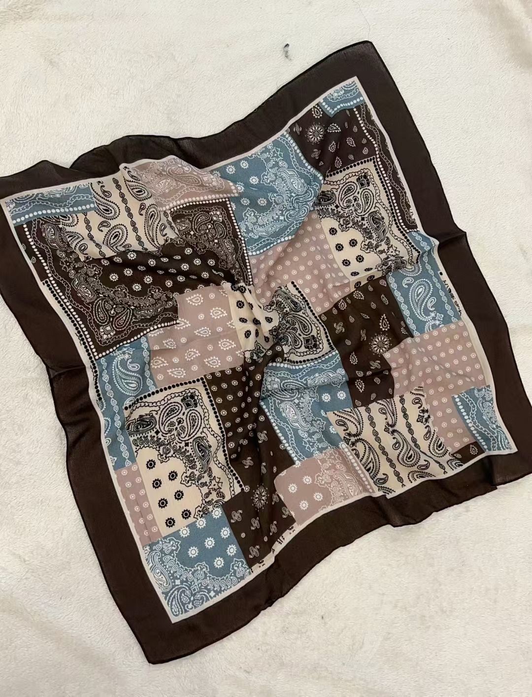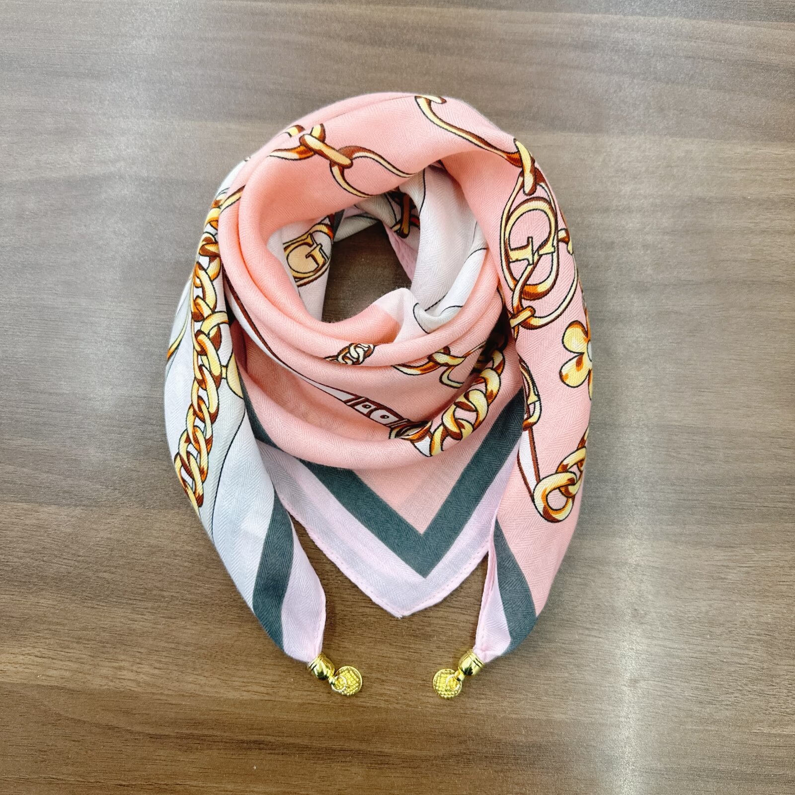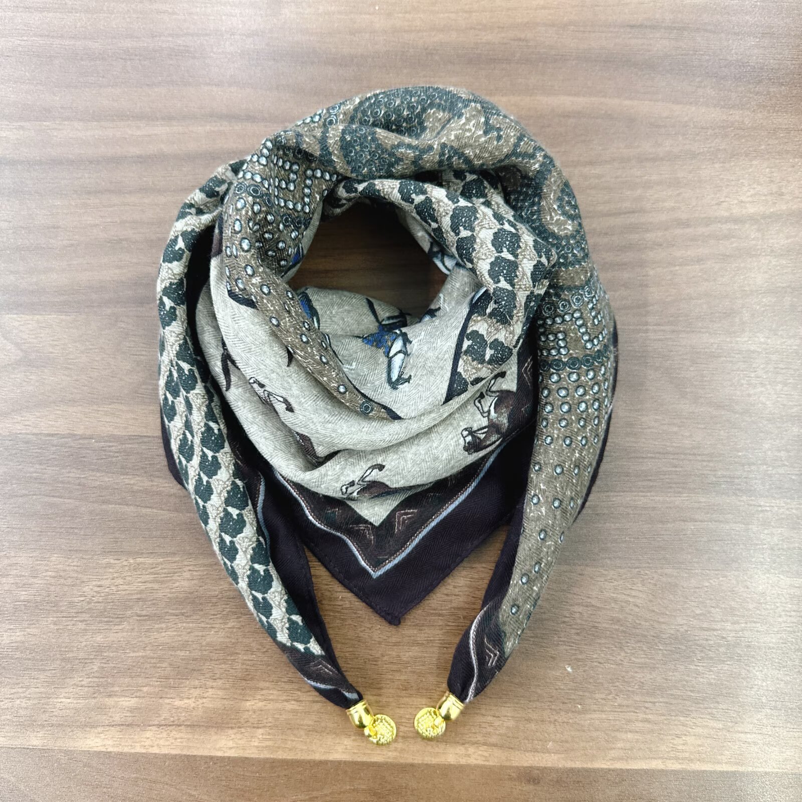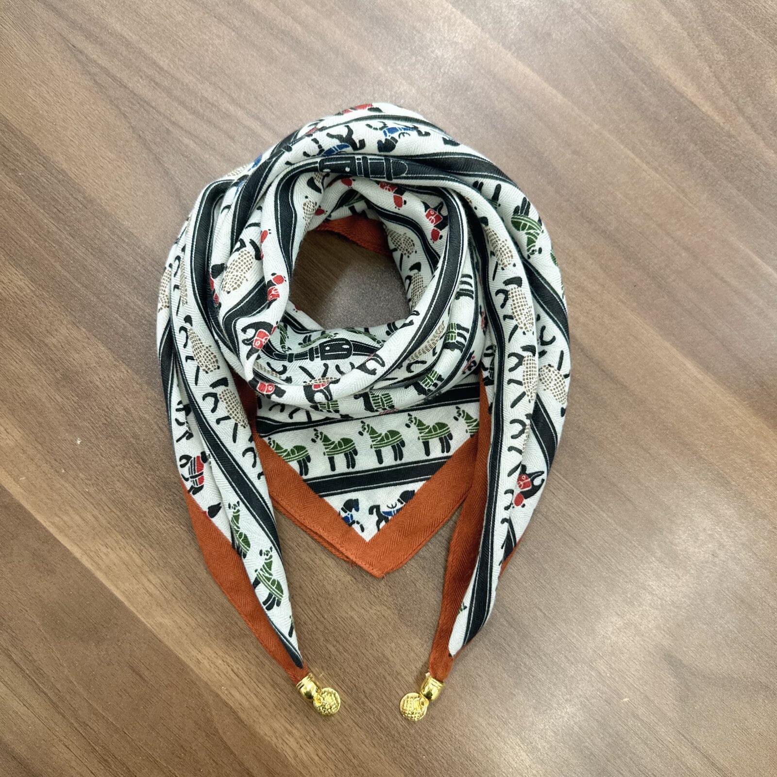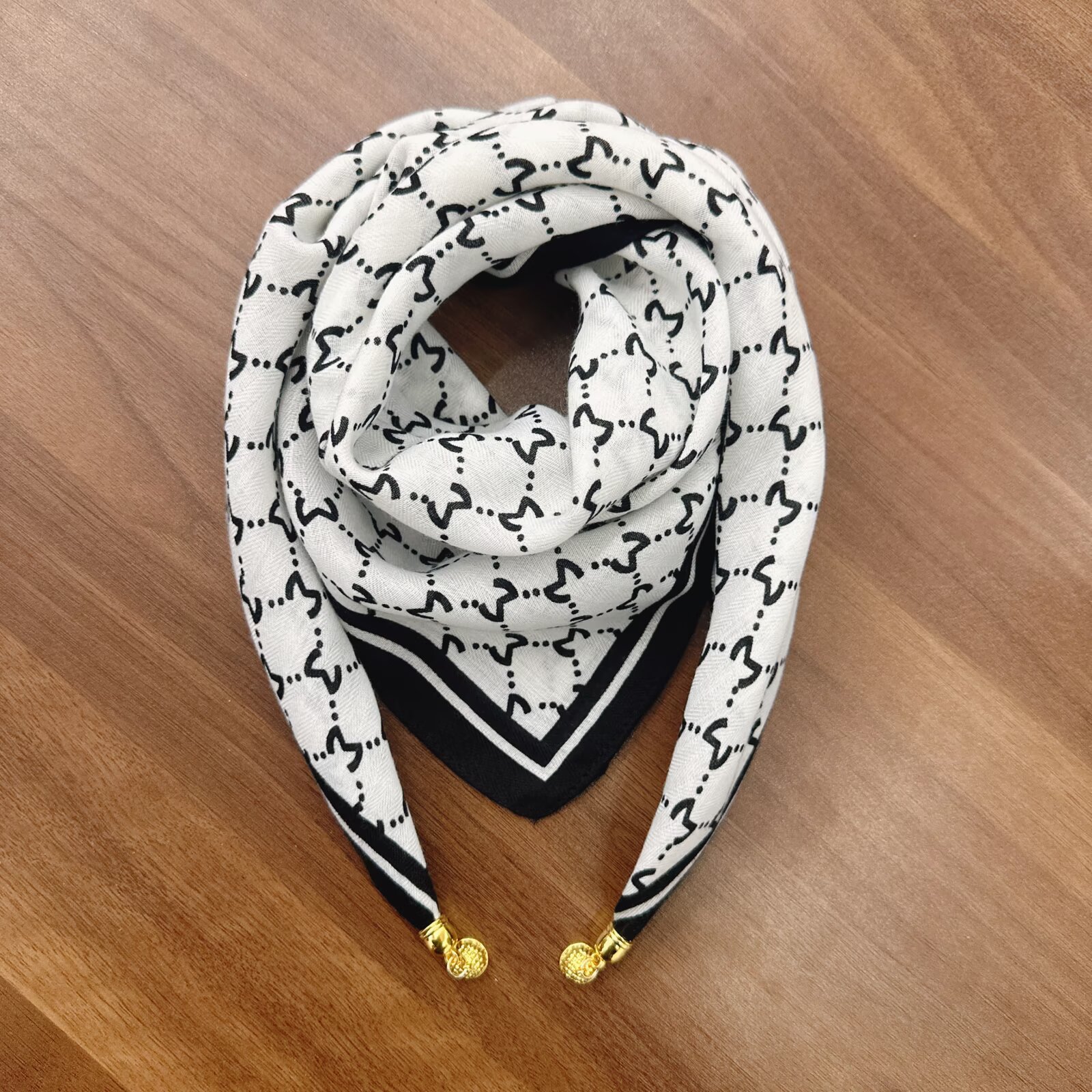 새로운 하이 엔드 헤링본 인쇄 마그네틱 버클 실크 스카프 기질 봄과 여름 외국 스타일 올 매치 여성의 작은 스퀘어 스카프