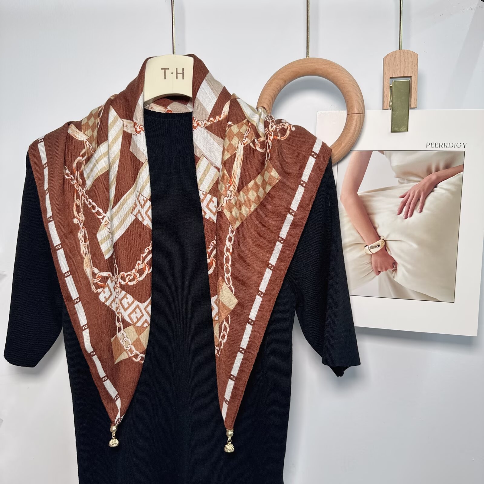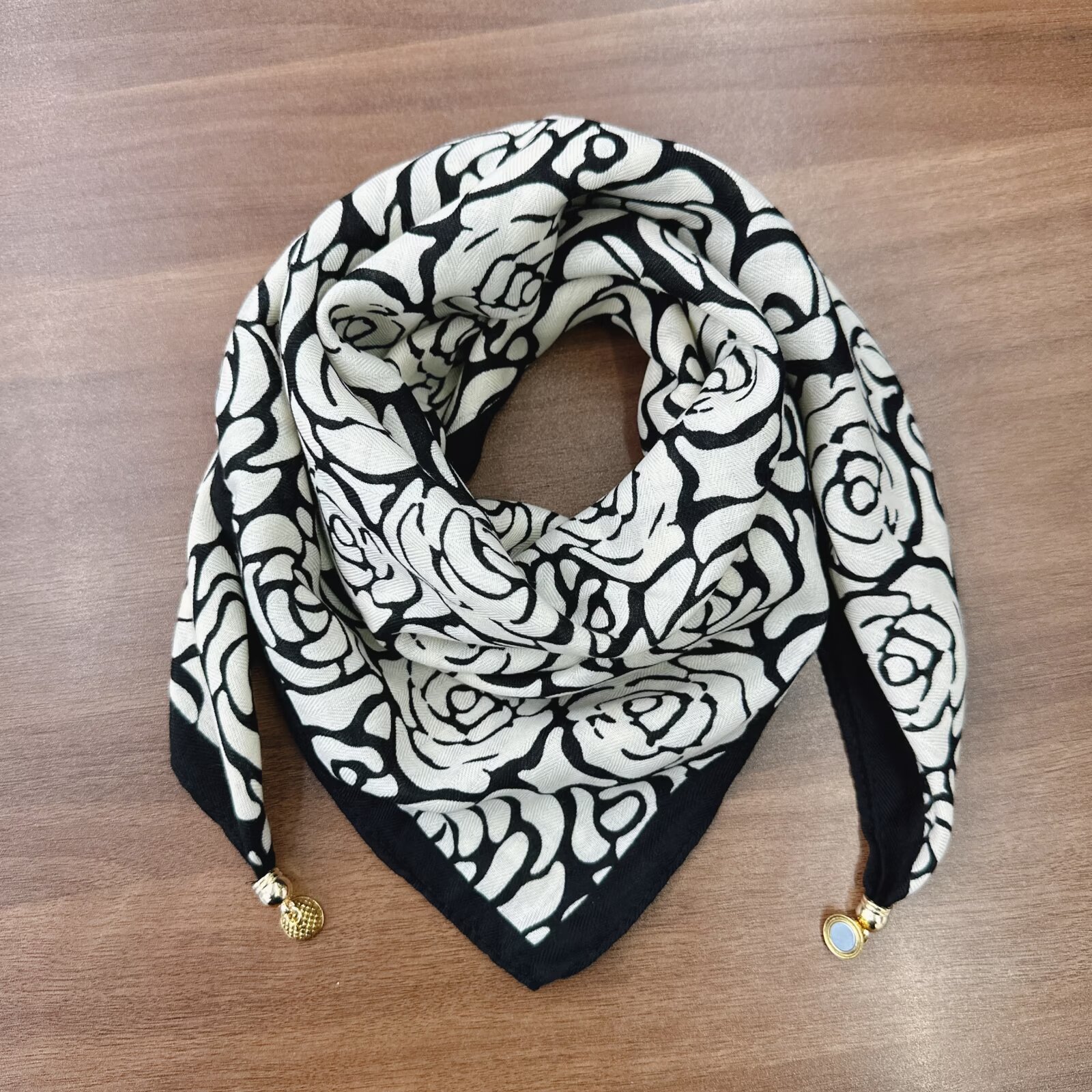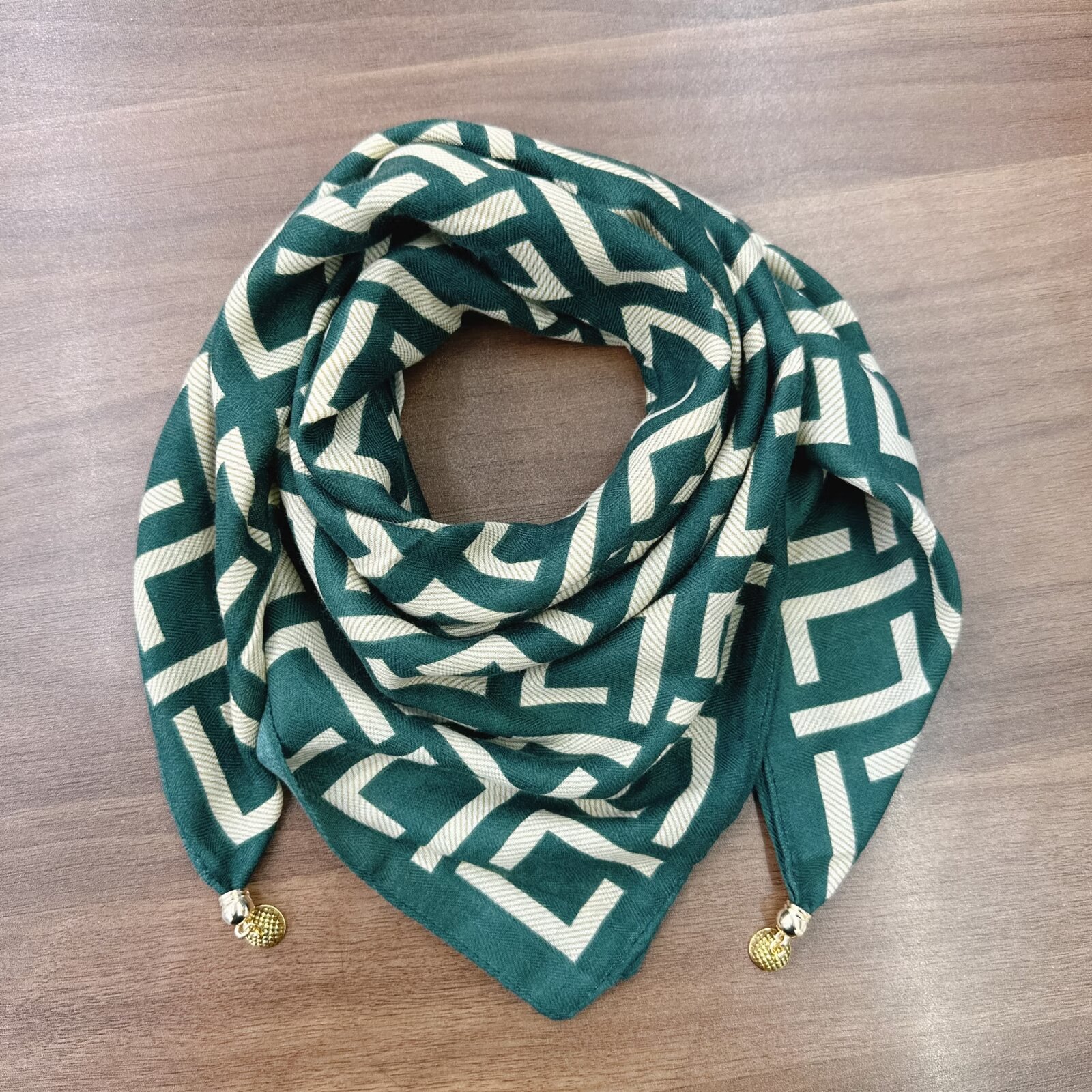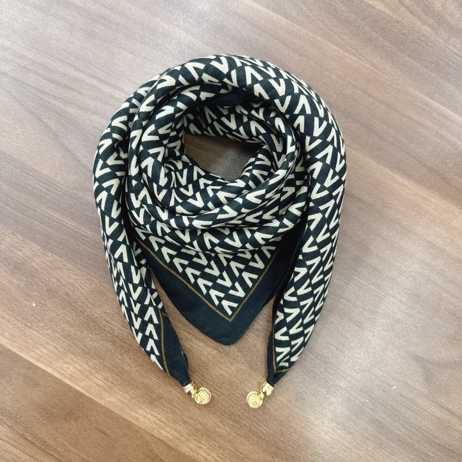 새로운 하이 엔드 헤링본 인쇄 마그네틱 버클 실크 스카프 기질 봄과 여름 외국 스타일 올 매치 여성의 작은 스퀘어 스카프