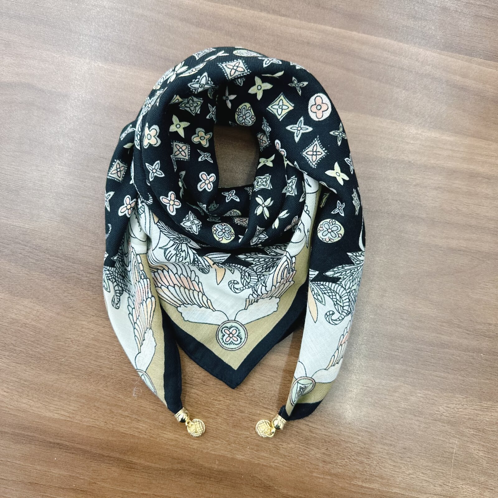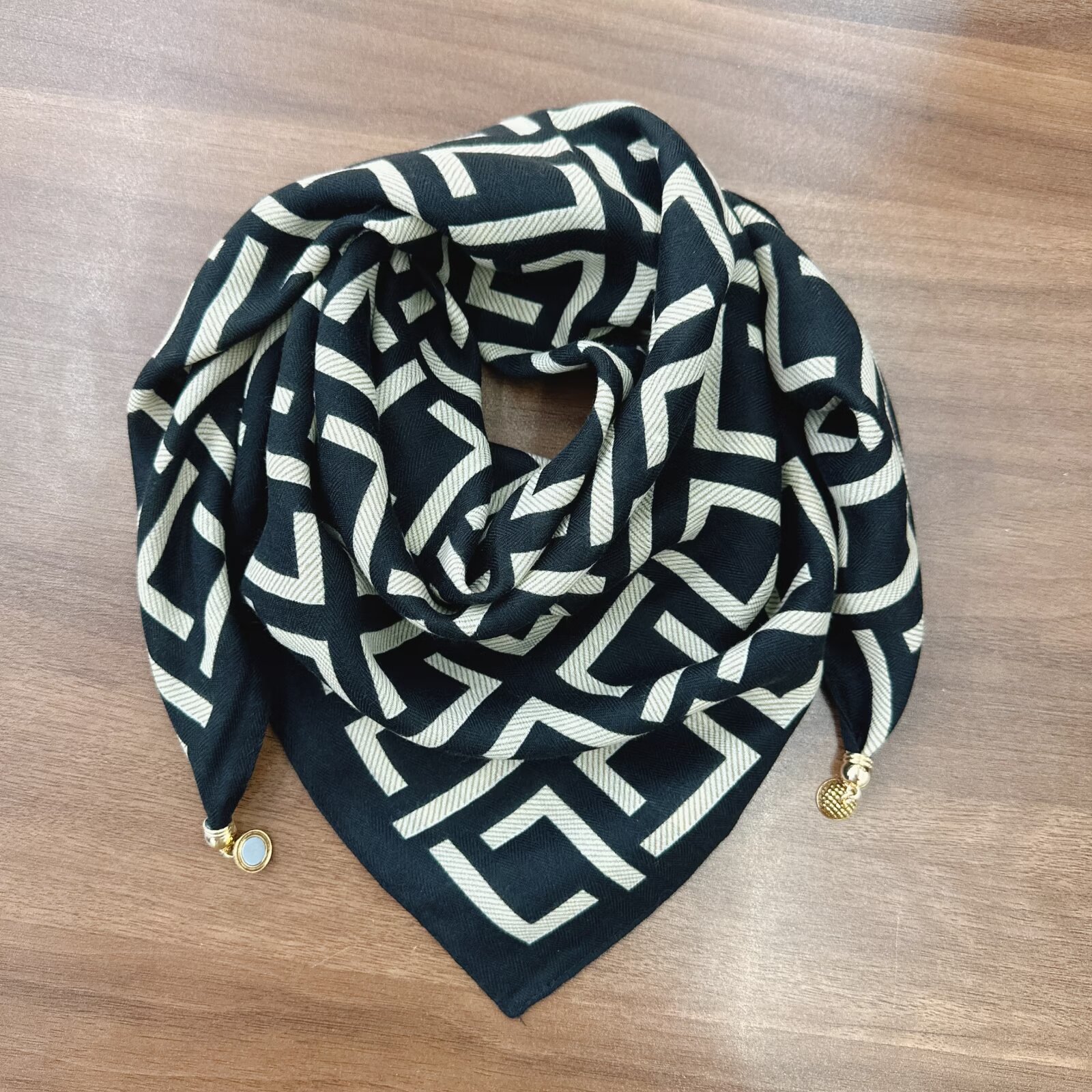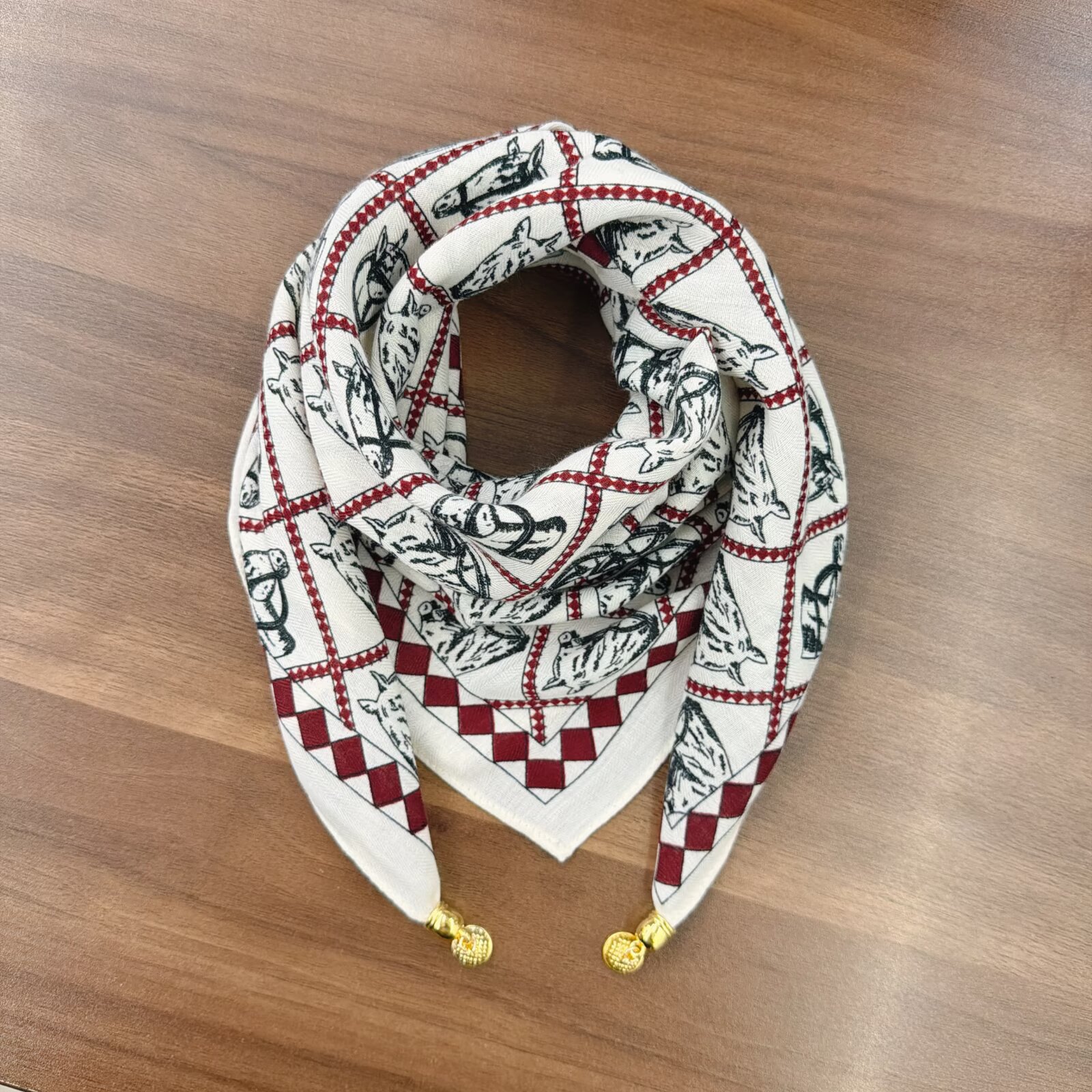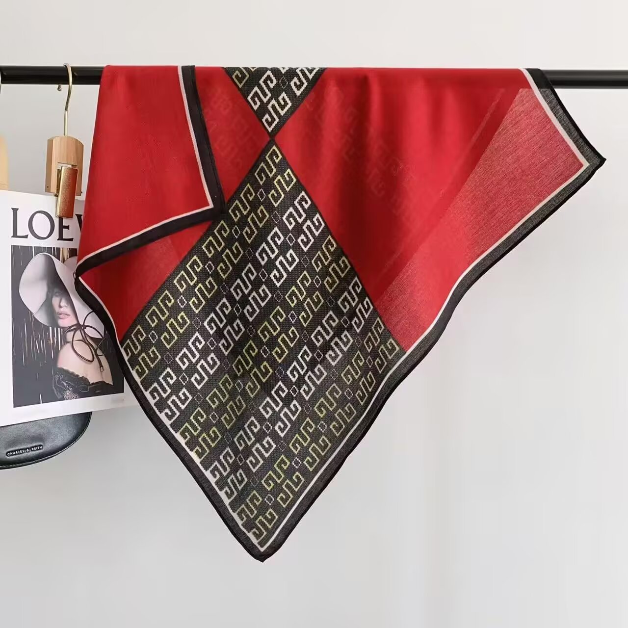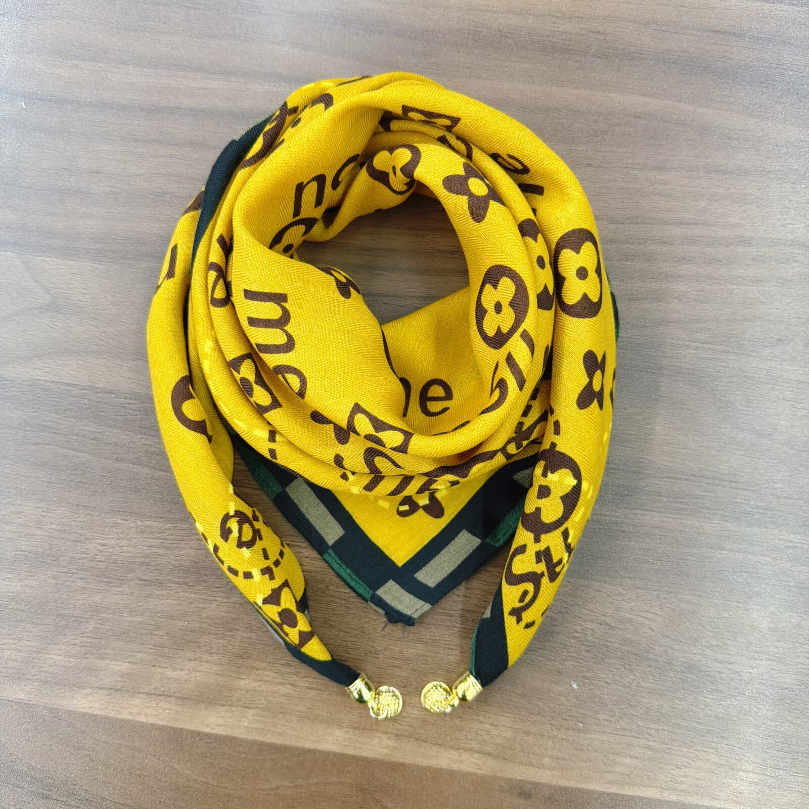 새로운 하이 엔드 헤링본 인쇄 마그네틱 버클 실크 스카프 기질 봄과 여름 외국 스타일 올 매치 여성의 작은 스퀘어 스카프