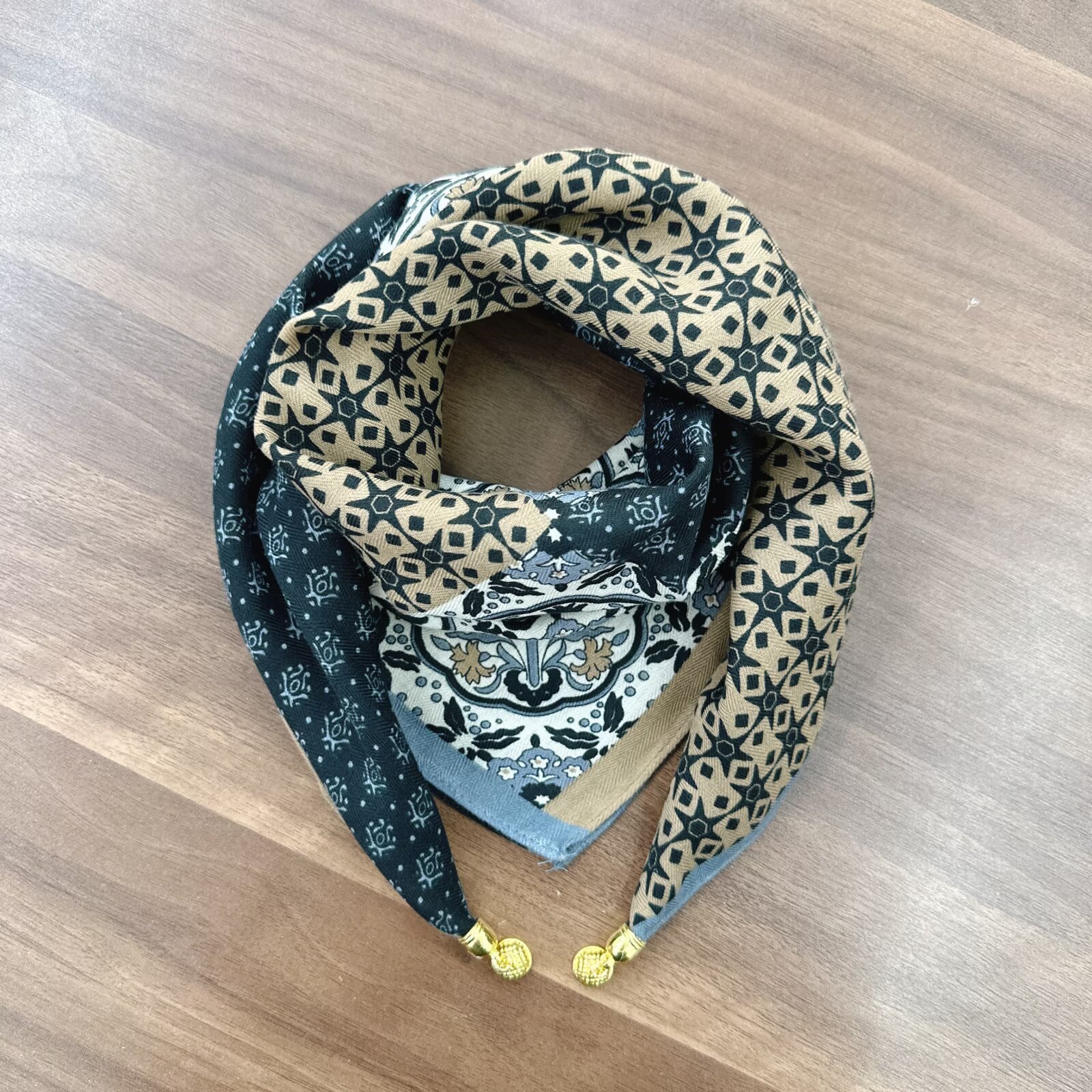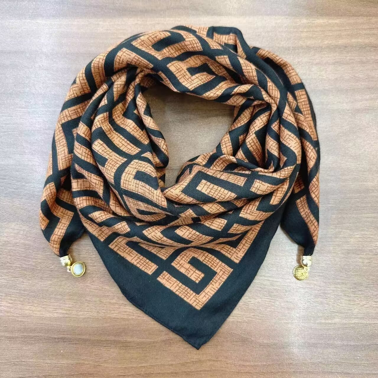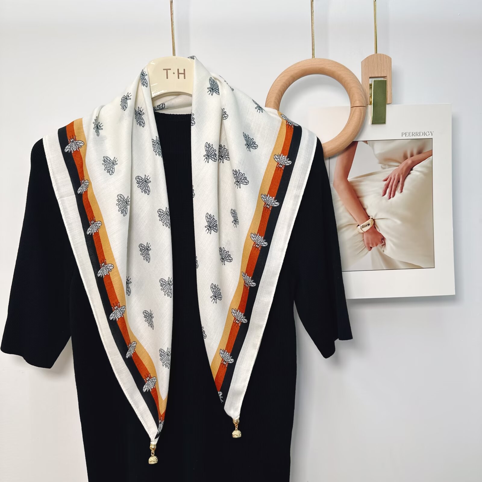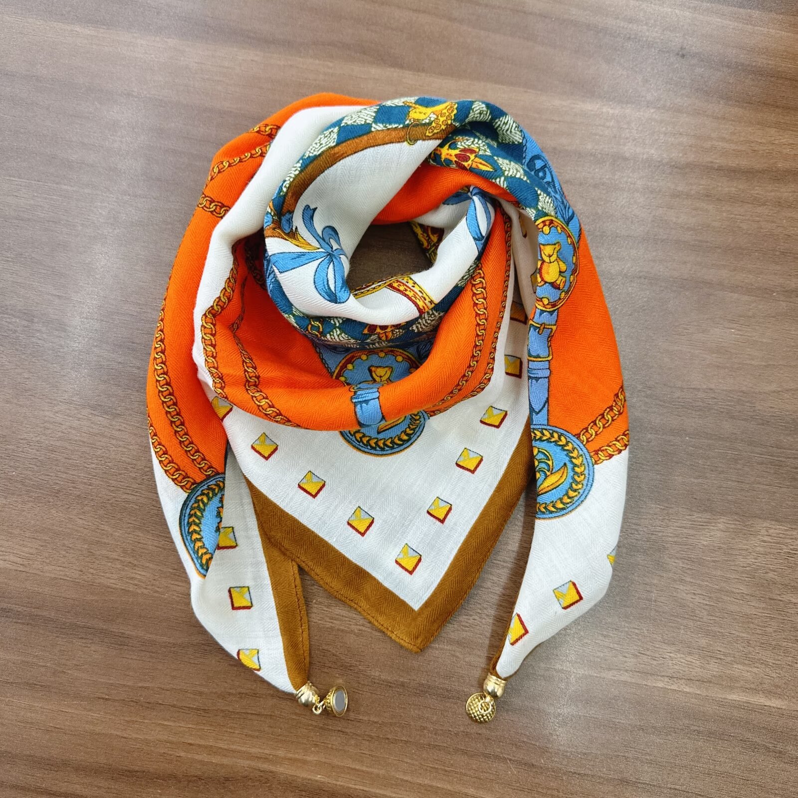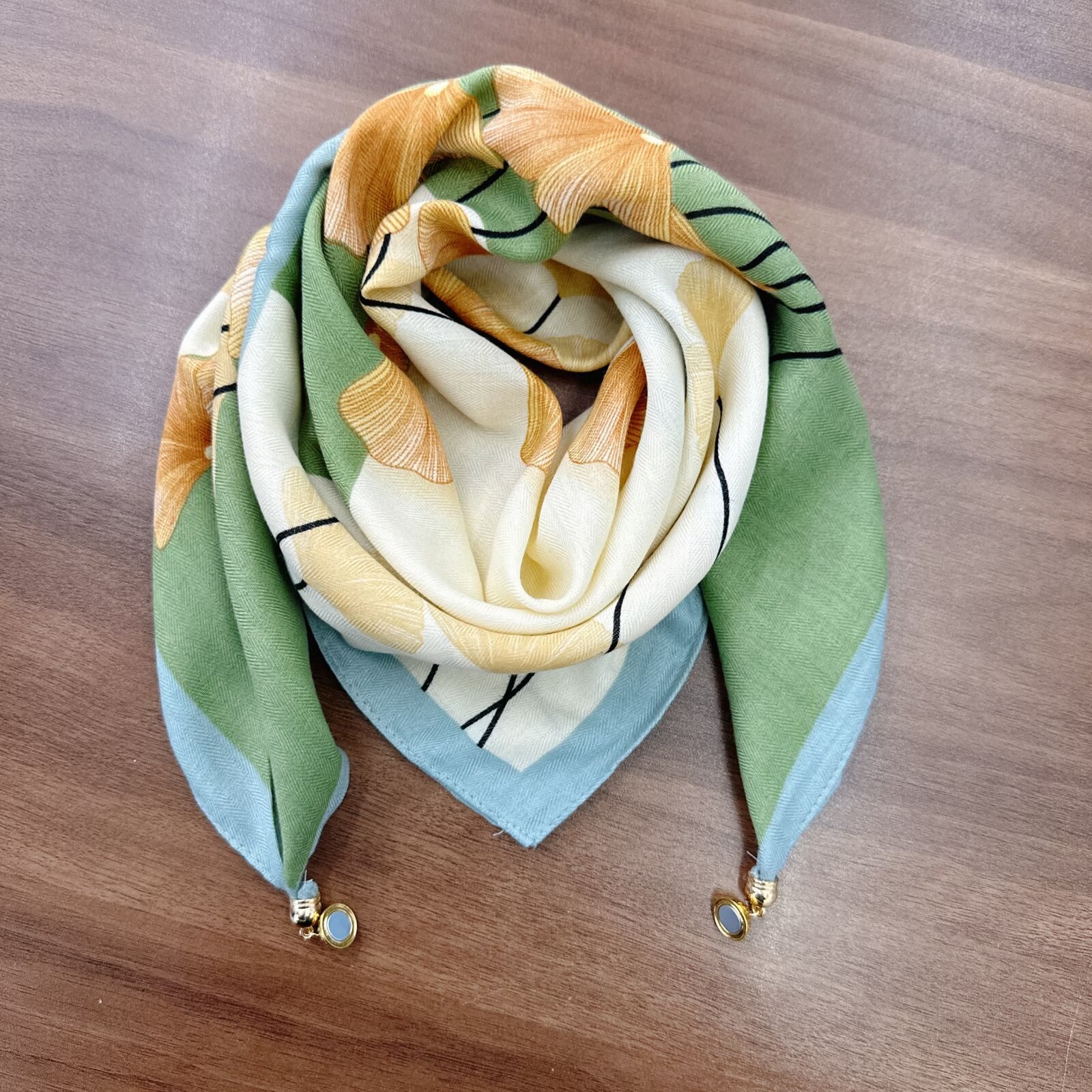 새로운 하이 엔드 헤링본 인쇄 마그네틱 버클 실크 스카프 기질 봄과 여름 외국 스타일 올 매치 여성의 작은 스퀘어 스카프