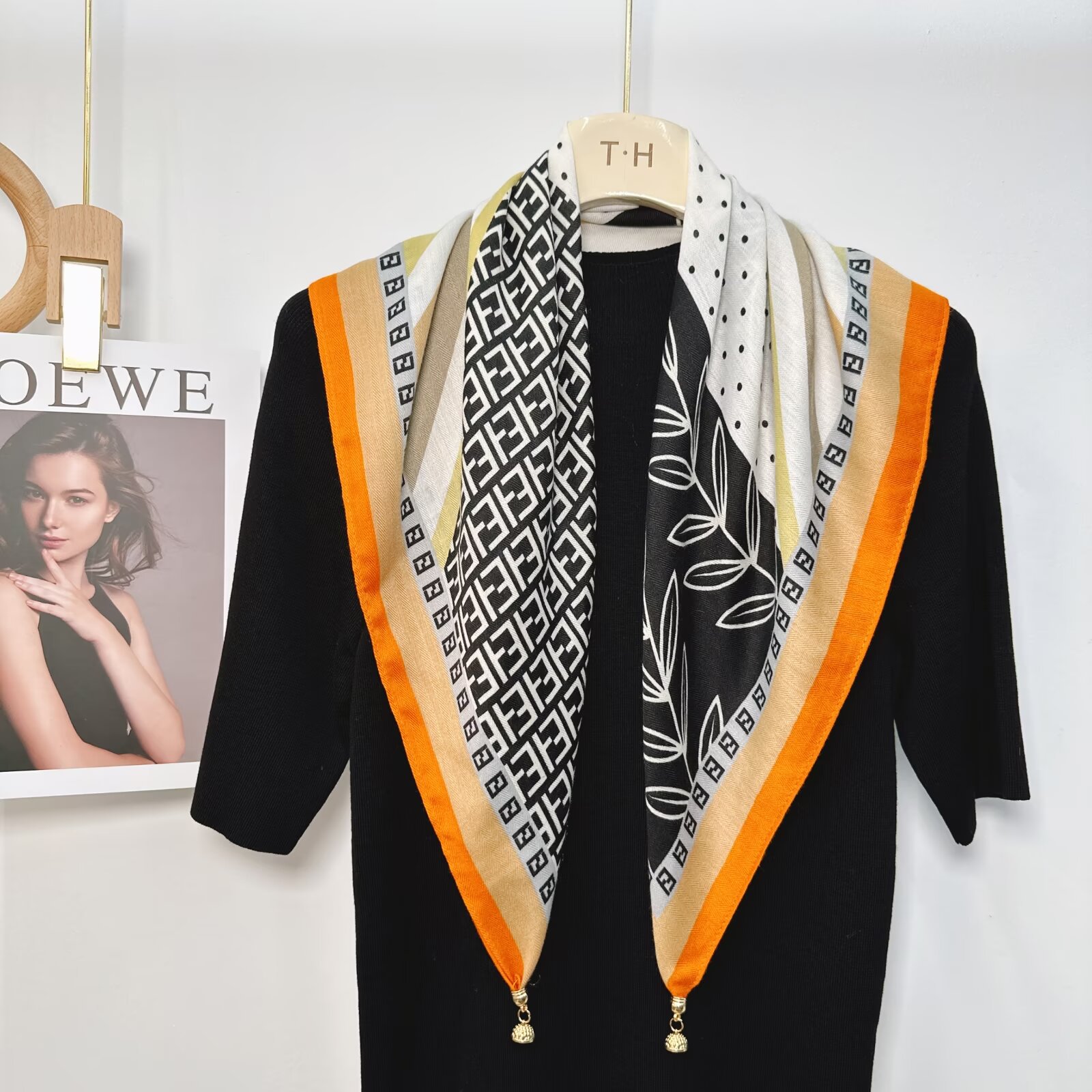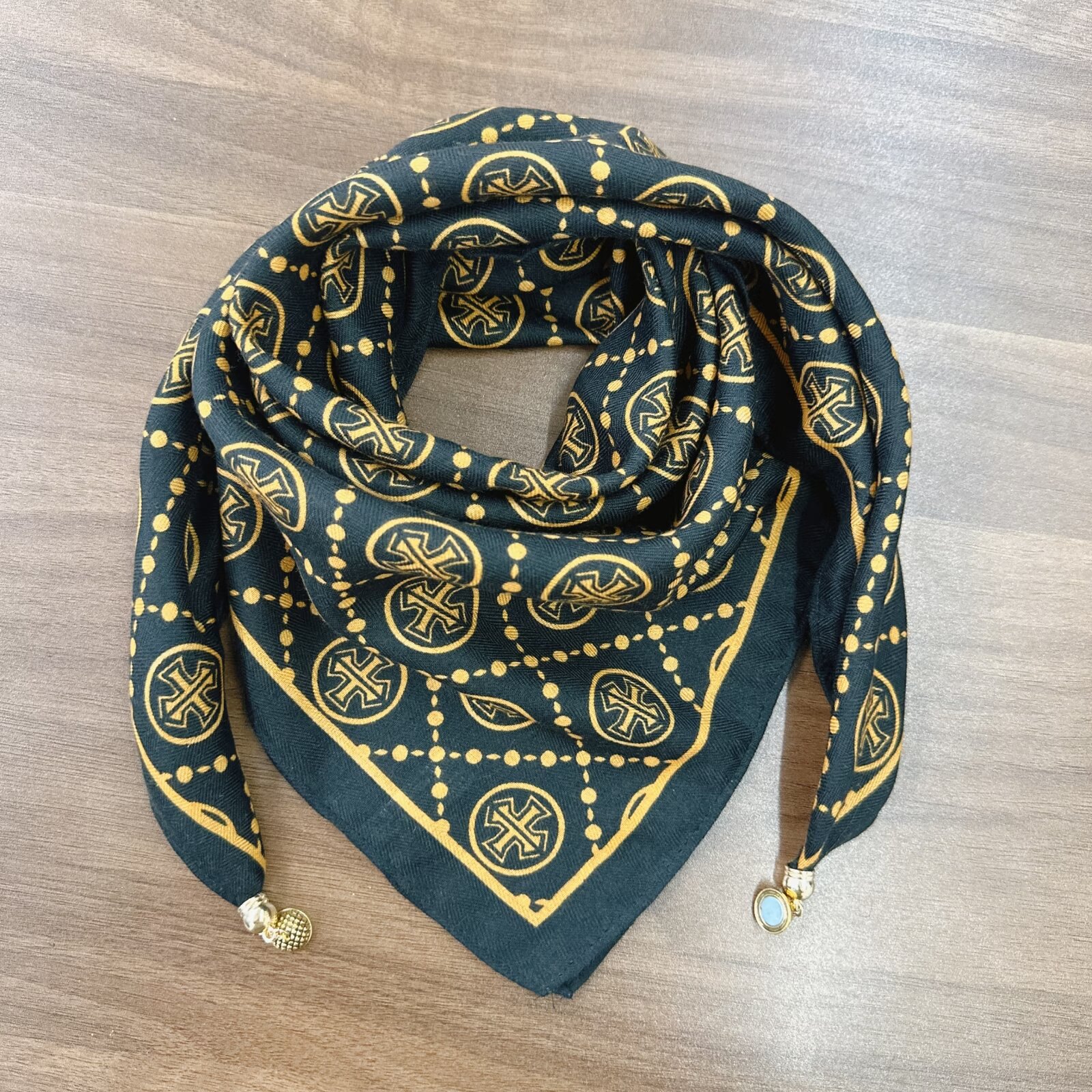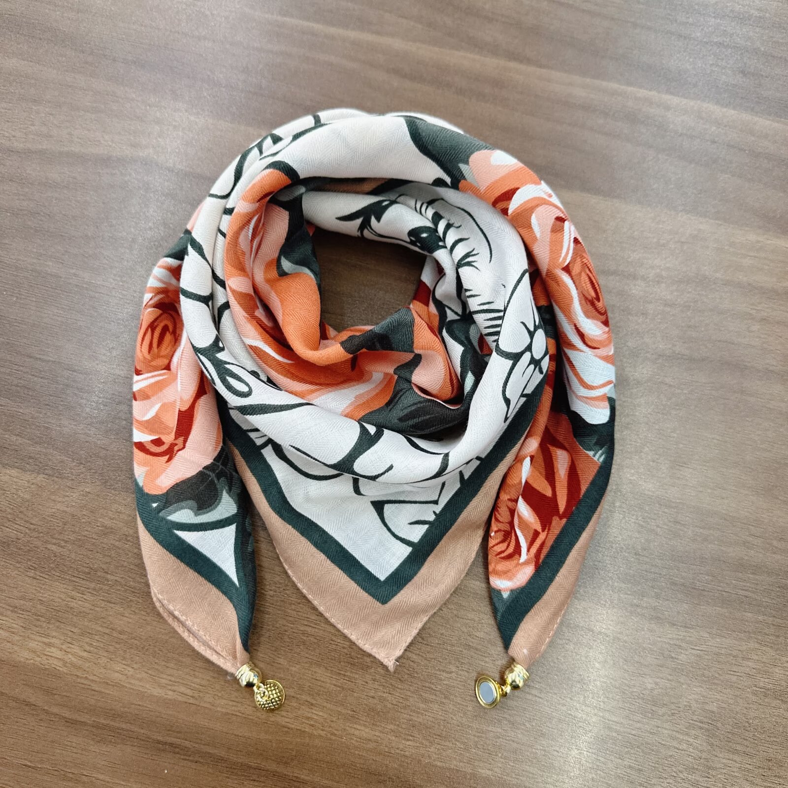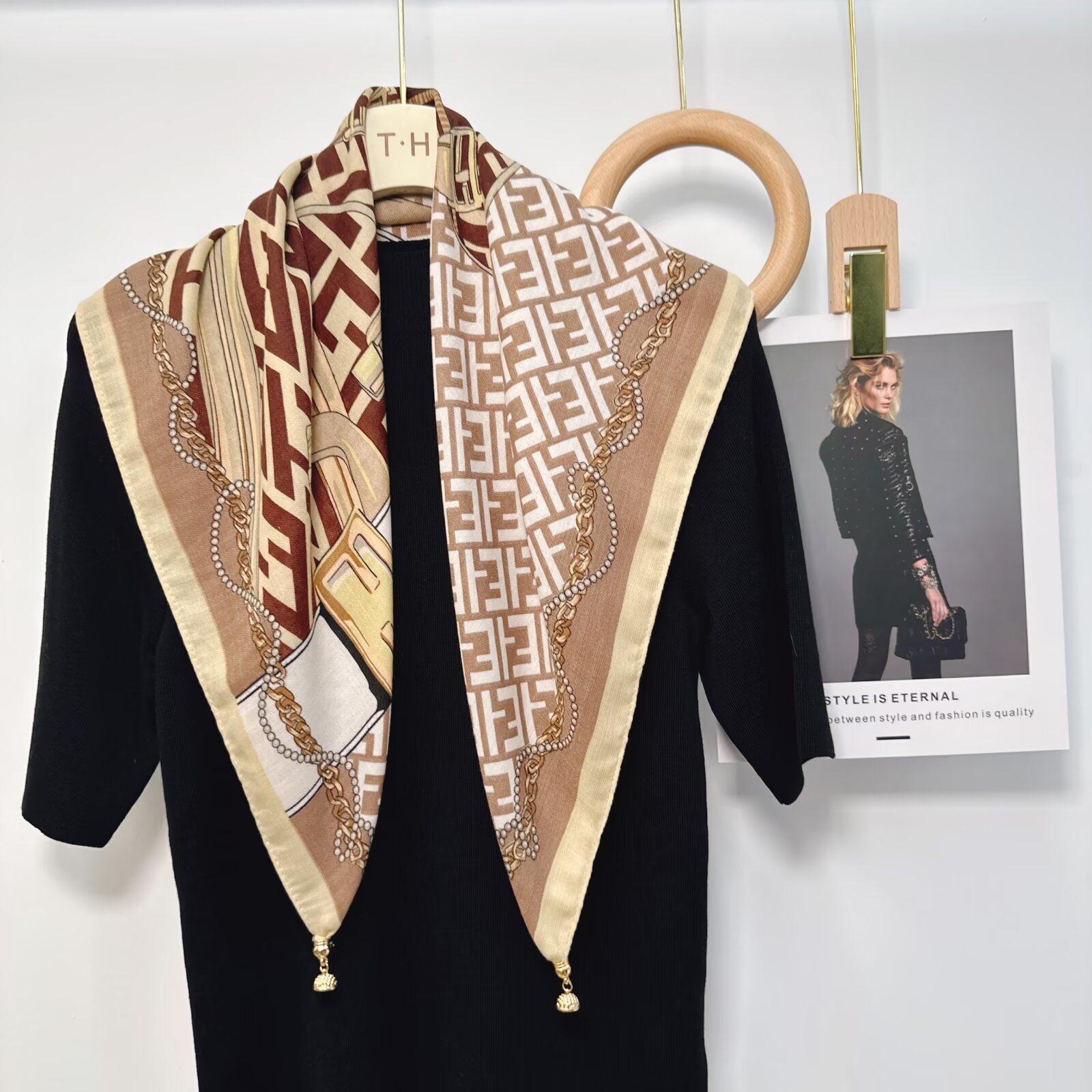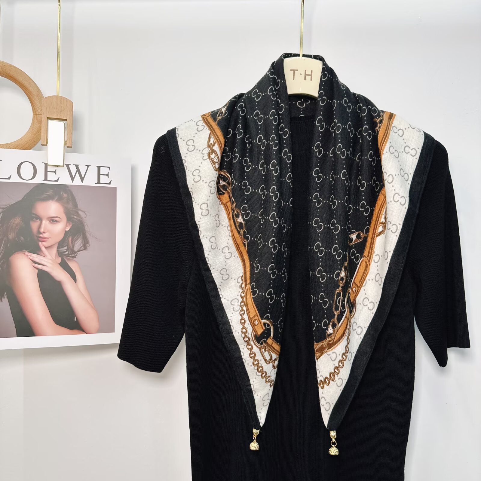 새로운 하이 엔드 헤링본 인쇄 마그네틱 버클 실크 스카프 기질 봄과 여름 외국 스타일 올 매치 여성의 작은 스퀘어 스카프