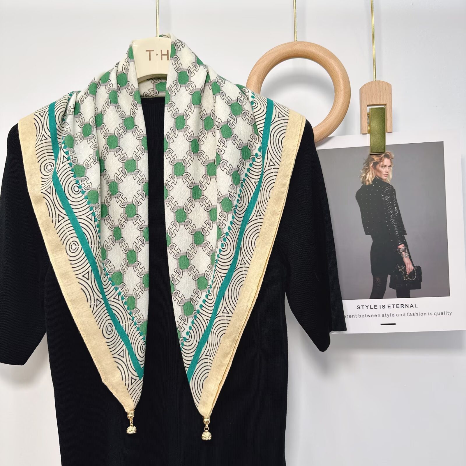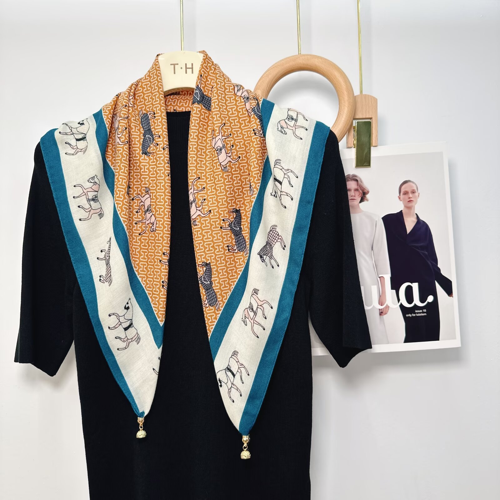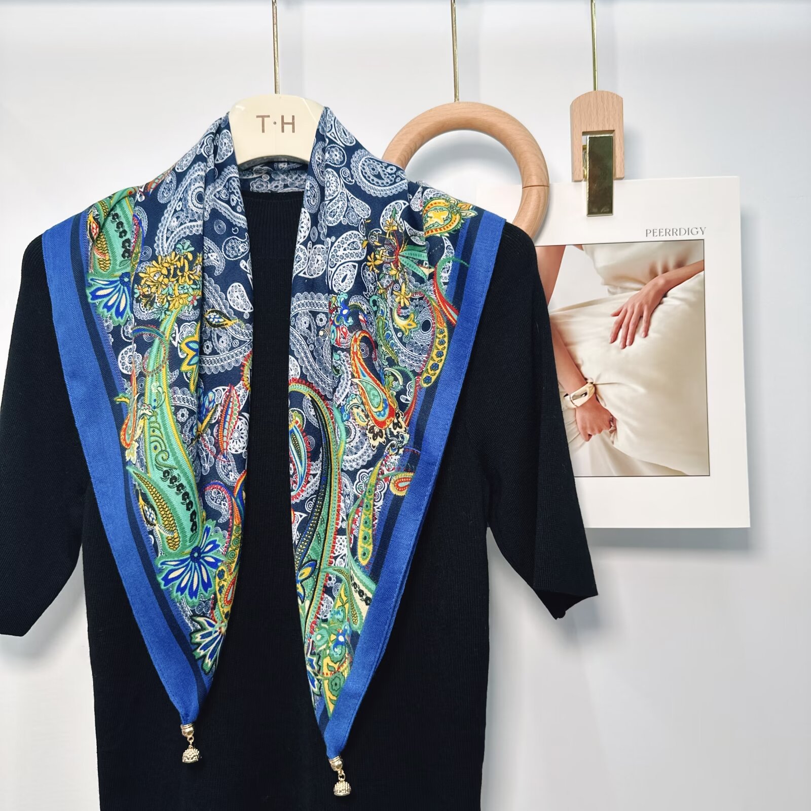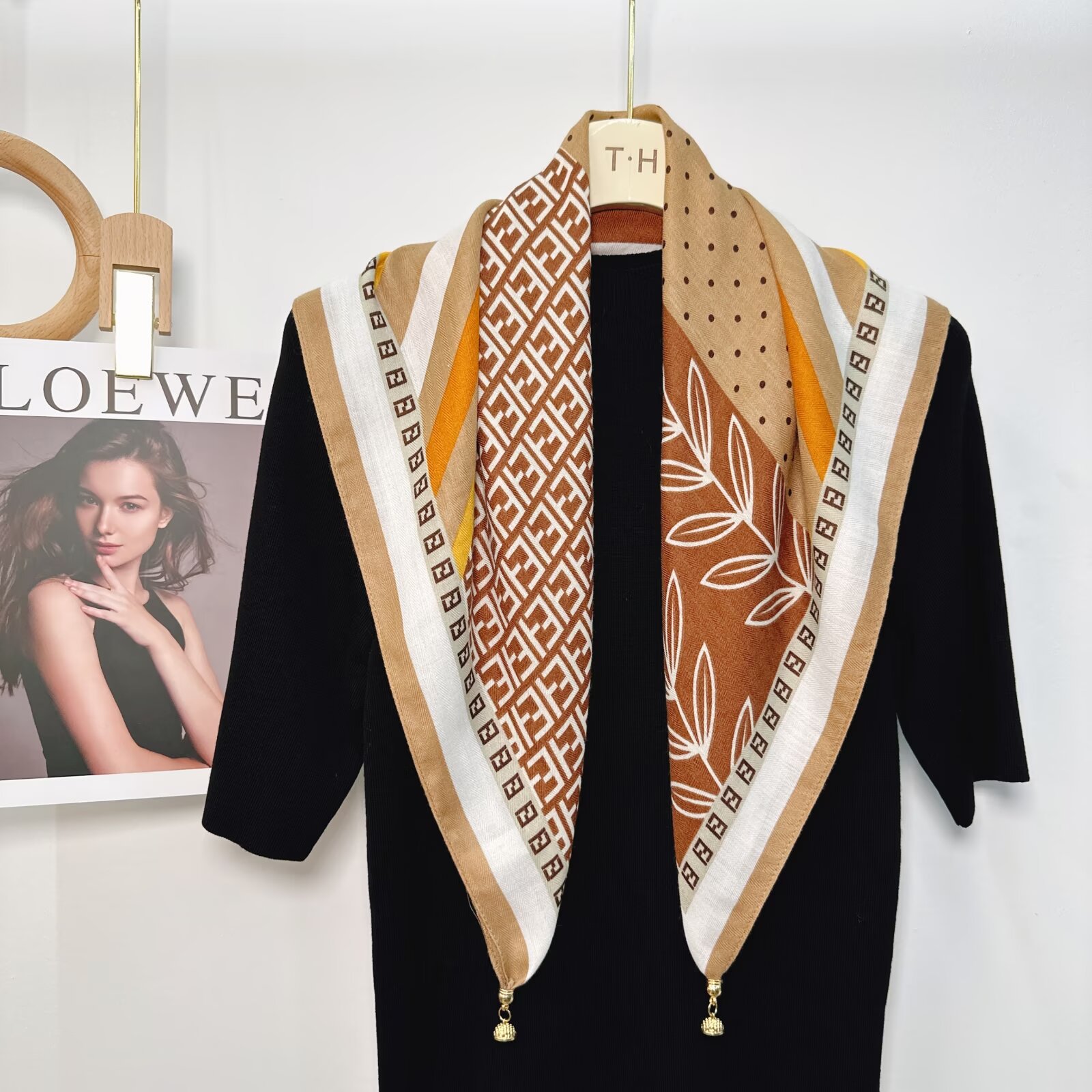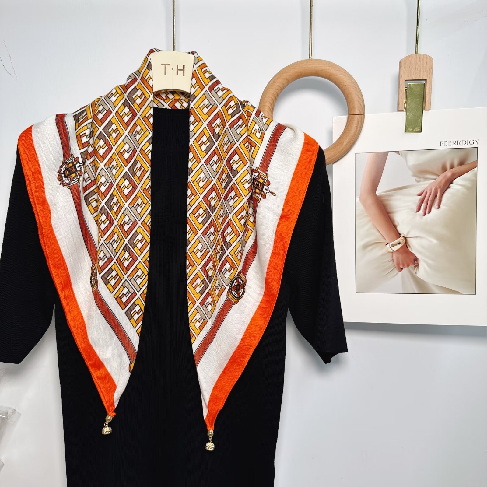 새로운 하이 엔드 헤링본 인쇄 마그네틱 버클 실크 스카프 기질 봄과 여름 외국 스타일 올 매치 여성의 작은 스퀘어 스카프