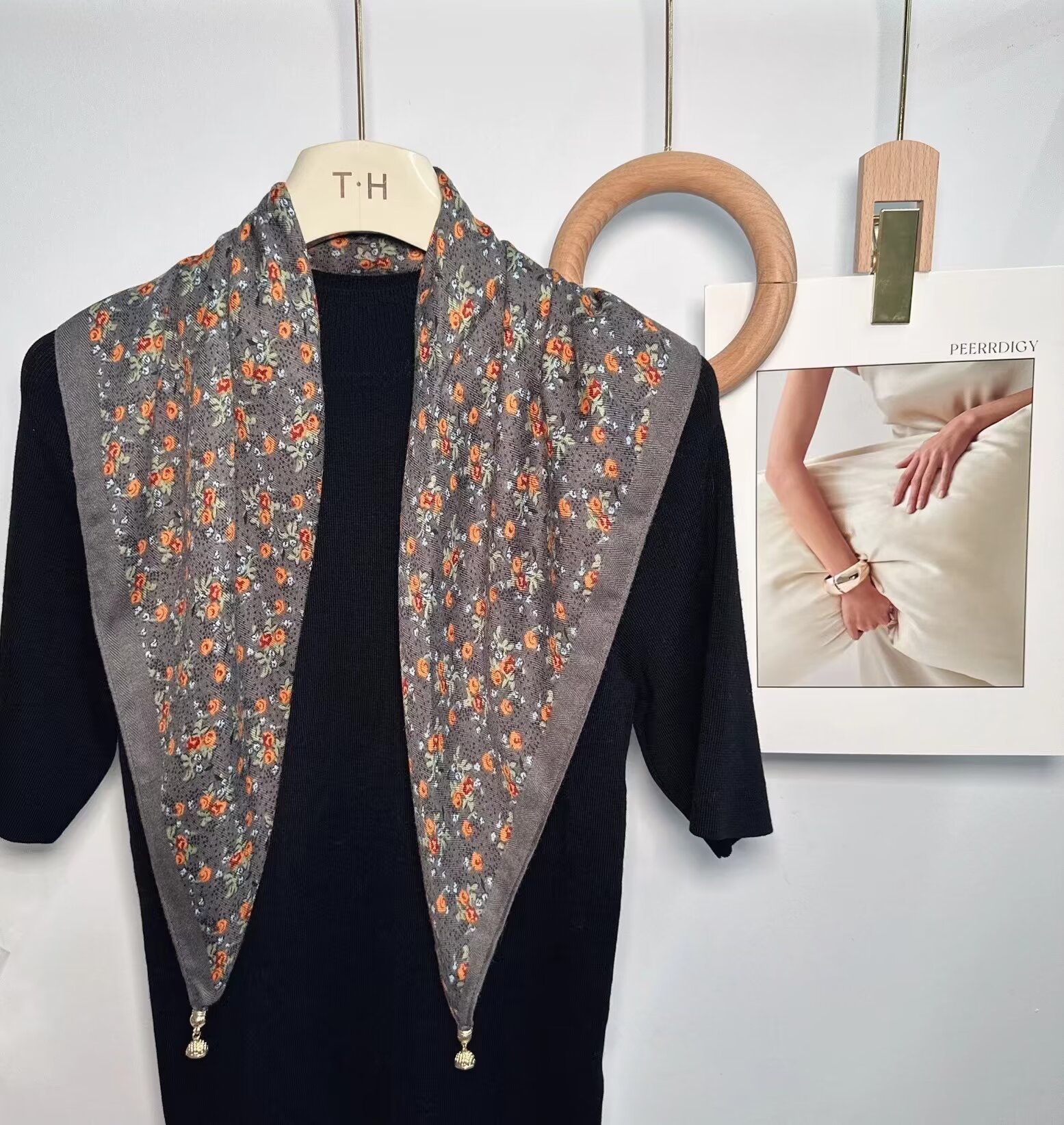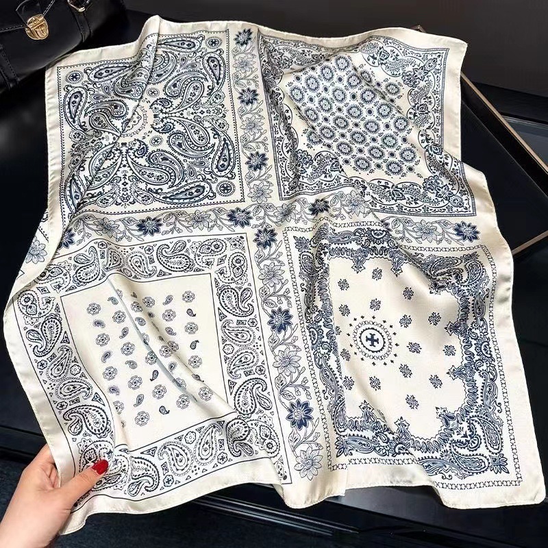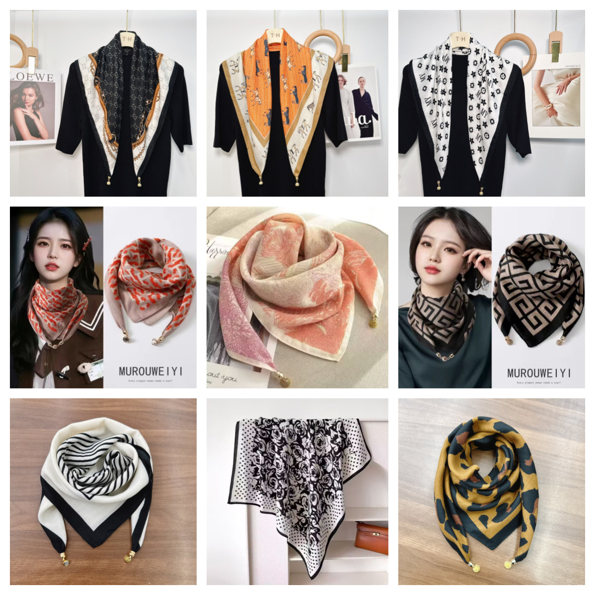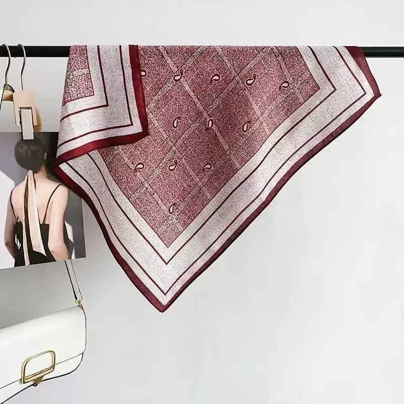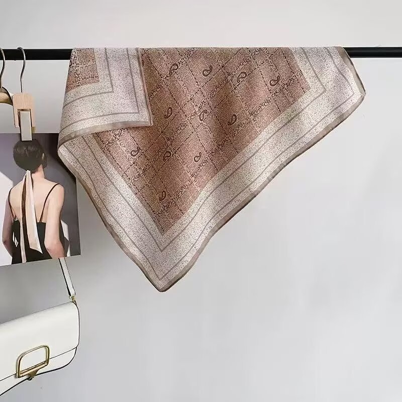 새로운 하이 엔드 헤링본 인쇄 마그네틱 버클 실크 스카프 기질 봄과 여름 외국 스타일 올 매치 여성의 작은 스퀘어 스카프스토어 가기
