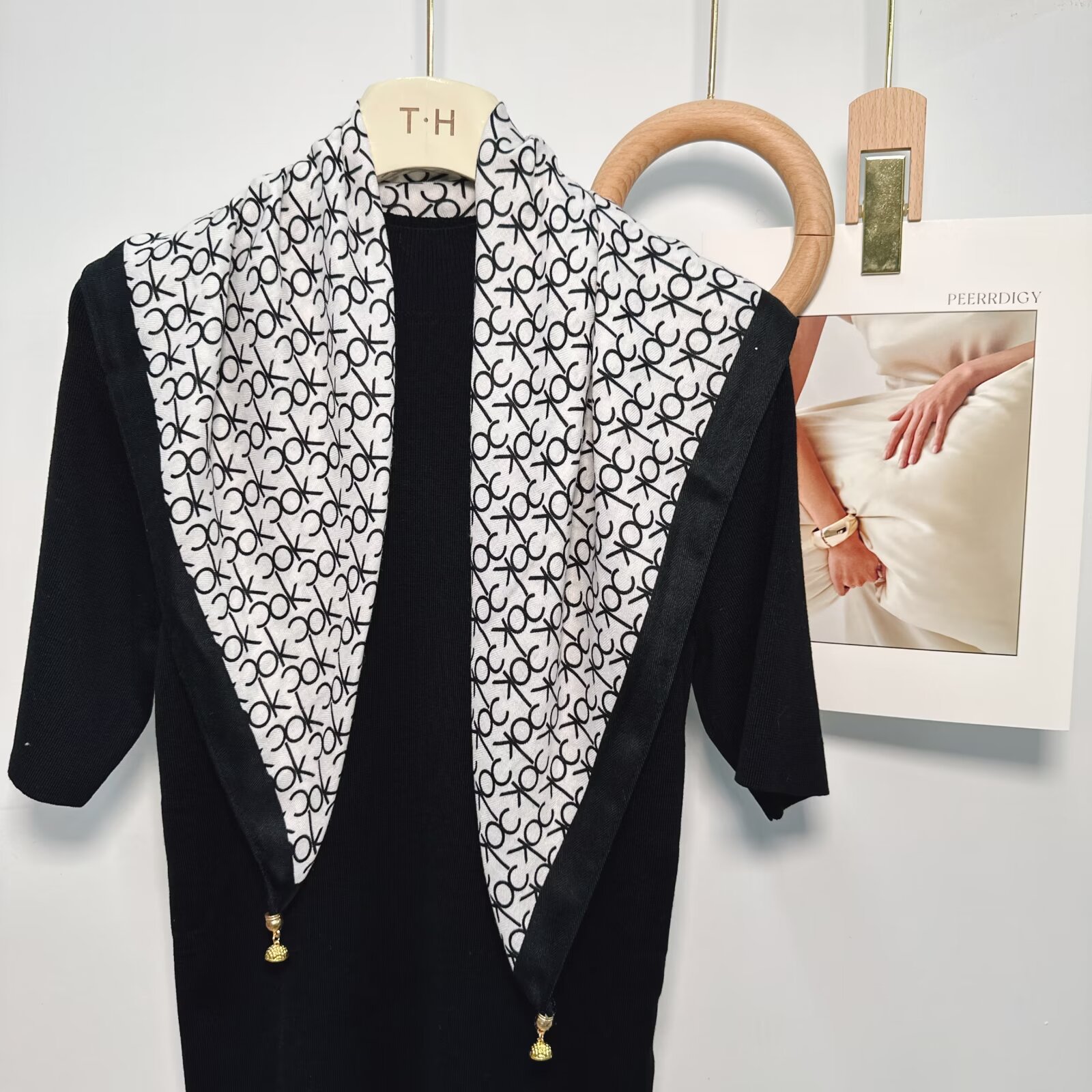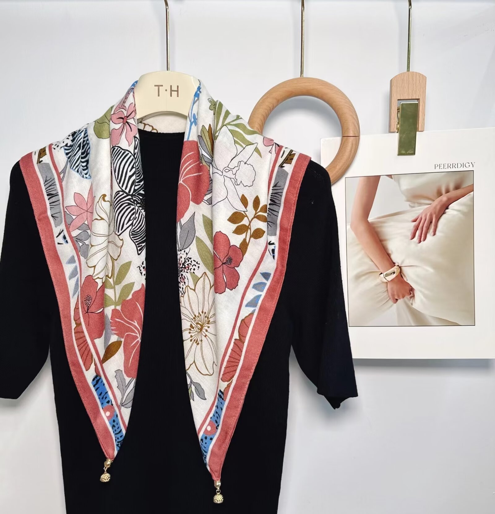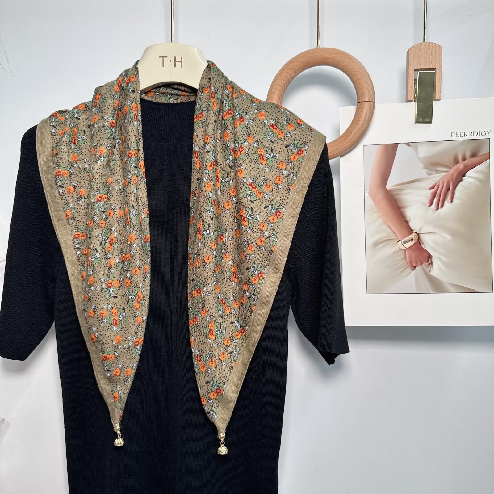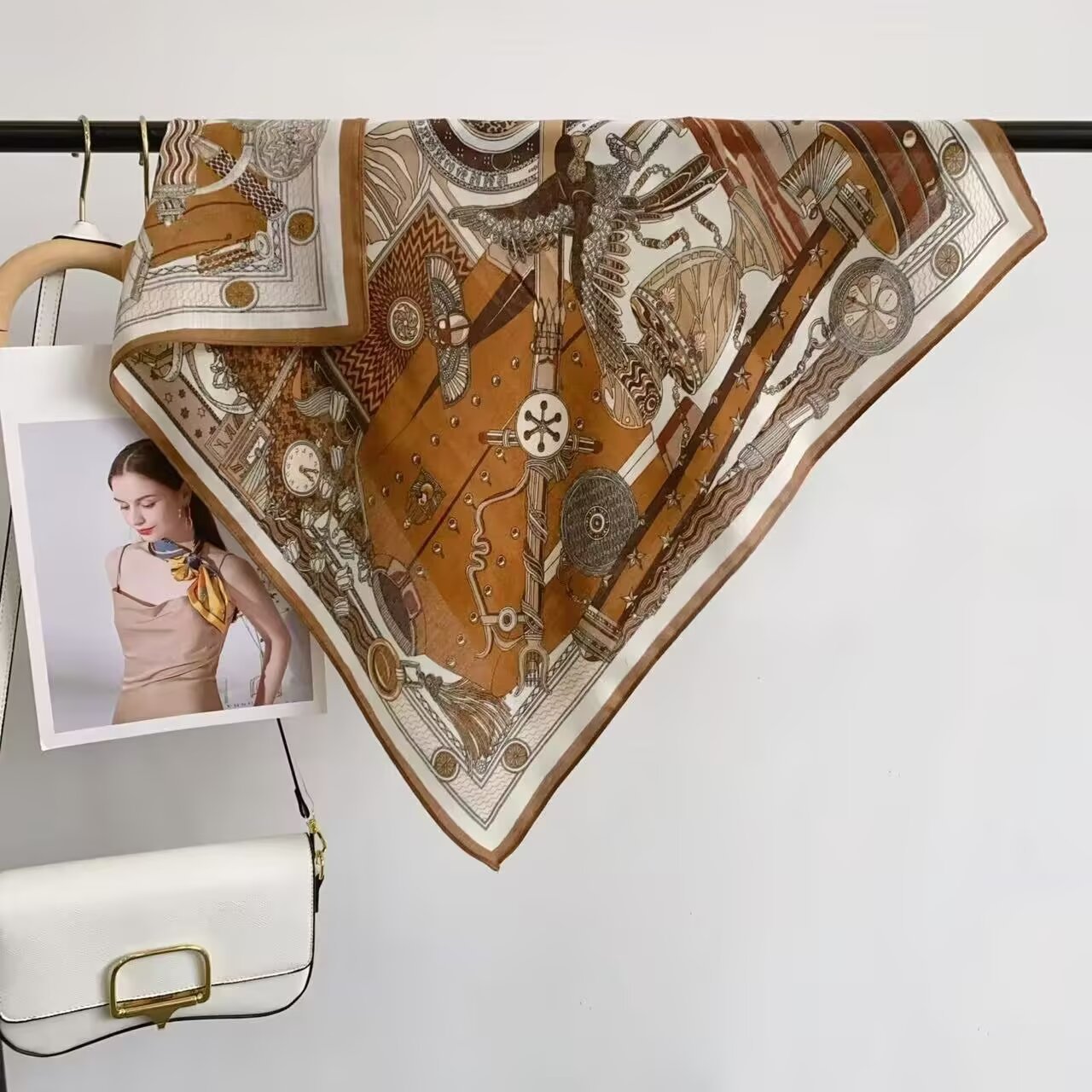새로운 하이 엔드 헤링본 인쇄 마그네틱 버클 실크 스카프 기질 봄과 여름 외국 스타일 올 매치 여성의 작은 스퀘어 스카프스토어 가기