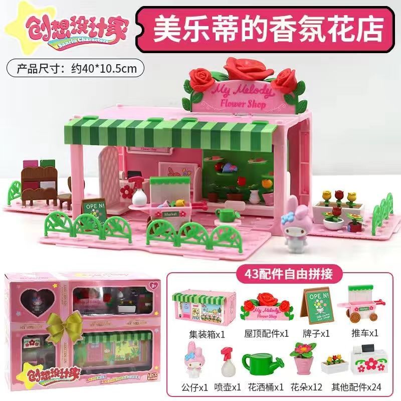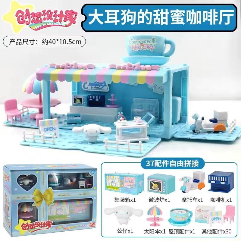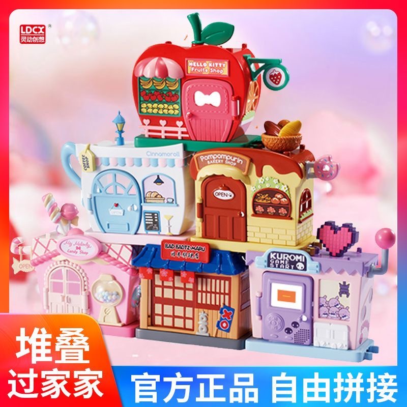 새로운 Sanrio 가족 스택 하우스 스트리트 뷰 시리즈 스택 큰 세트 선물 Kulomi 미니 생일스토어 가기