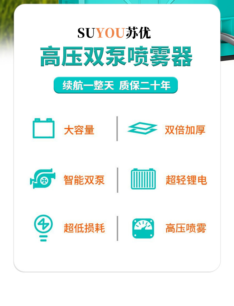 • 20리터 3스위치(리튬 배터리 고압 펌프)는 80배럴을 보장합니다. 두꺼워진 다이아몬드 그린