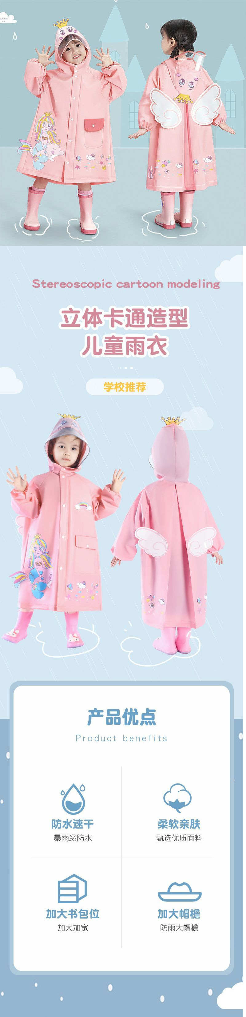 어린이 비옷 소녀 소녀 유치원 어린이 방비 옷 어린이 새 학생 아기 귀여운 판초스토어 가기