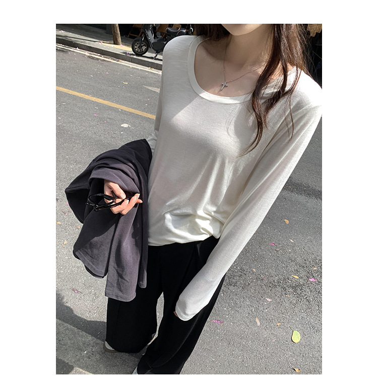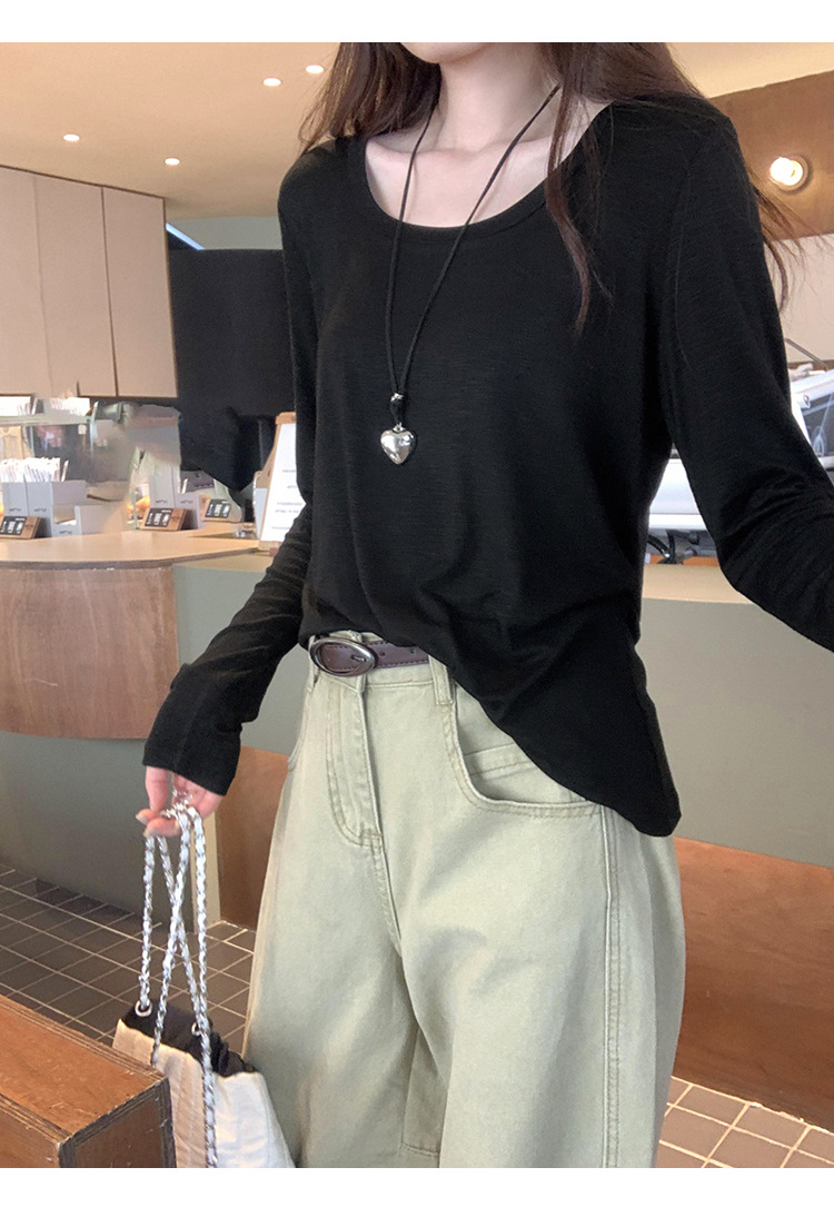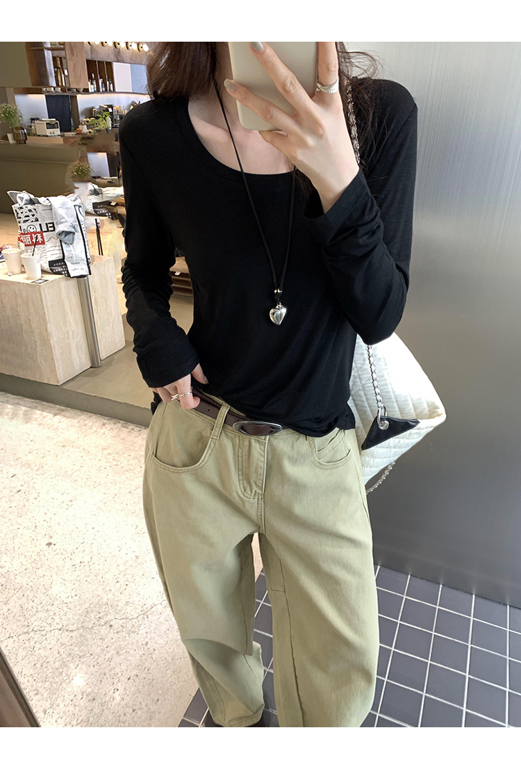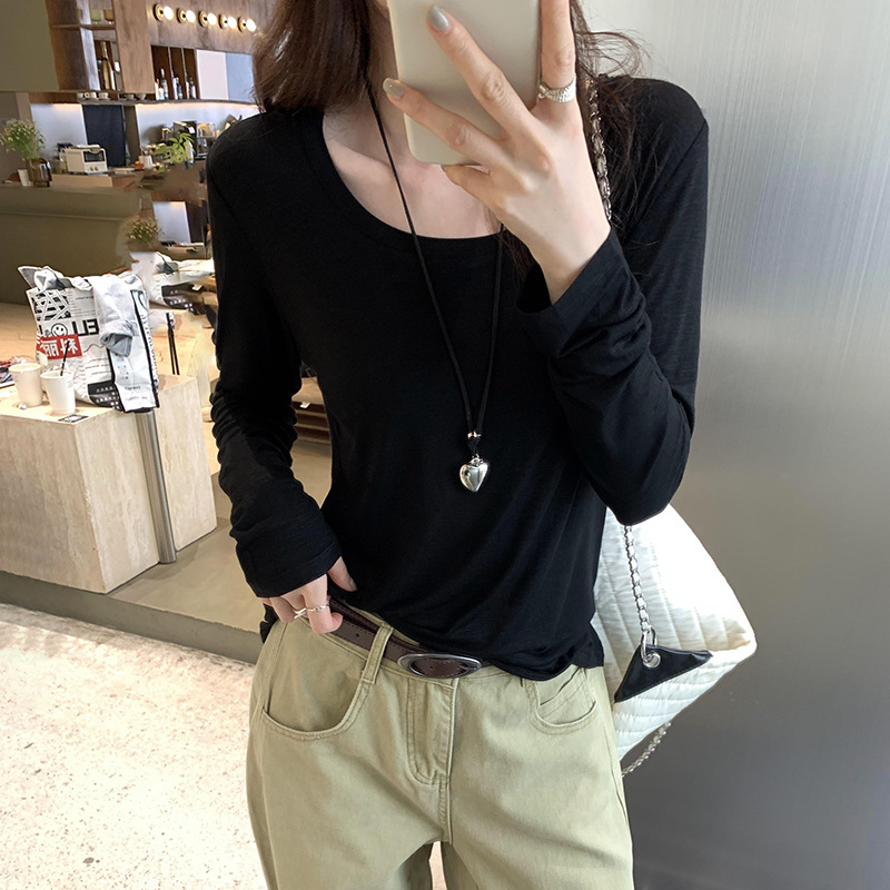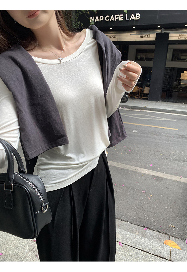 한국 스타일 달콤한 스파이스 소녀 여자 어깨 긴 소매 2025 봄 새로운 순수한 욕망 바람 배꼽 순수한 색상 올매치 탑