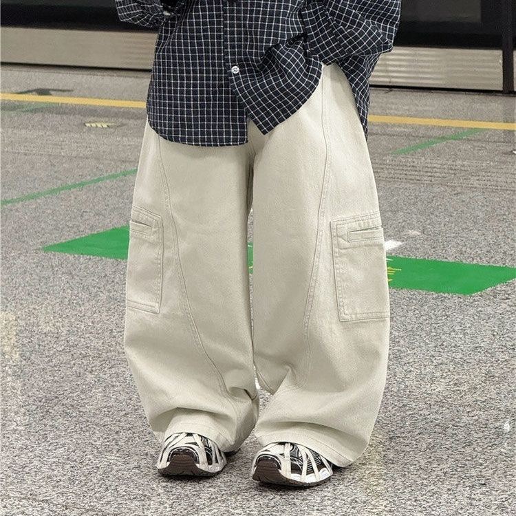 봄과 가을 남녀 아동복 캐주얼 바지 아기 서양식 어린이 성격 유행 한국 스타일 유행 포켓 크레인 바지 넓은 다리 바지