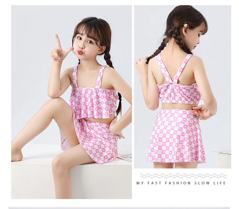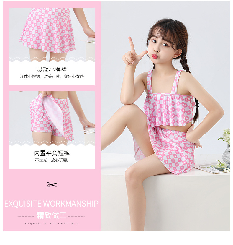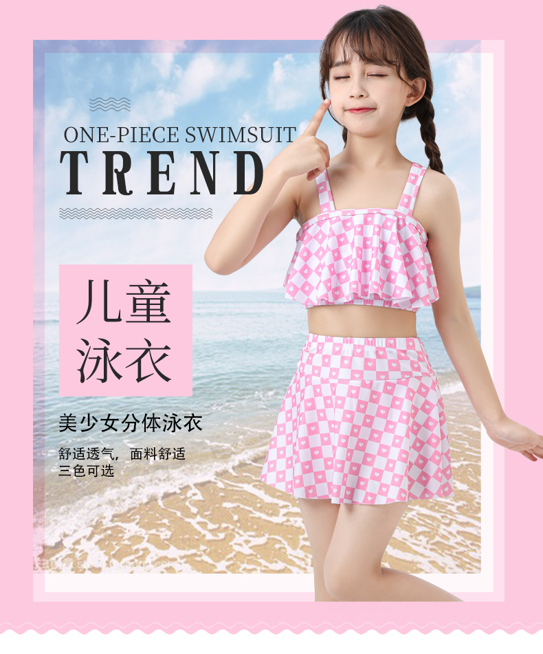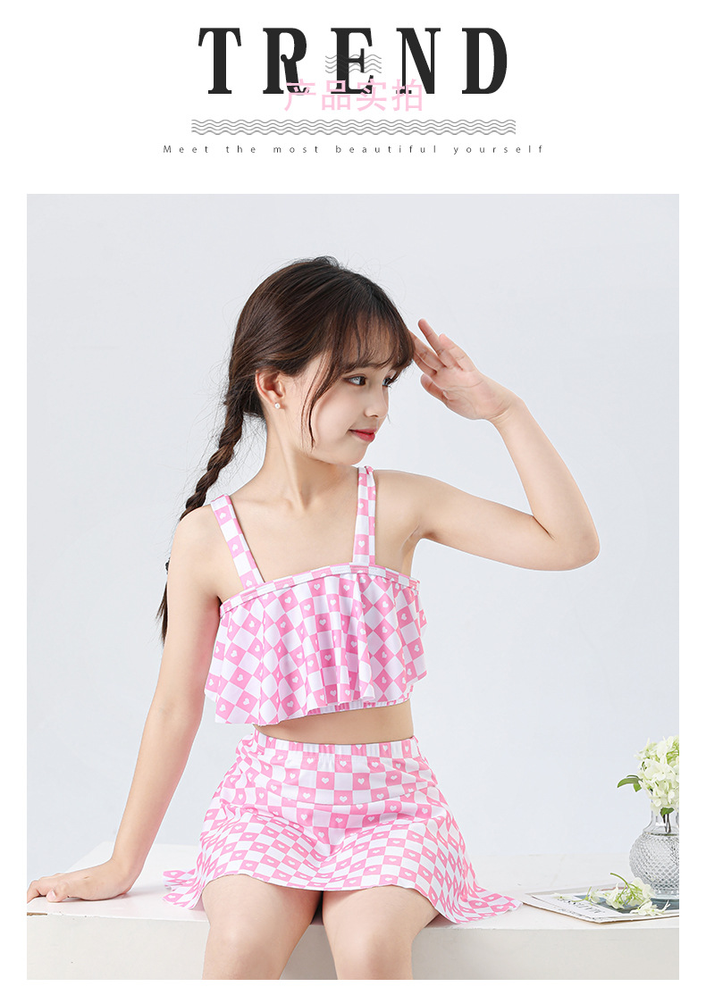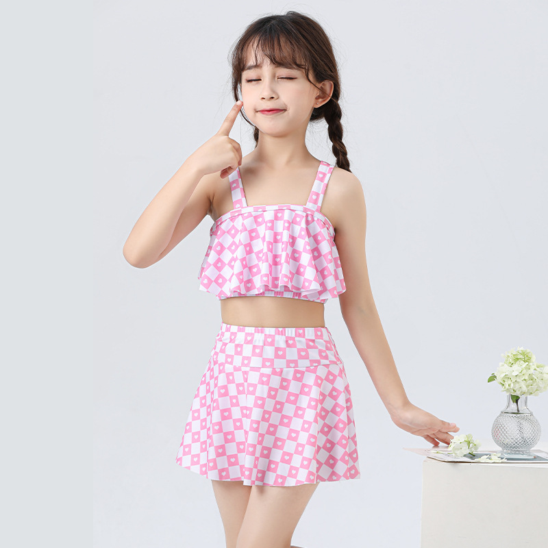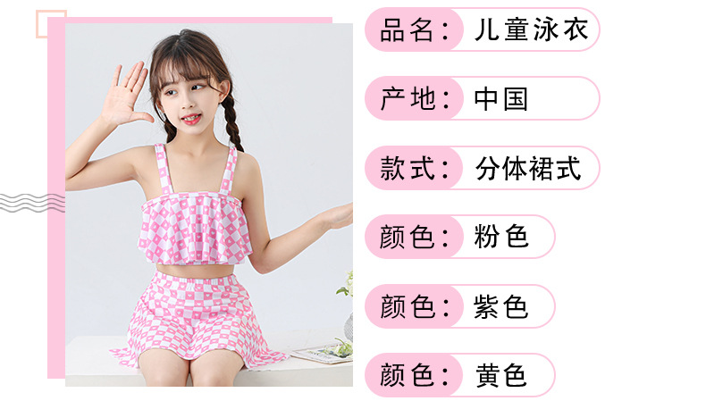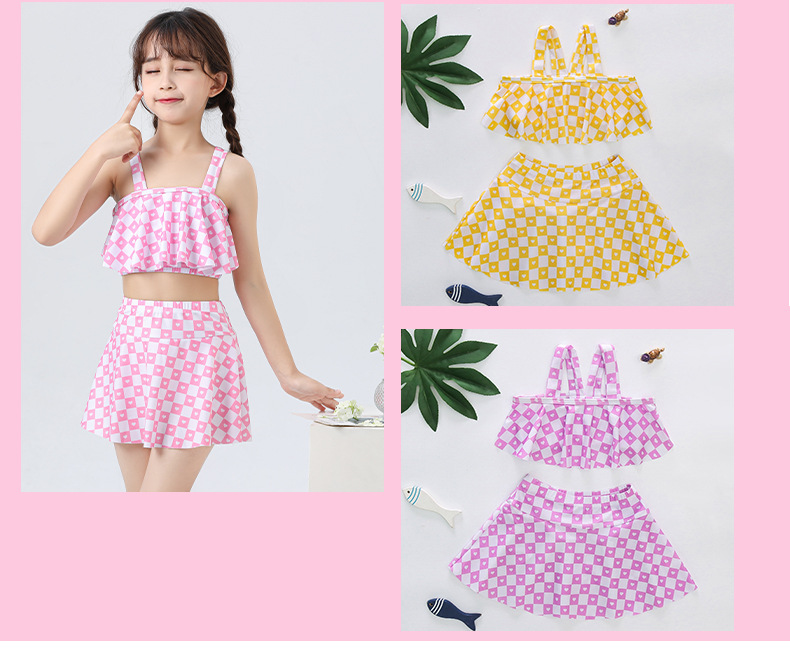 여자 수영복 새로운 여성 분할 투피스 수영복 여름 서양식 격자 무늬 플랫 앵글 어린이 수영복 도매스토어 가기