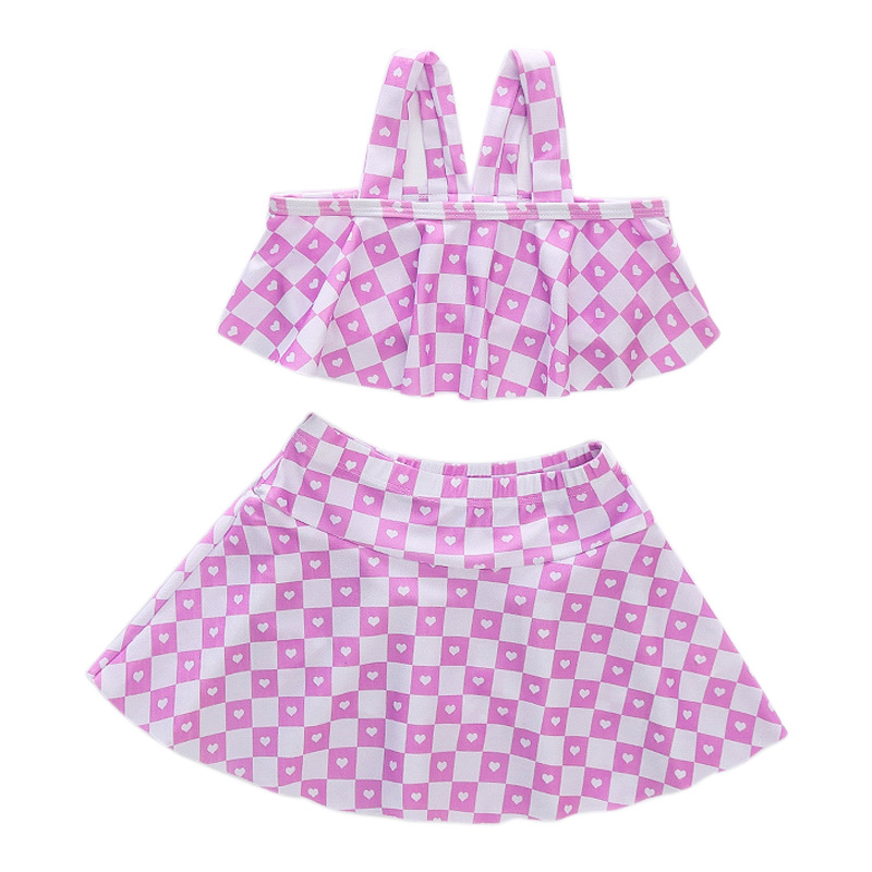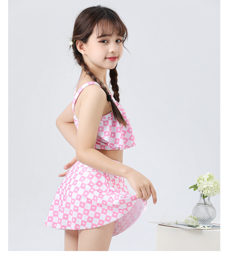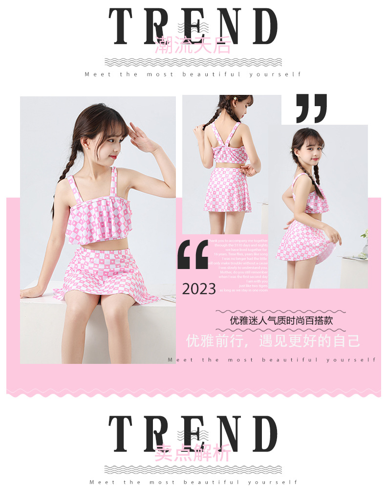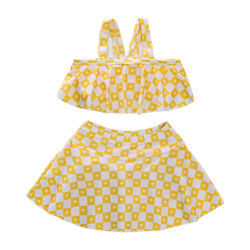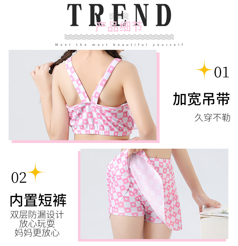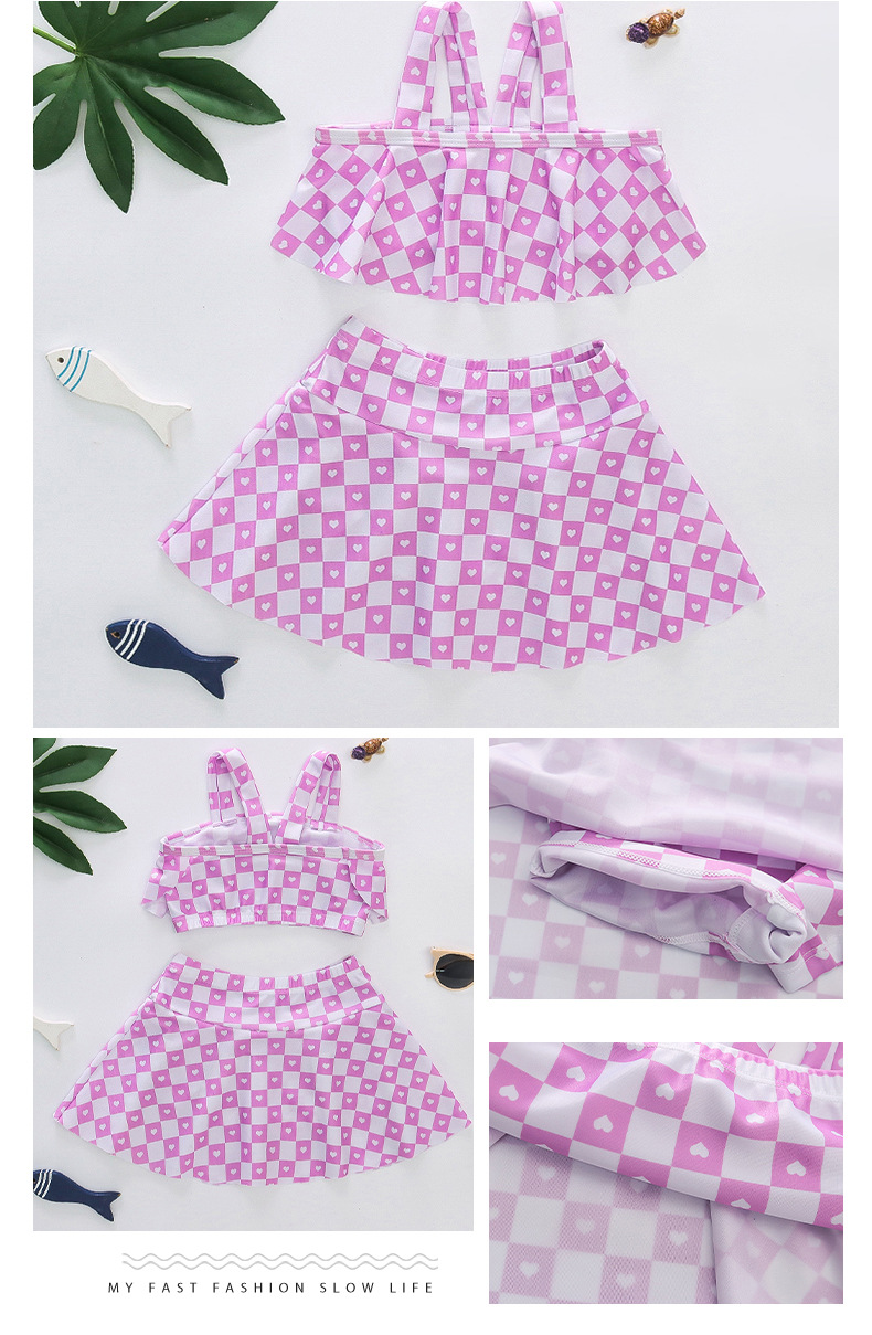 여자 수영복 새로운 여성 분할 투피스 수영복 여름 서양식 격자 무늬 플랫 앵글 어린이 수영복 도매스토어 가기