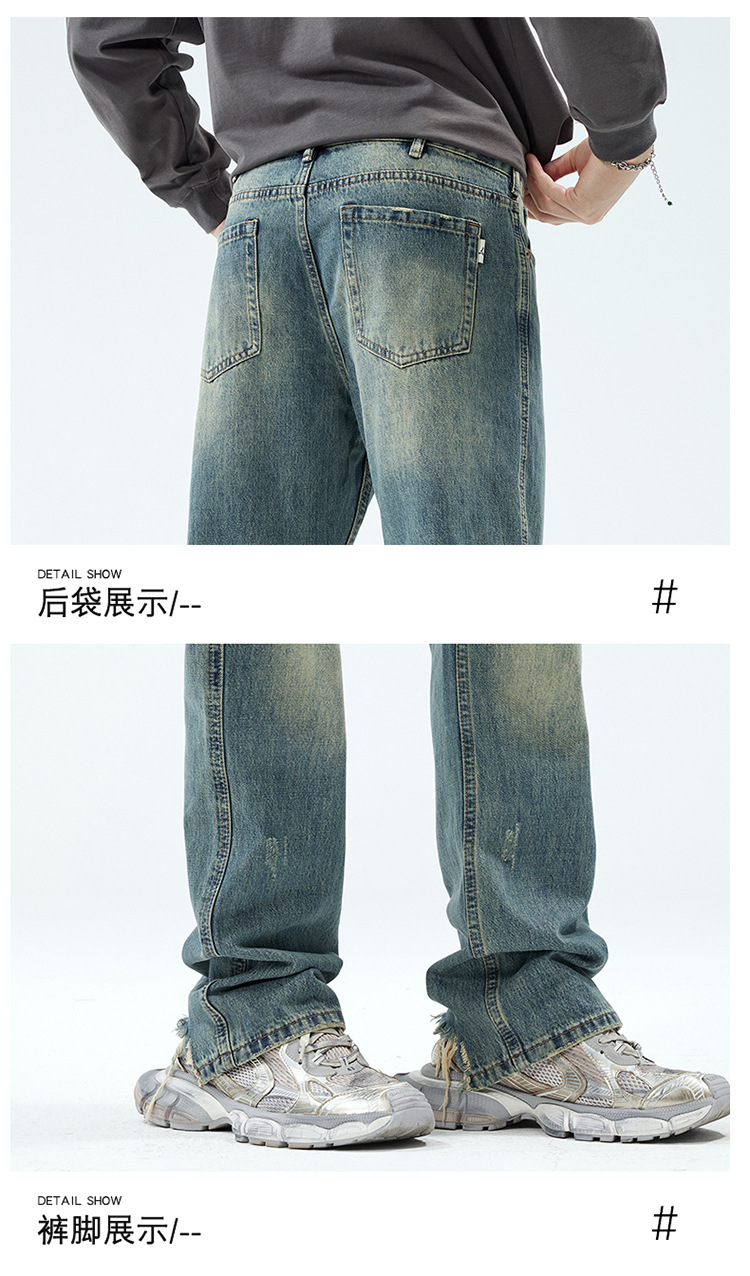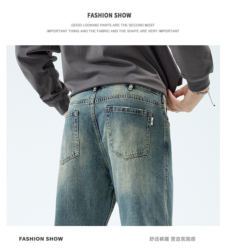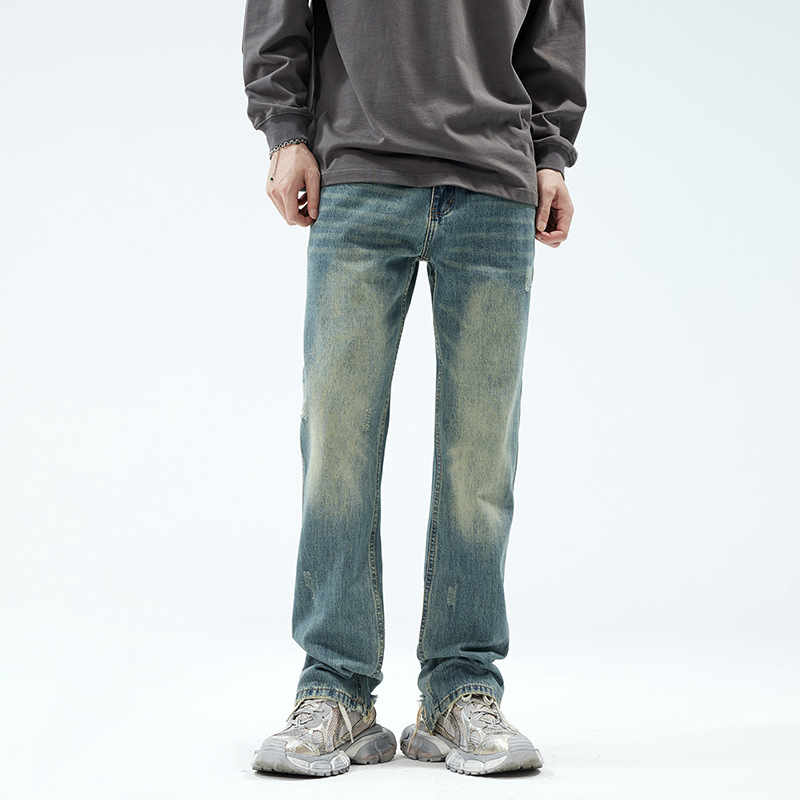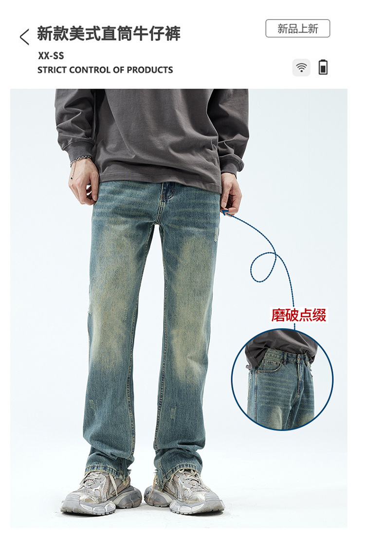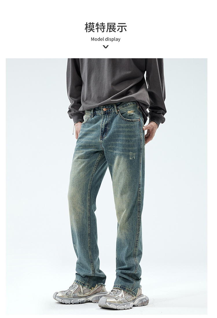 아메리칸 스타일 캐주얼 트렌디 브랜드 하이 엔드 슬림 와이드 레그 청바지 남성용 스트레이트 루즈 트렌디 딥 디싱 성격 게으른 스타일스토어 가기