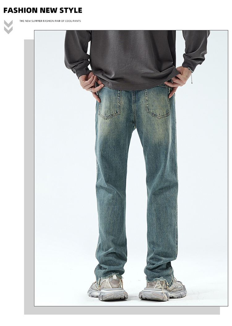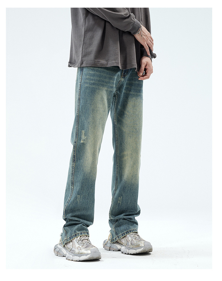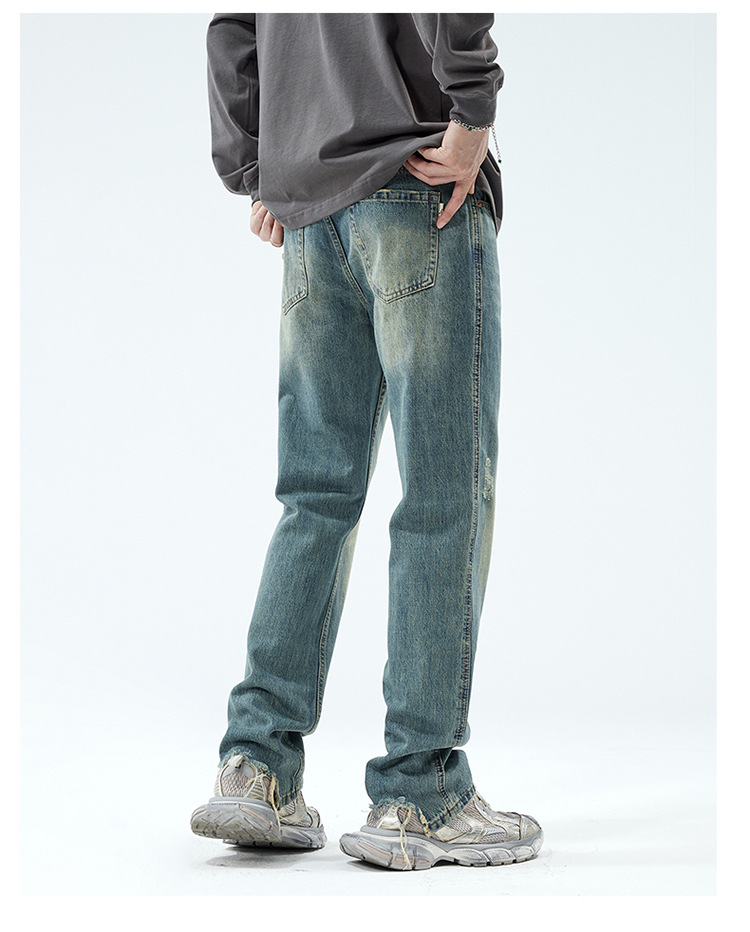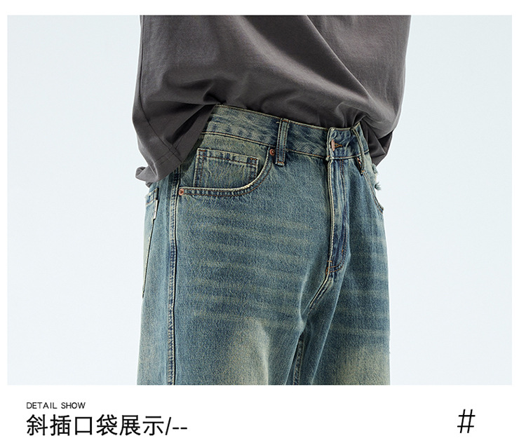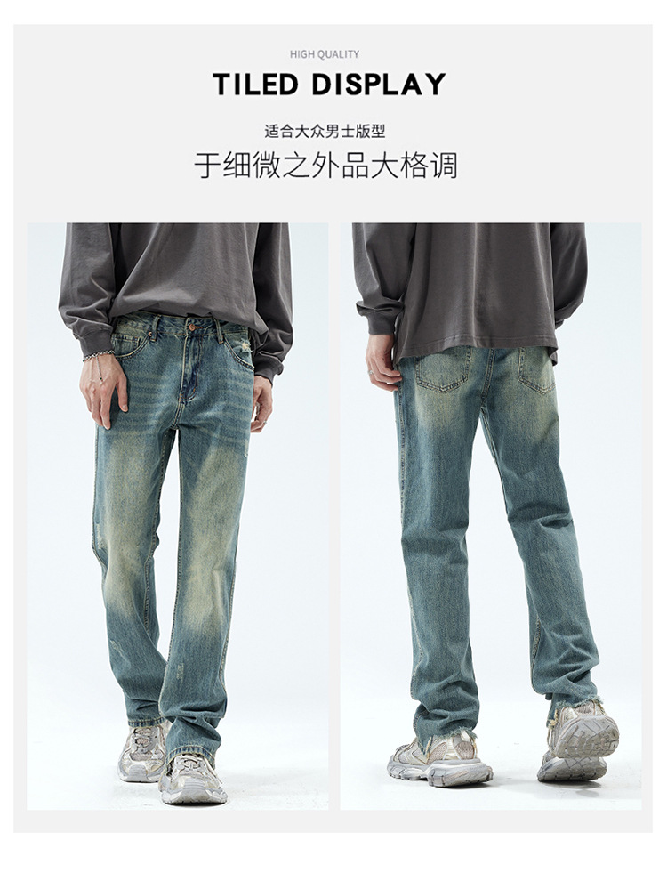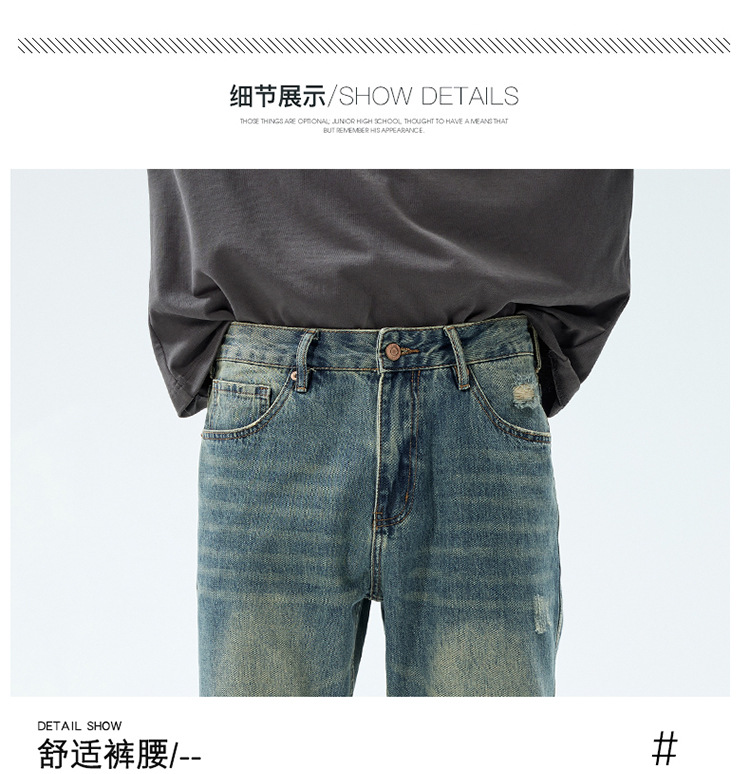 아메리칸 스타일 캐주얼 트렌디 브랜드 하이 엔드 슬림 와이드 레그 청바지 남성용 스트레이트 루즈 트렌디 딥 디싱 성격 게으른 스타일스토어 가기