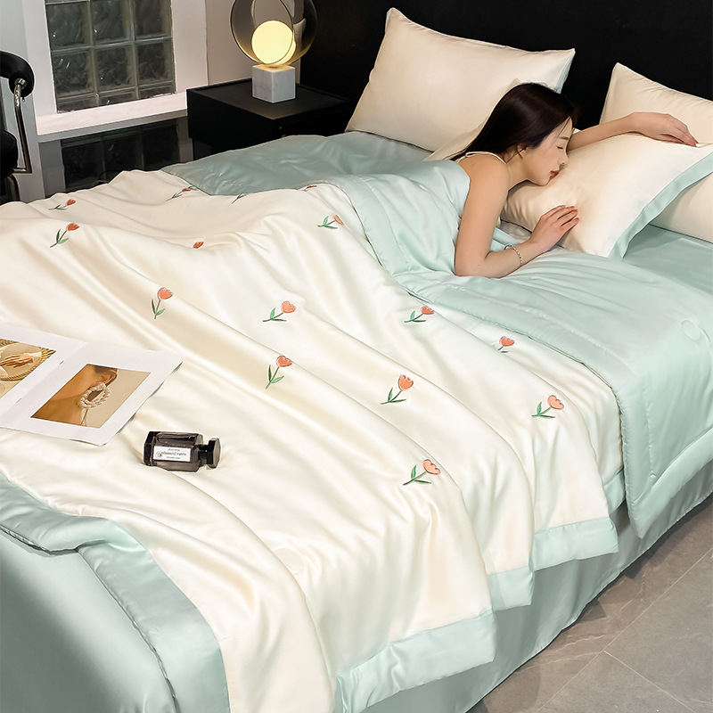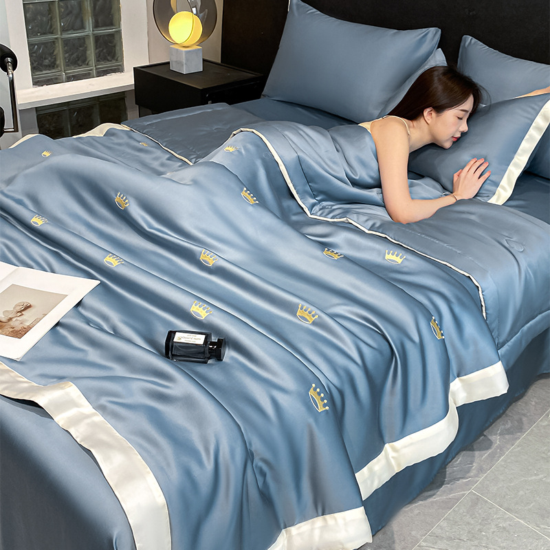 2025 새로운 여름 시원한 이불 전체 자수 시리즈 세척 얼음 실크 여름 이불 4 피스 에어컨 이불 코어 침구스토어 가기