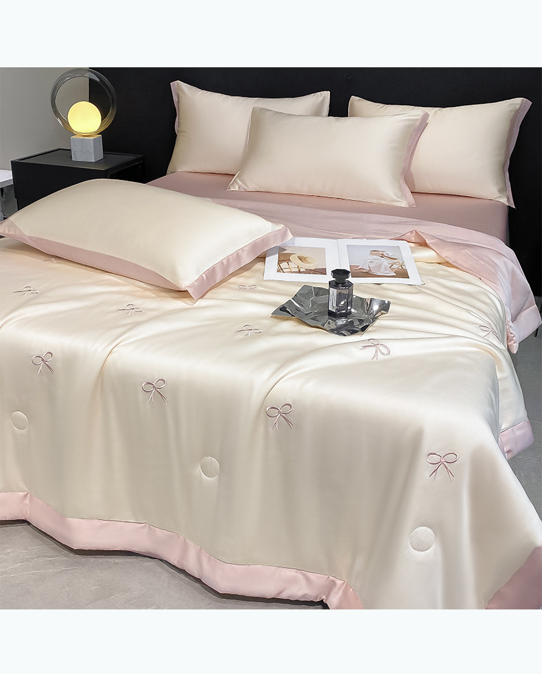 2025 새로운 여름 시원한 이불 전체 자수 시리즈 세척 얼음 실크 여름 이불 4 피스 에어컨 이불 코어 침구