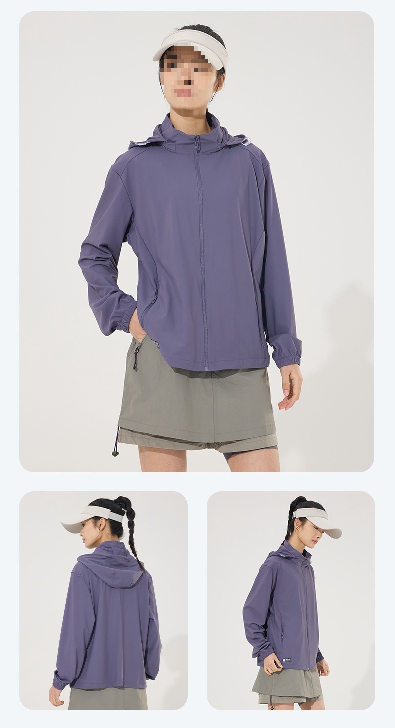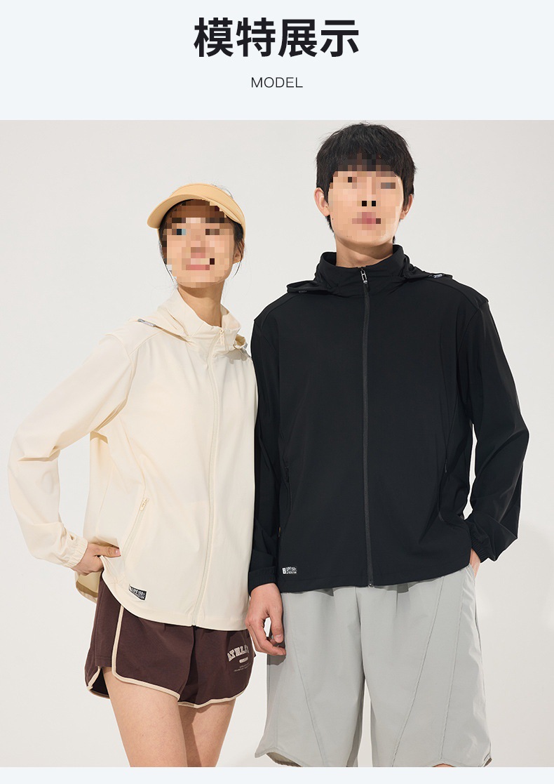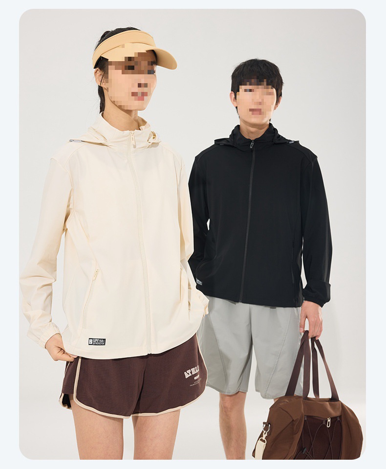 UPF50 경량 통기성 2025 여름 새로운 선 스크린 의류 남성 선 스크린 의류 여성 후드 솔리드 컬러 커플 스킨 의류스토어 가기