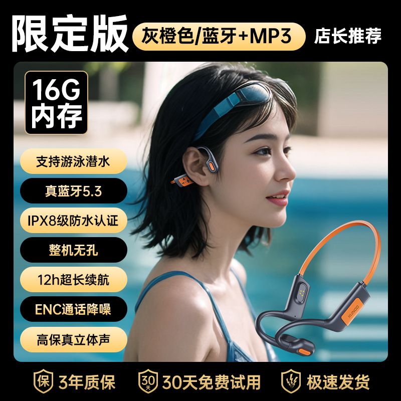 • 이벤트 한정판 [그레이 오렌지 + 16G 메모리] 수영 및 다이빙 가능★소리 누출 없이 편안함★HiFi 사운드 효과★12시간의 긴 배터리 수명
