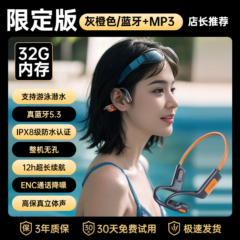 • 이벤트 한정판 [그레이 오렌지 + 32G 메모리] 수영 및 다이빙 가능★소리 누출 없이 편안함★HiFi 사운드 효과★12시간의 긴 배터리 수명