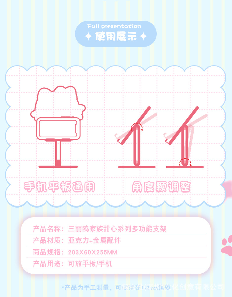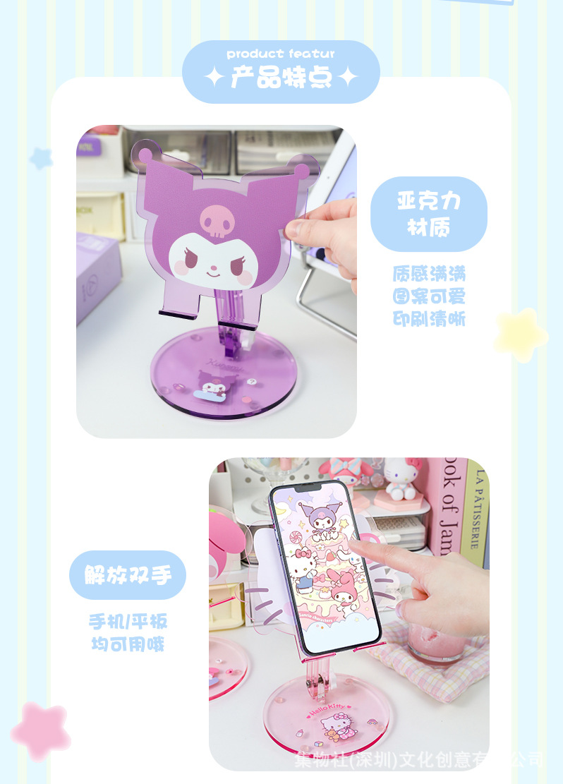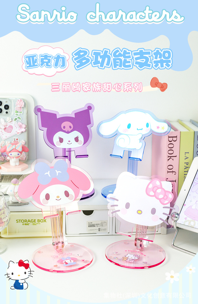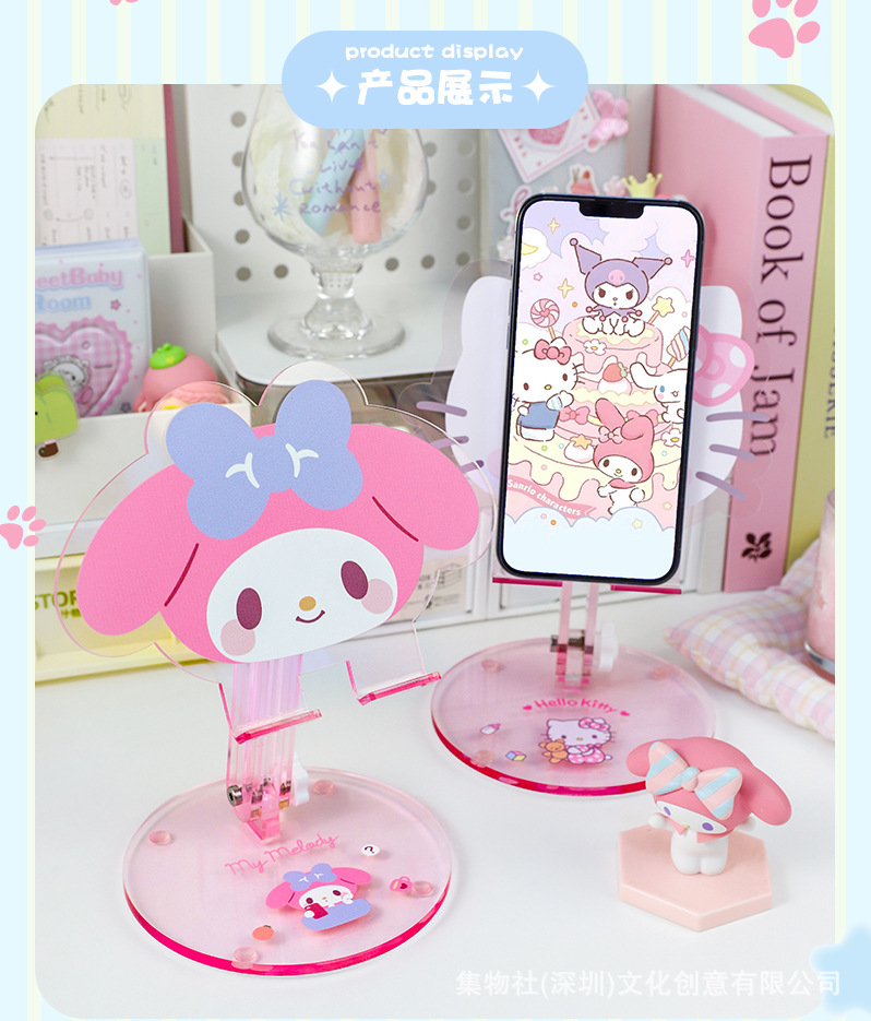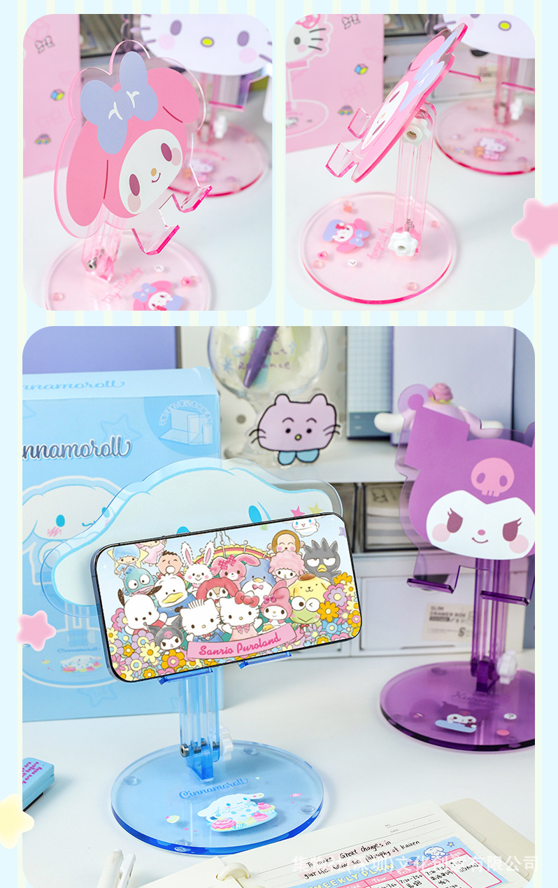 헬로 키티 쿨 로미 메를로 큰 귀 개 귀여운 아크릴 휴대 전화 홀더 태블릿 유니버설 만화스토어 가기