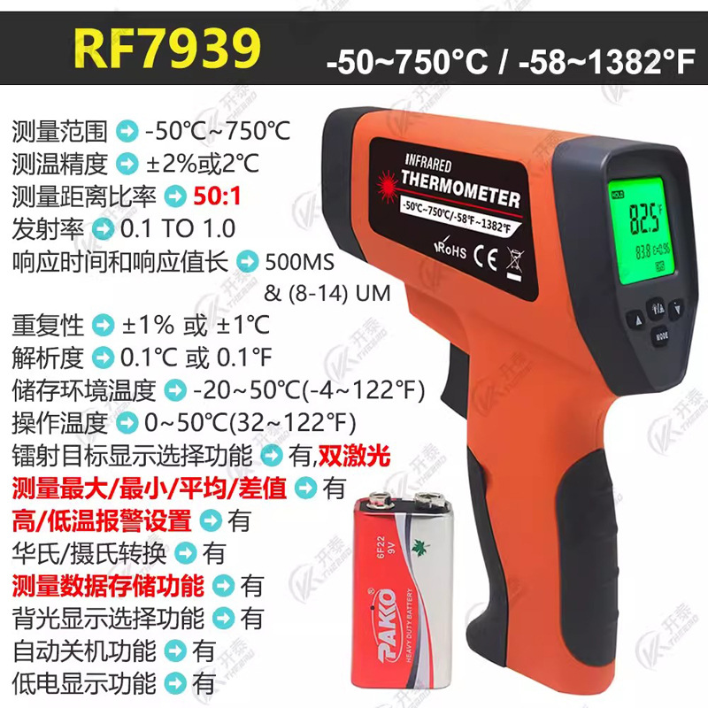 비 접촉 적외선 온도계 높은 정밀 주조 제련 산업 고온 측정 총 주방 오일 온도 총스토어 가기