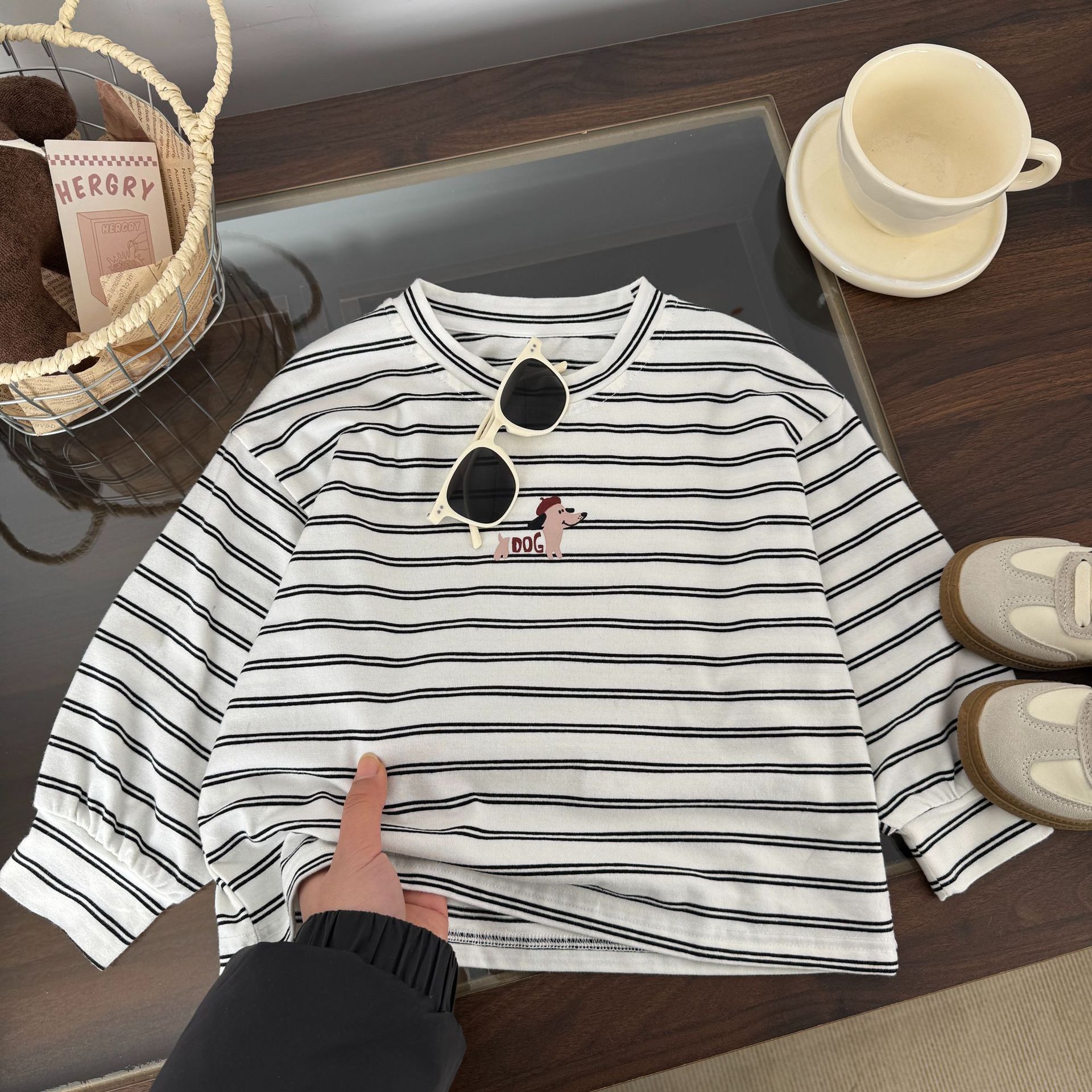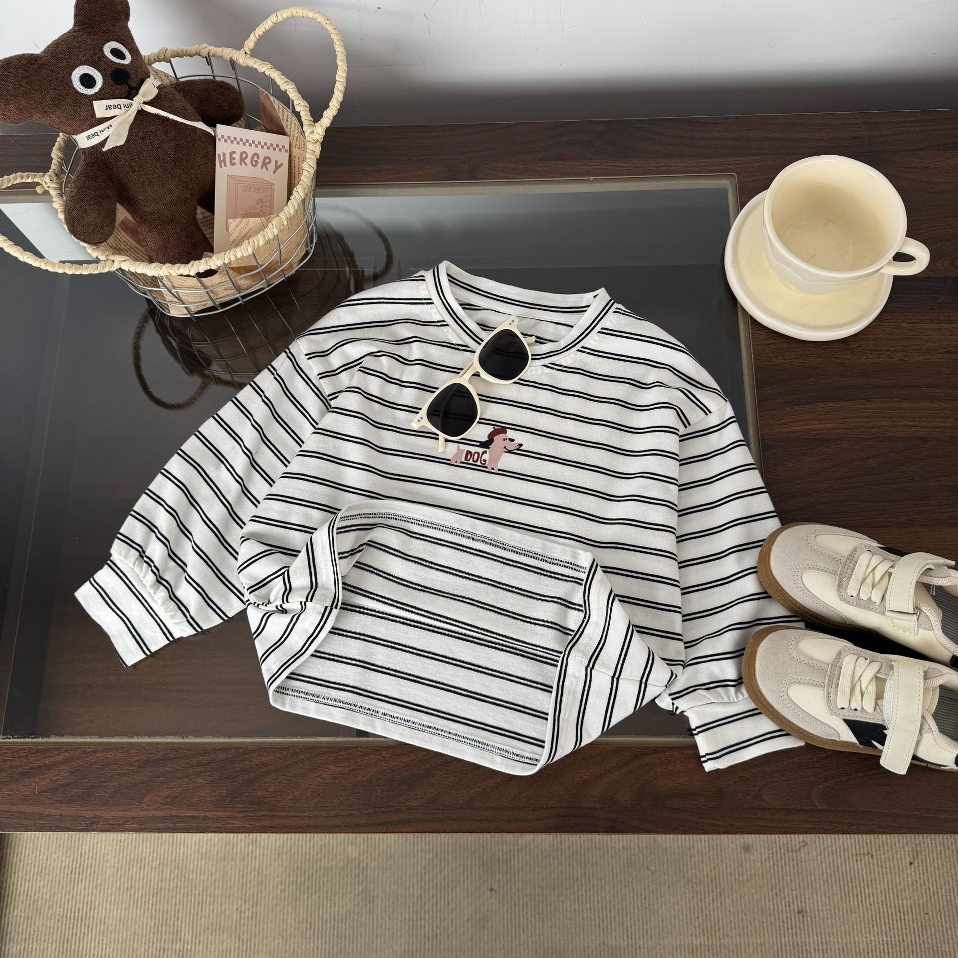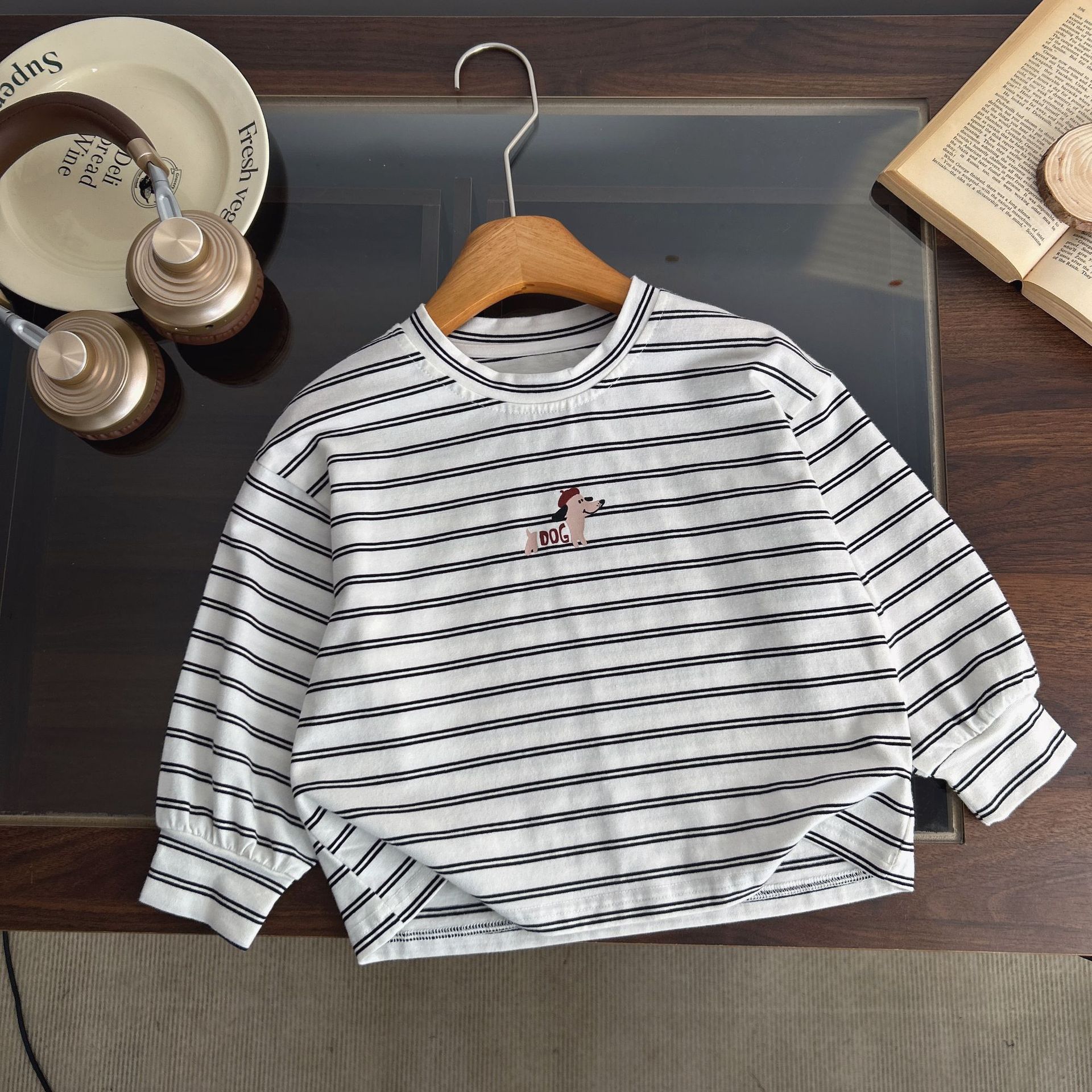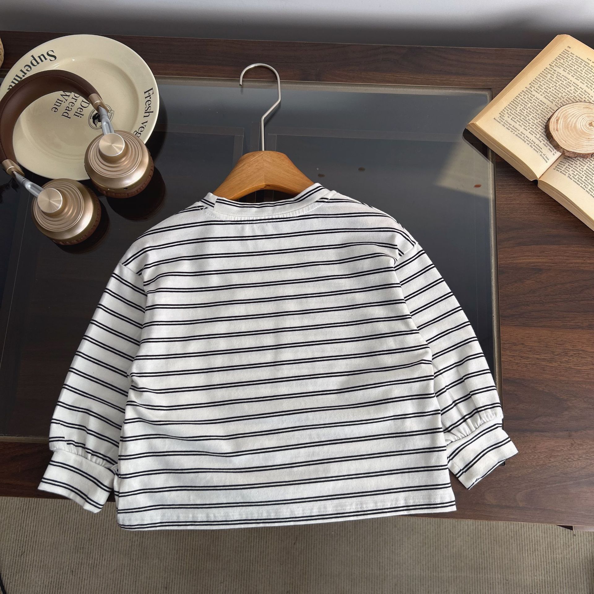 Mitti 봄, 가을 2025 새로운 소년 긴팔 줄무늬 티셔츠 아동 한국 스타일 아동복 유행 봄 의류스토어 가기