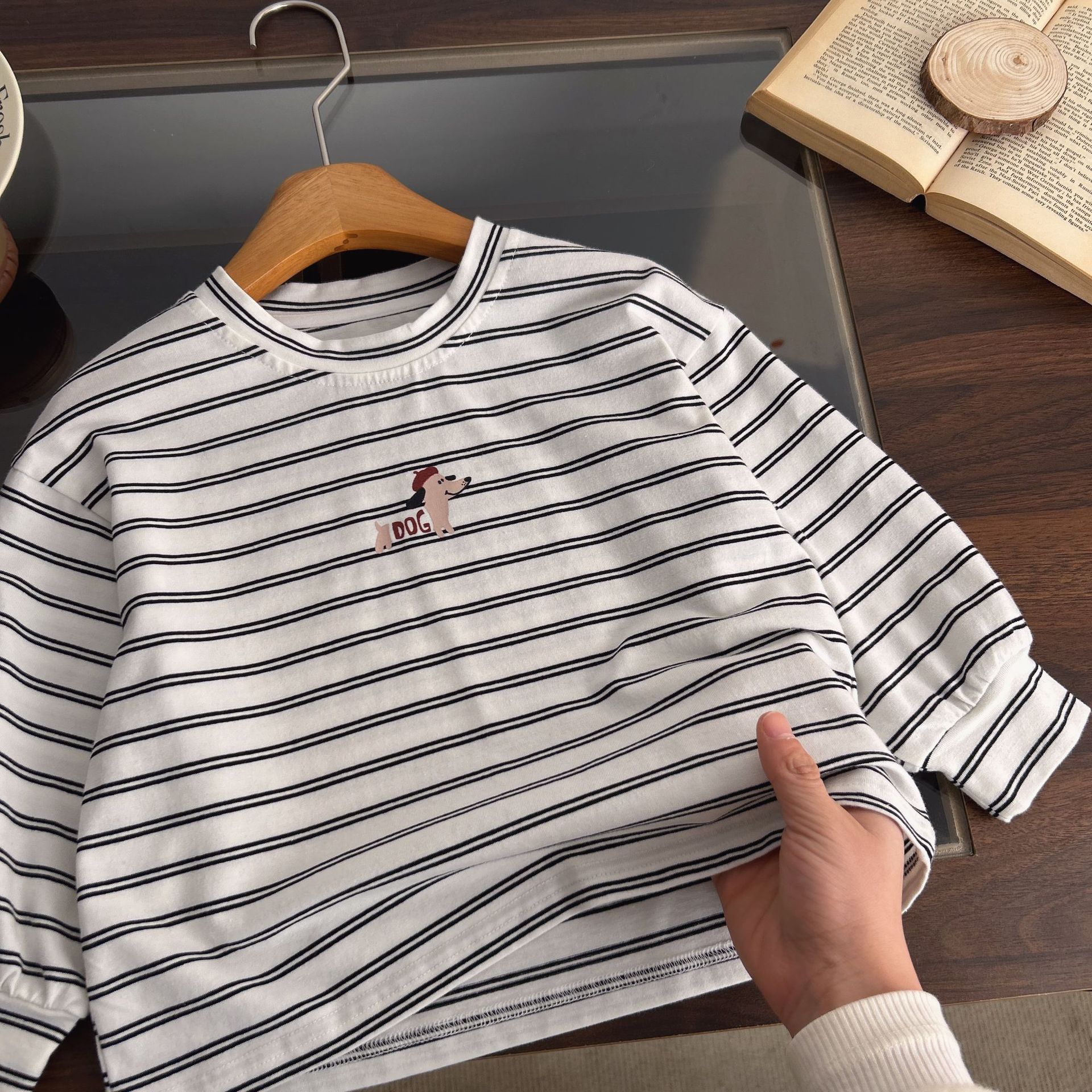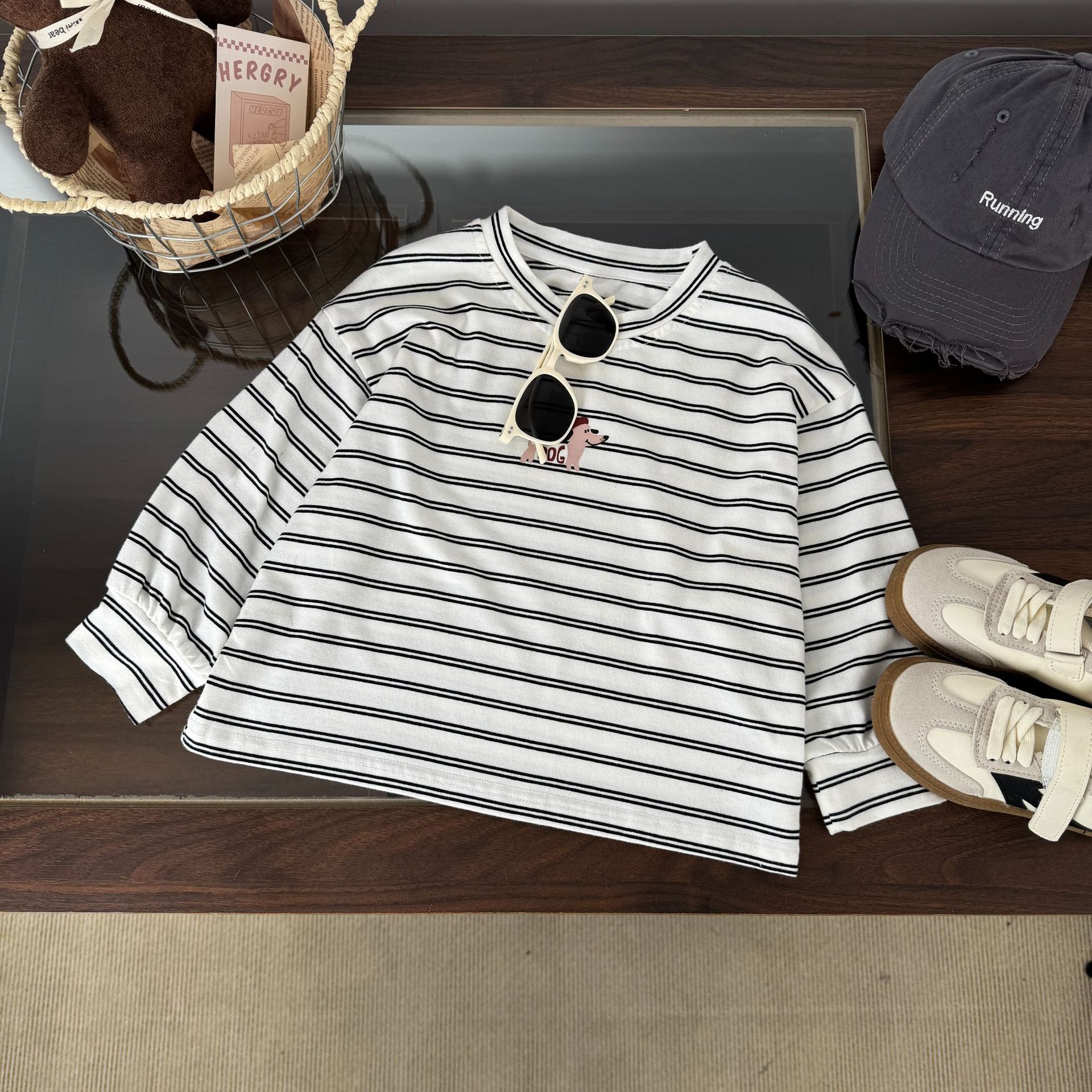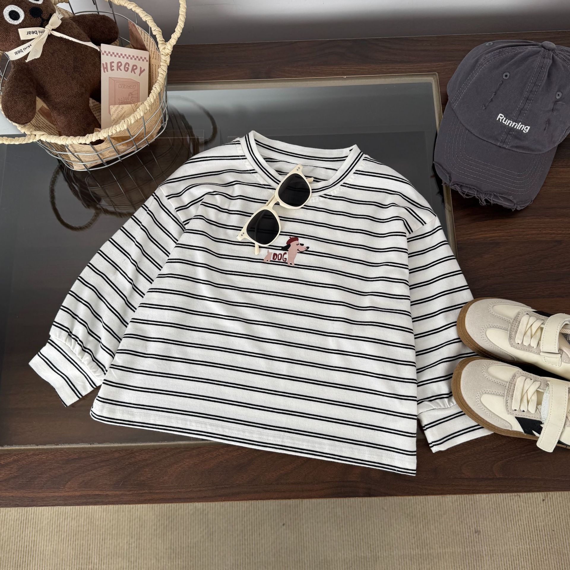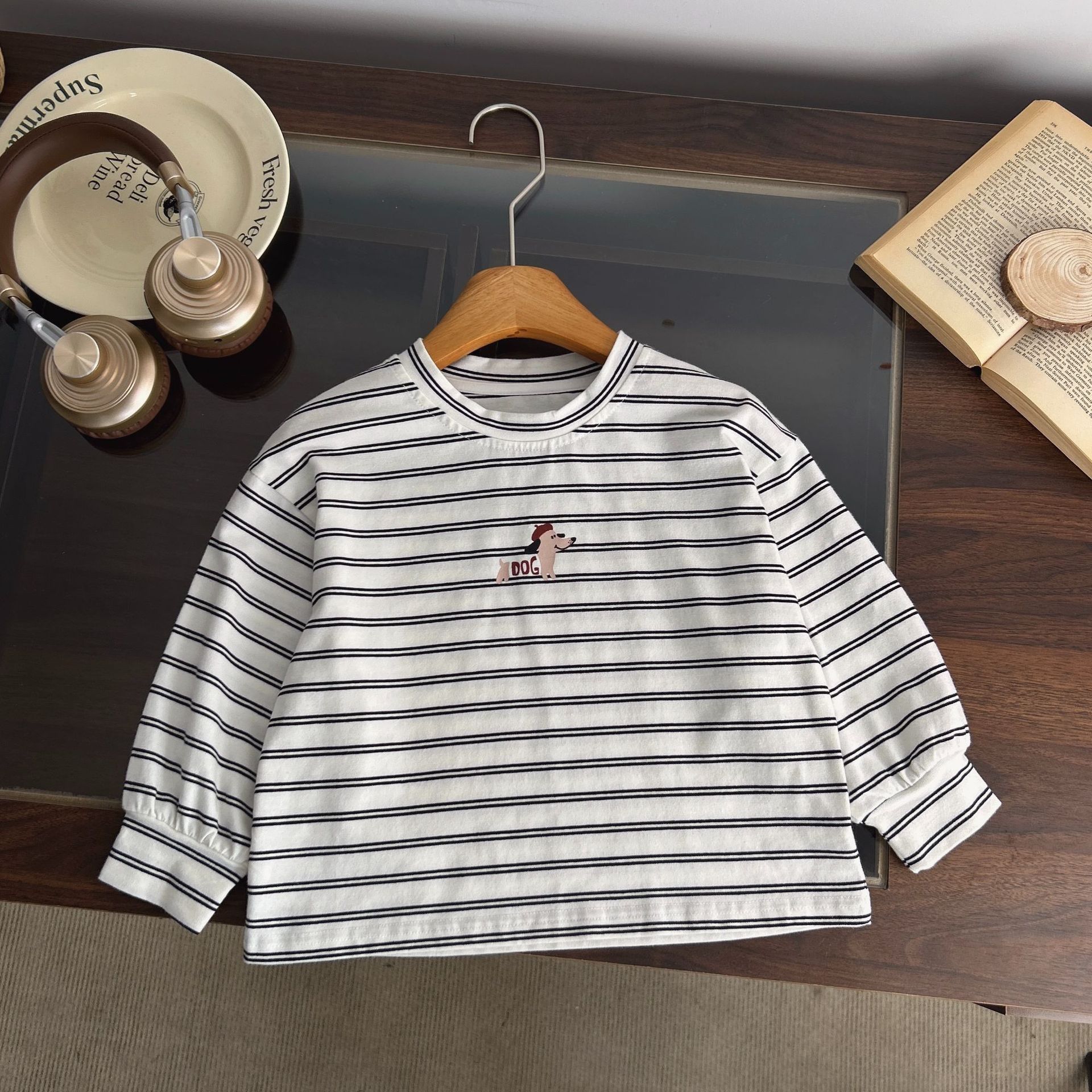 Mitti 봄, 가을 2025 새로운 소년 긴팔 줄무늬 티셔츠 아동 한국 스타일 아동복 유행 봄 의류스토어 가기