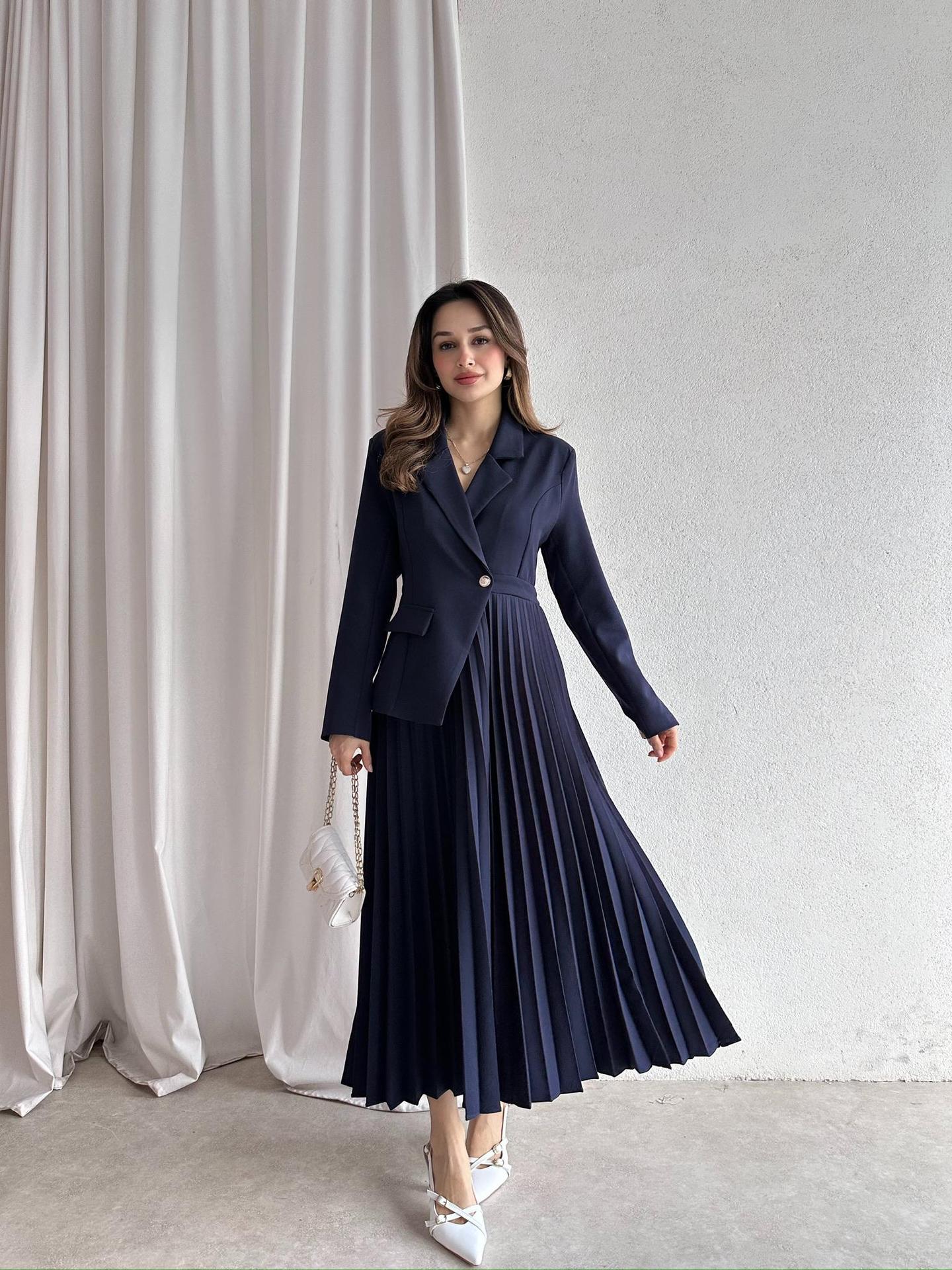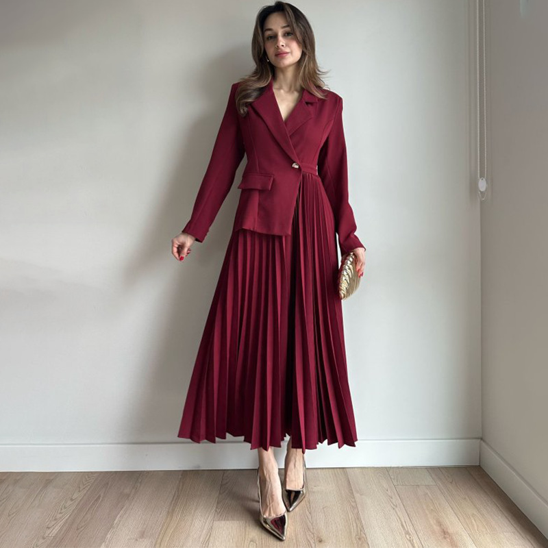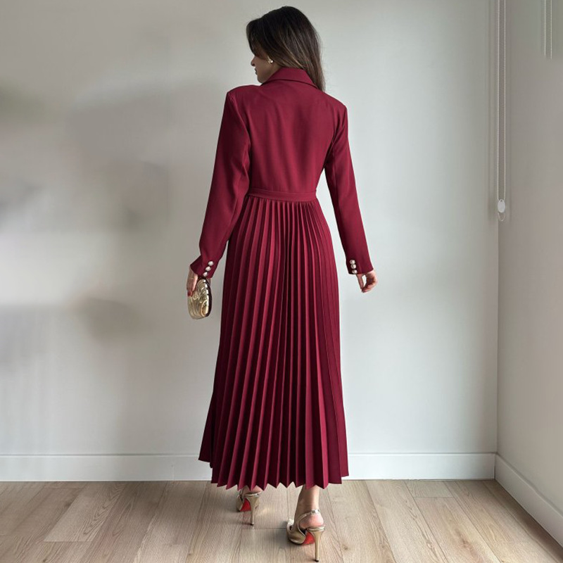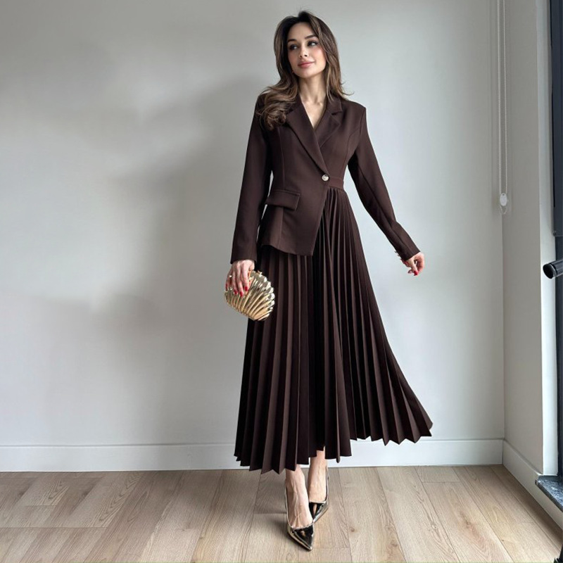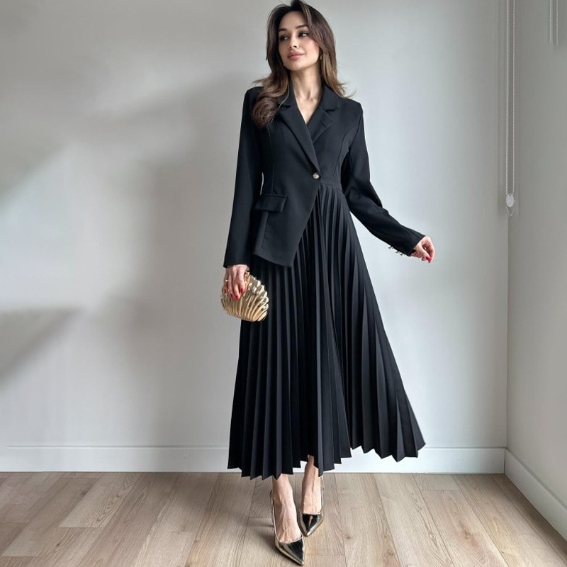 2025 유럽과 미국 아마존 여성 국경 대외 무역 봄 새로운 순수한 긴 소매 버튼 탑 주름 원피스 세트
