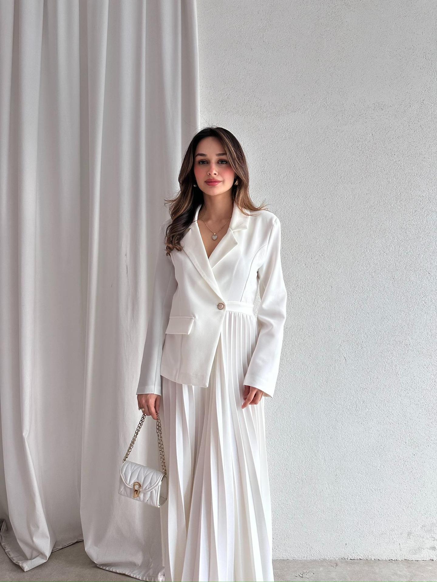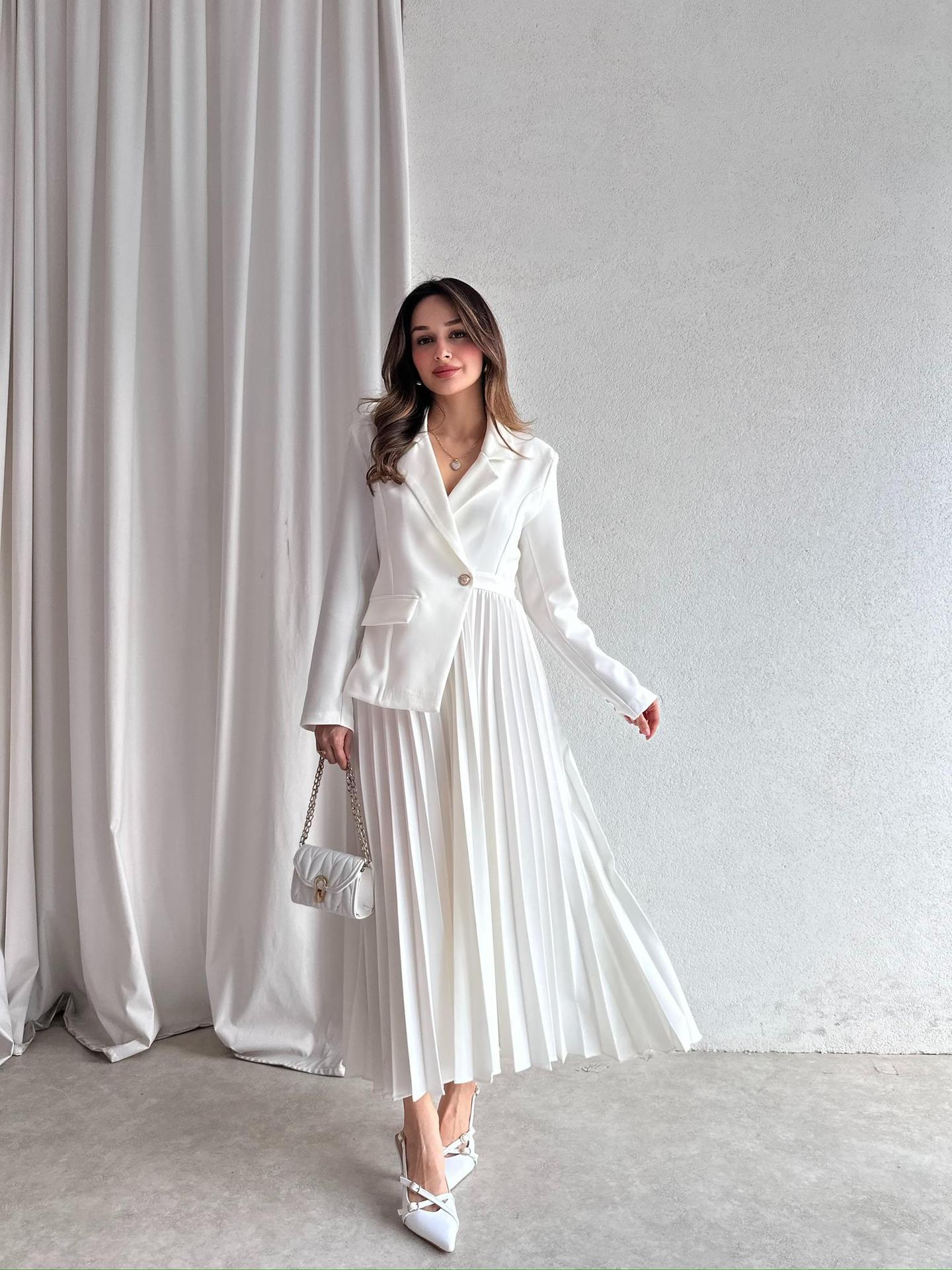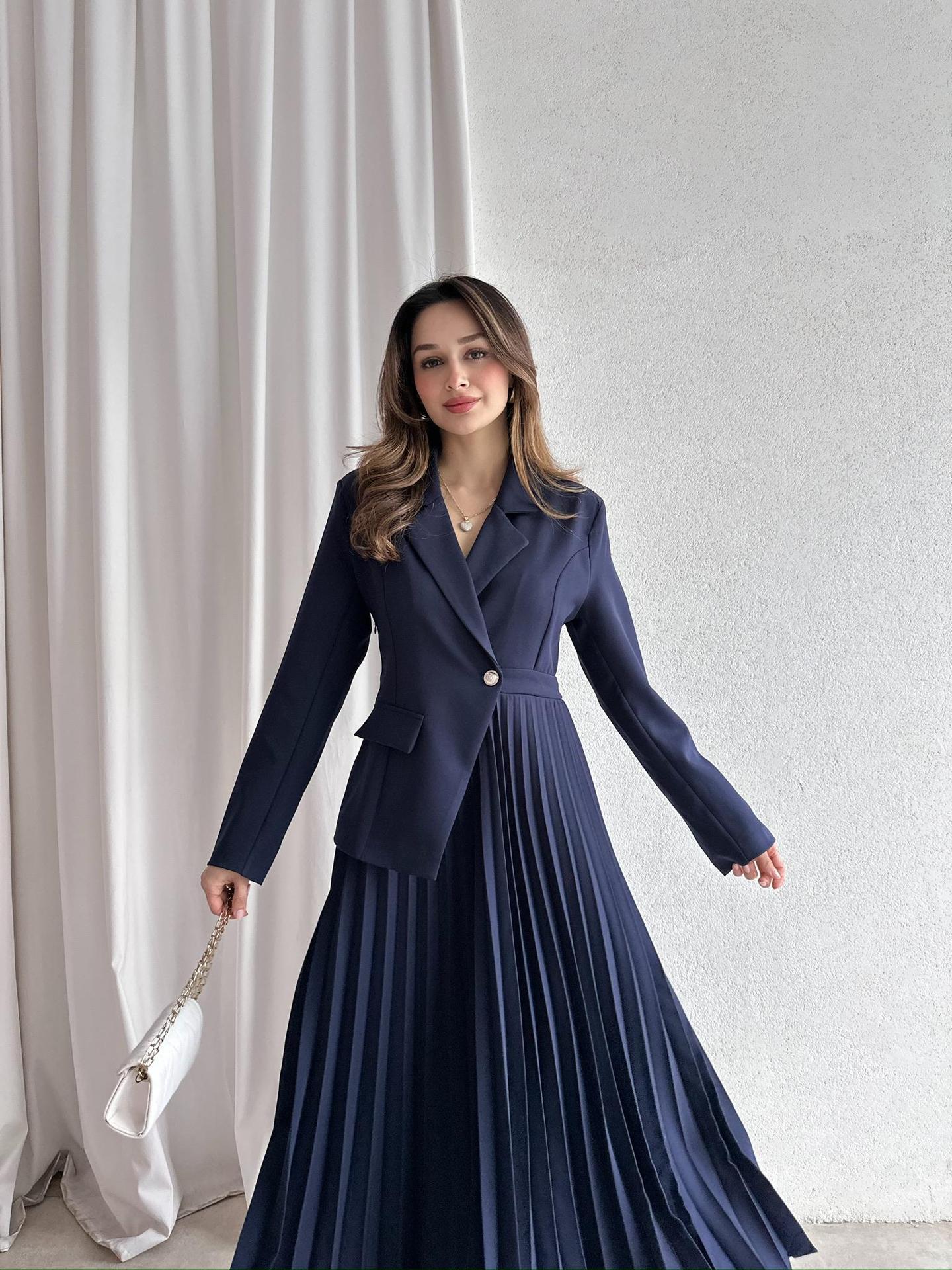 2025 유럽과 미국 아마존 여성 국경 대외 무역 봄 새로운 순수한 긴 소매 버튼 탑 주름 원피스 세트